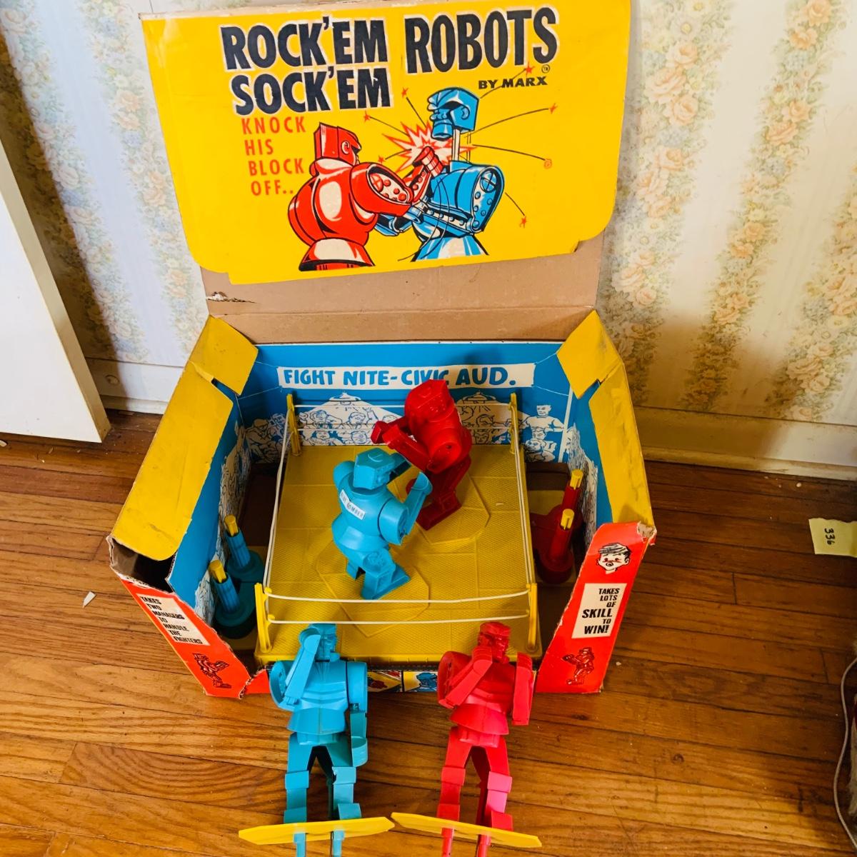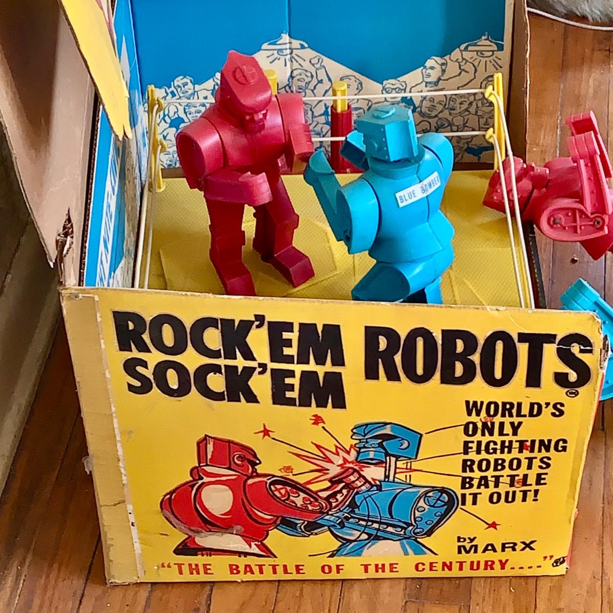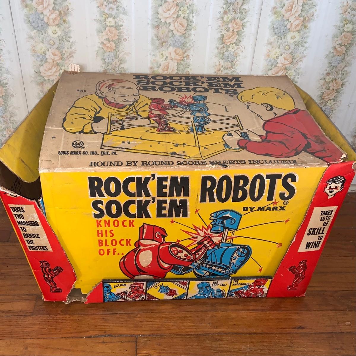 LOT 262: Vintage Rock’Em Sock’Em Robots by Marx with Original Box and Extra Set of Robots