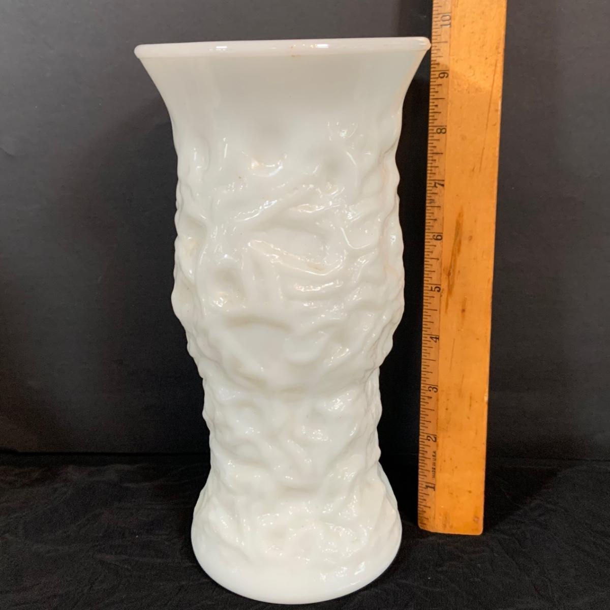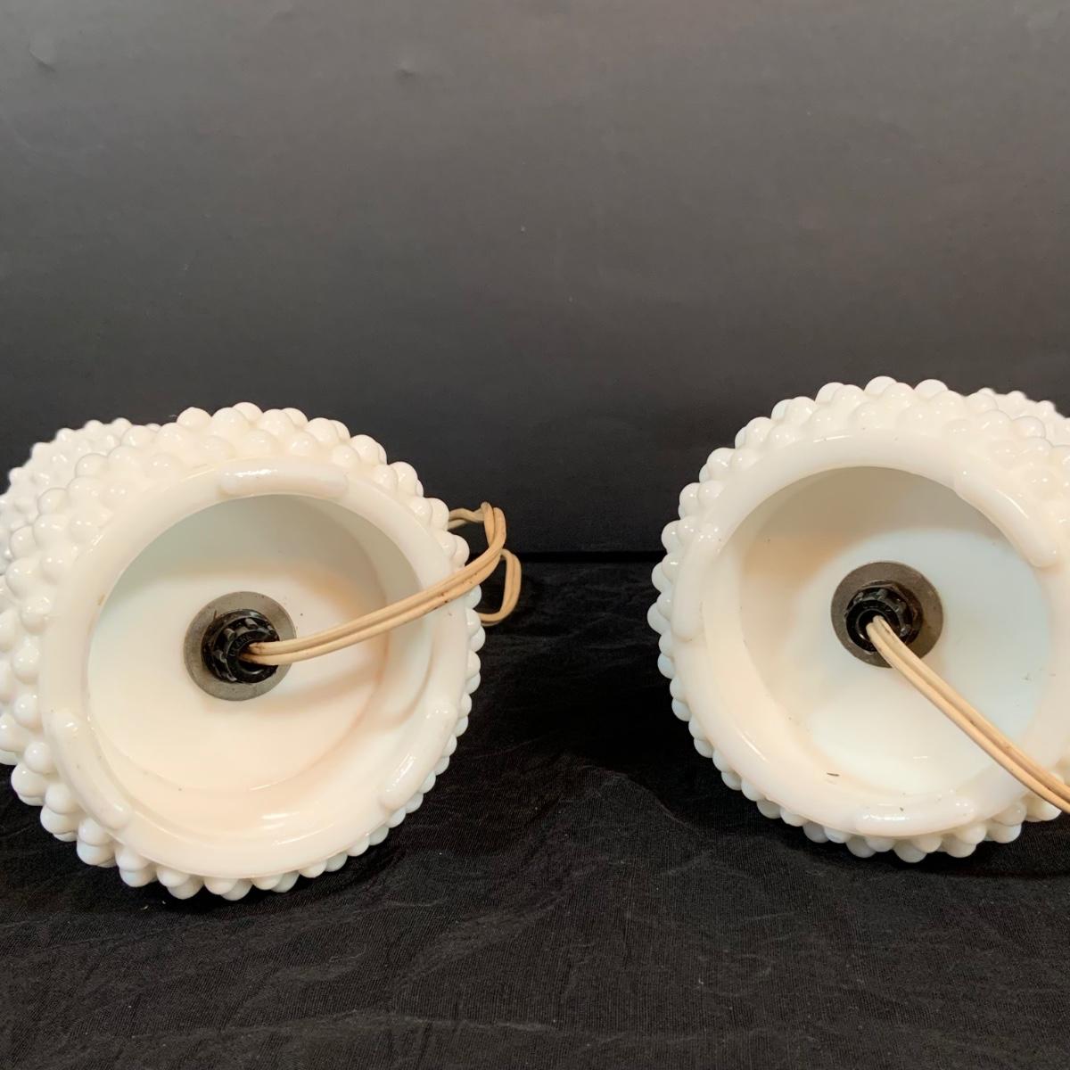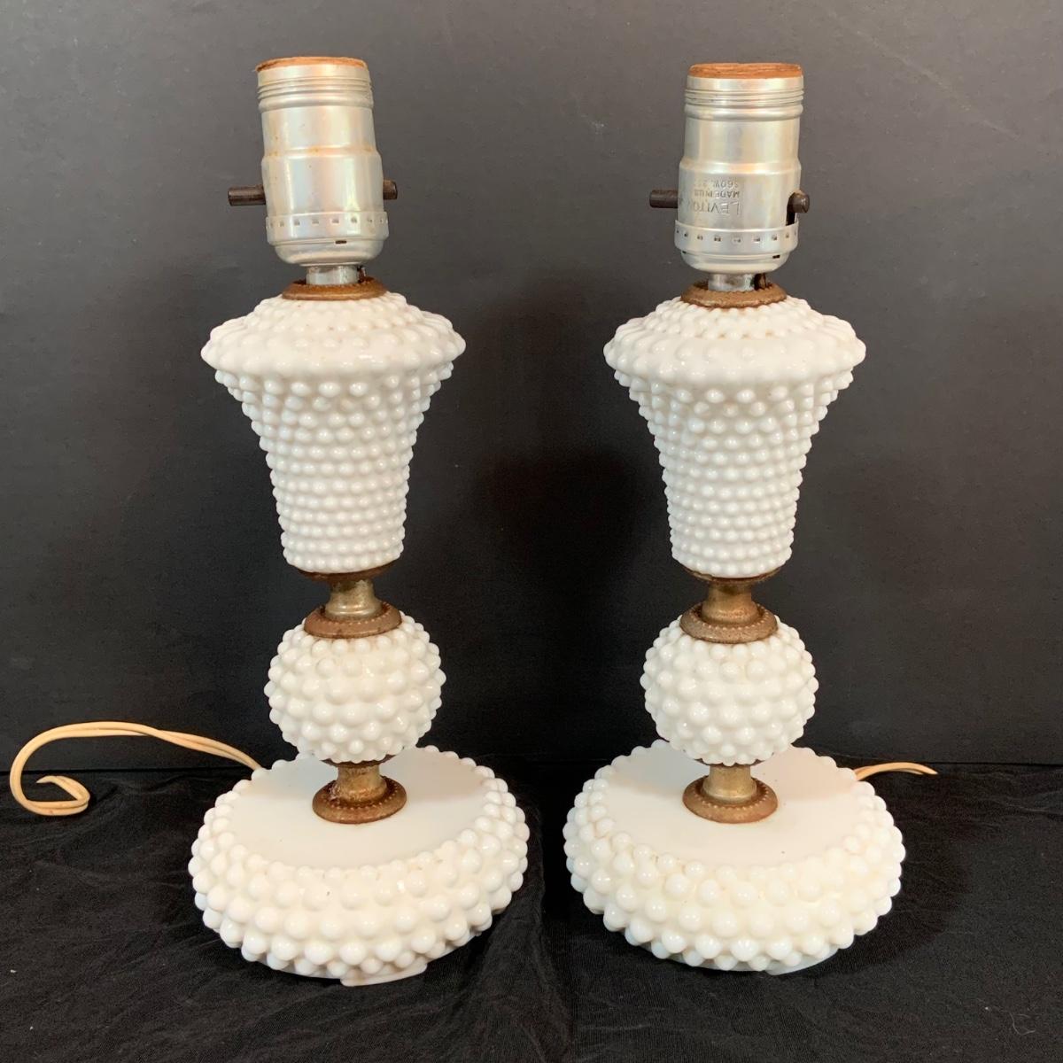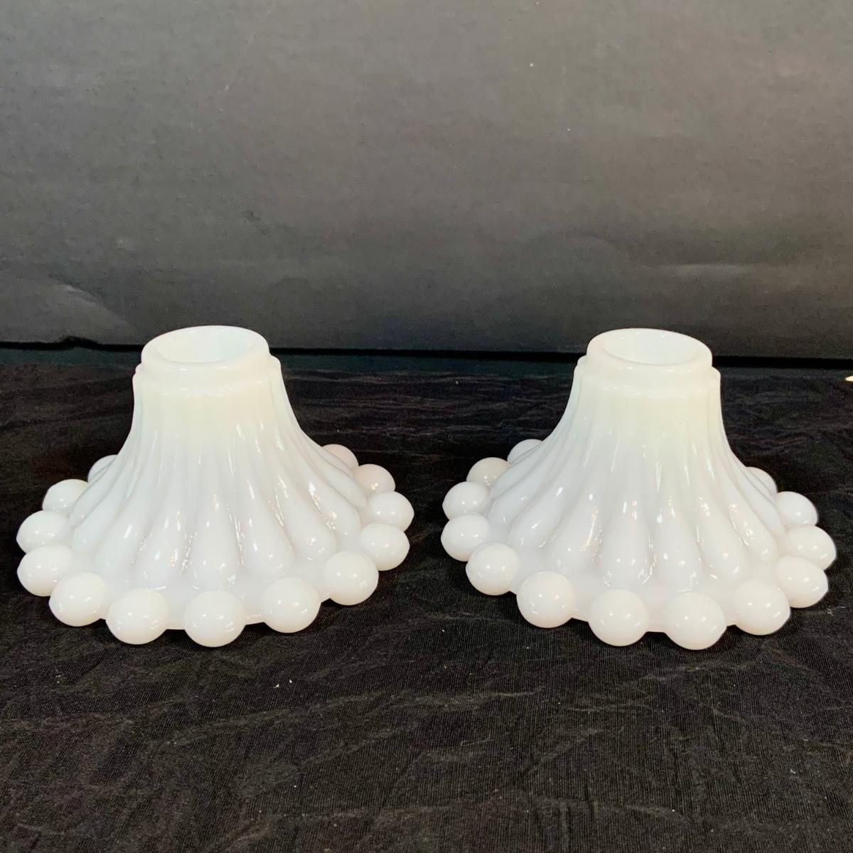 LOT 265: Set of Two (2) Hobnail Milk Glass Electric Lambs, Milk Glass Candle Stick Holders, and a Brody Milk Glass Vase