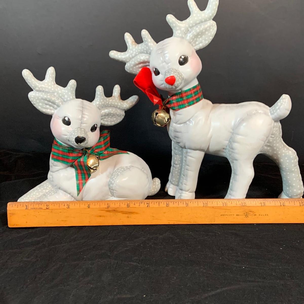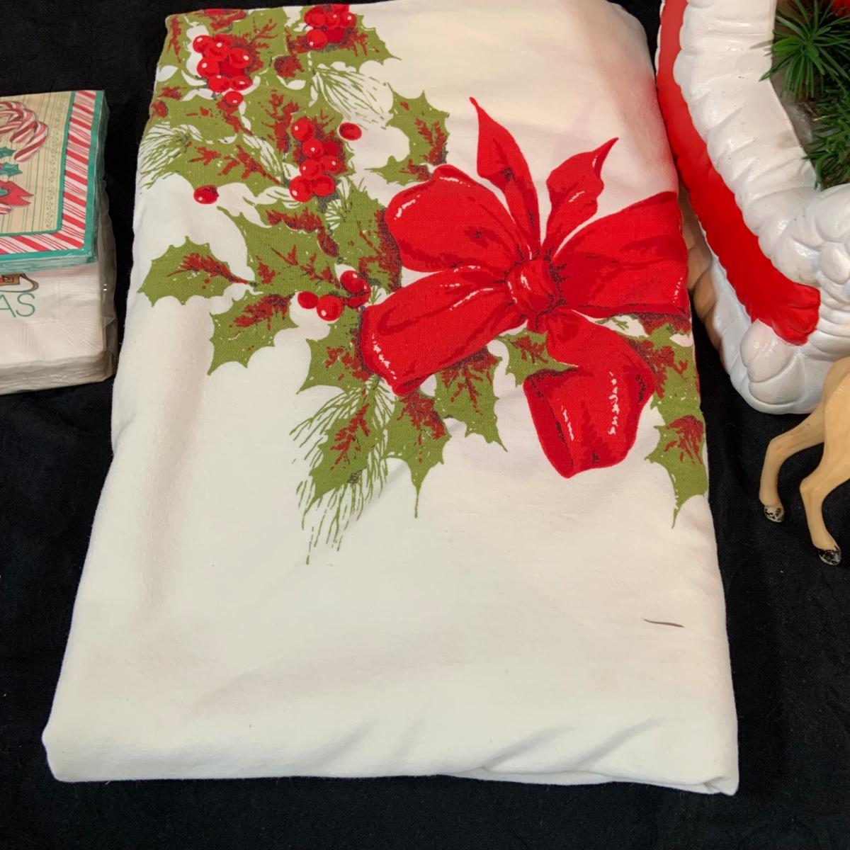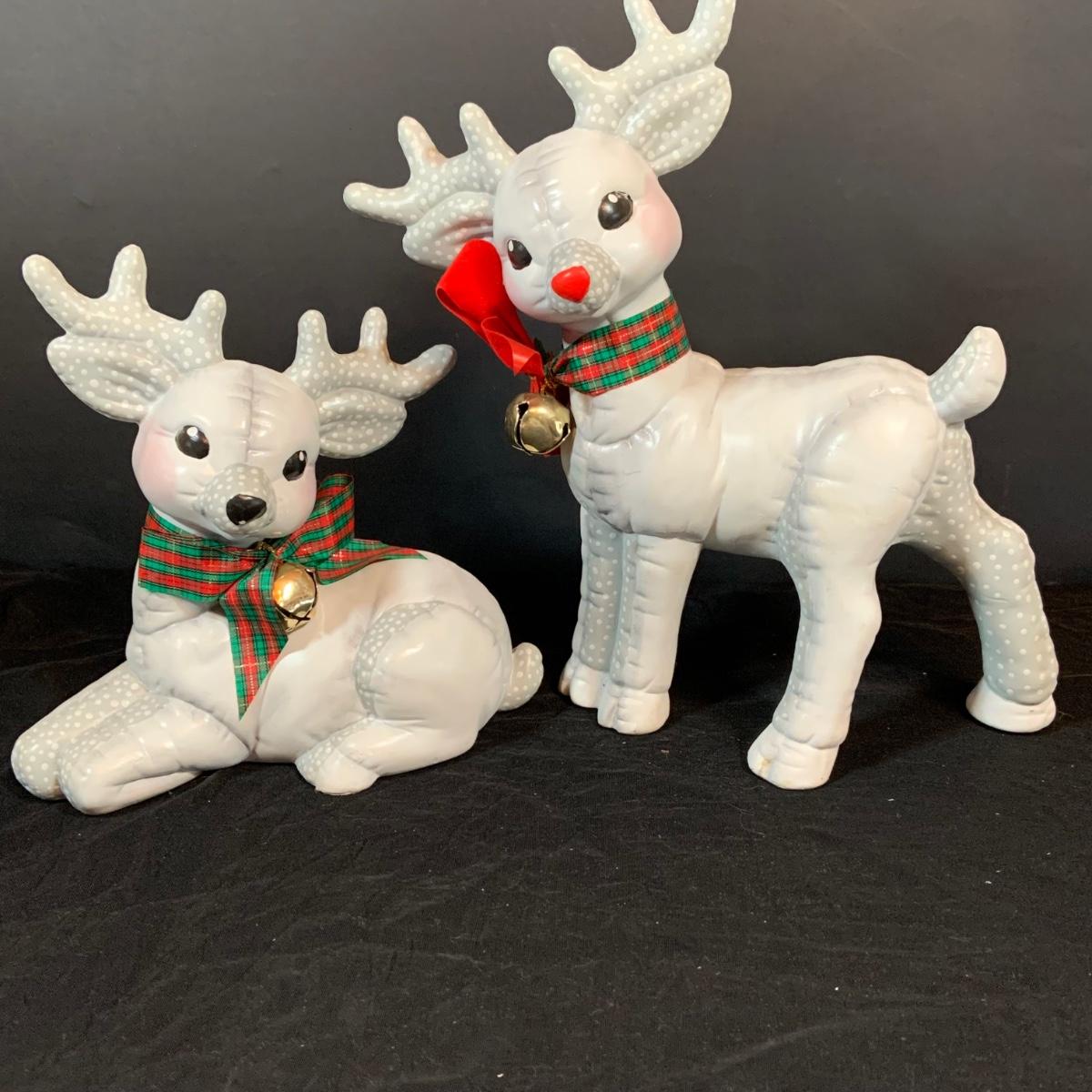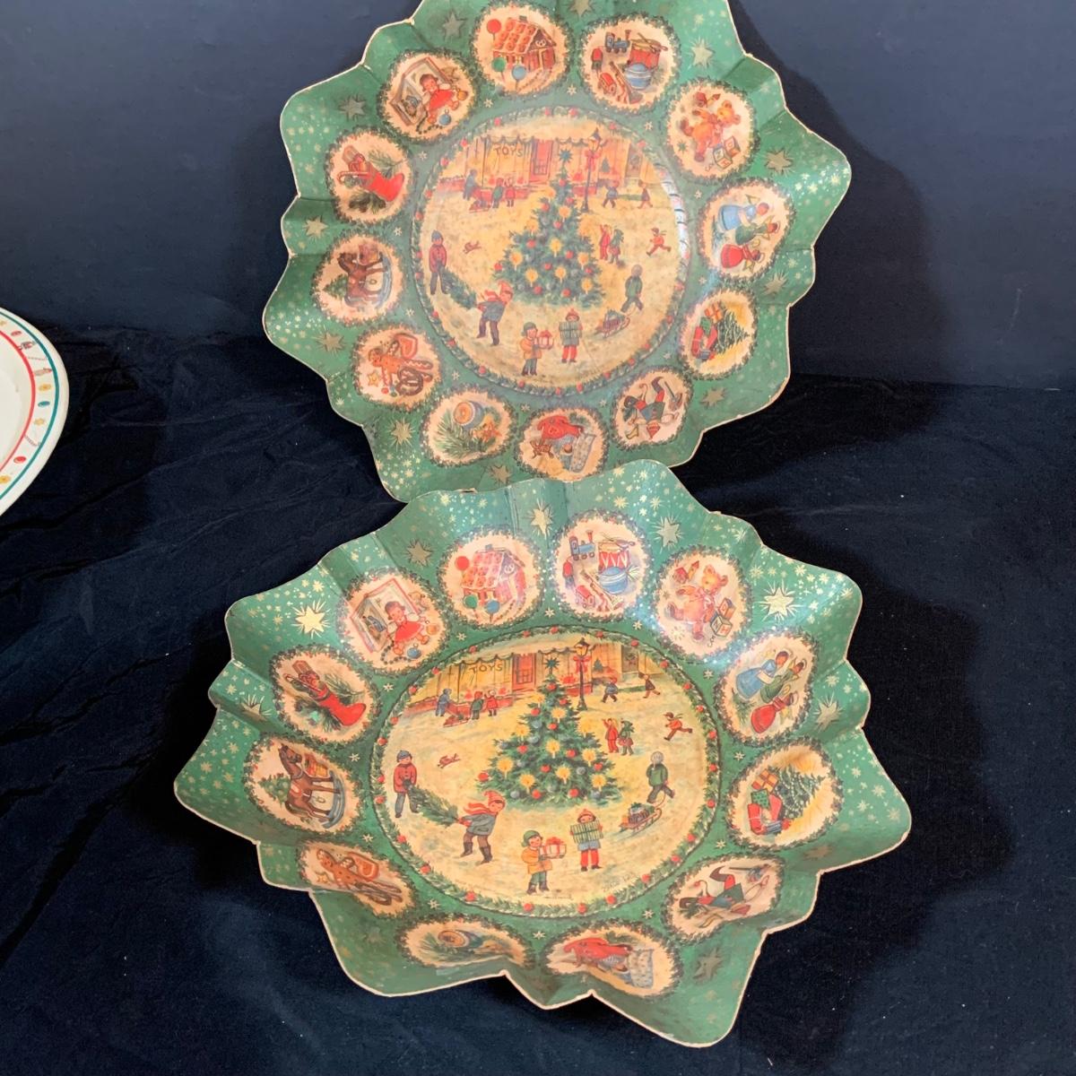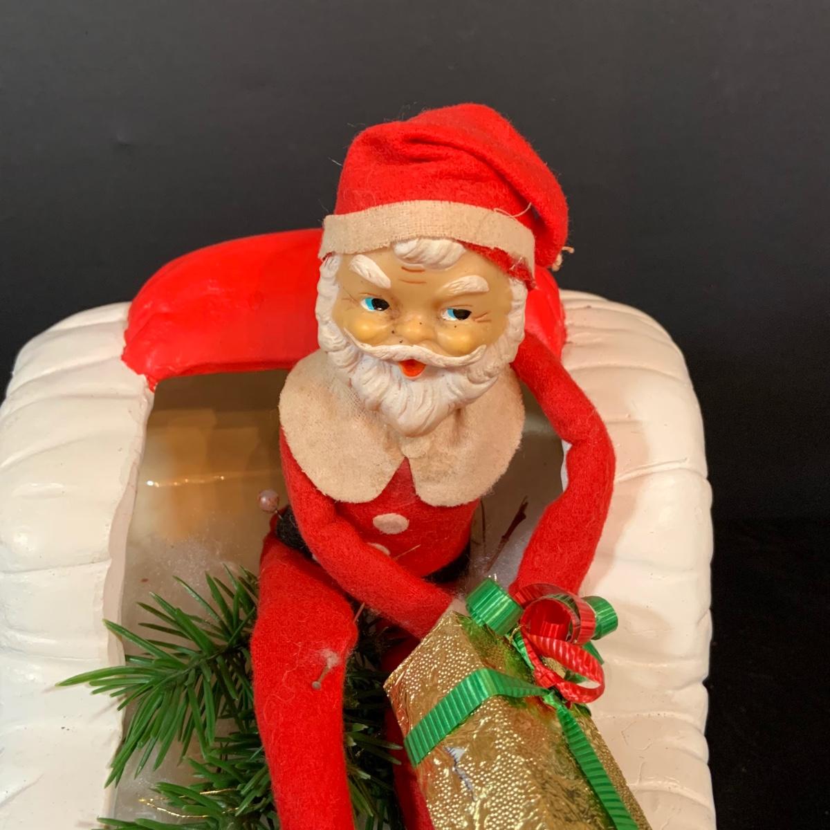 LO 269: Assortment of Vintage Christmas Decorations and More Including Vintage Hallmark Paper Bowls Knee Hugger Style Santa in Ceramic Sleigh, Ceramic and Plastic Reindeer, and More