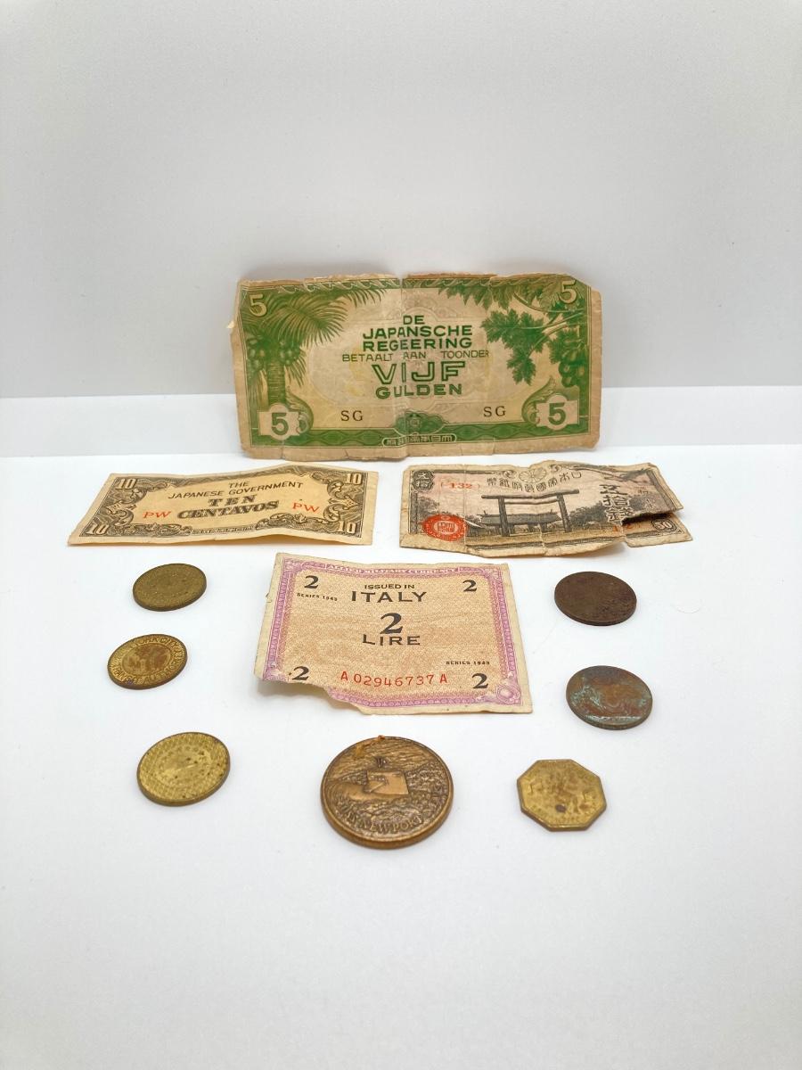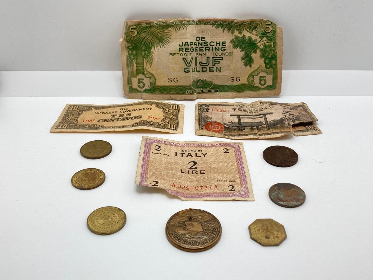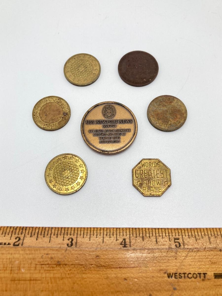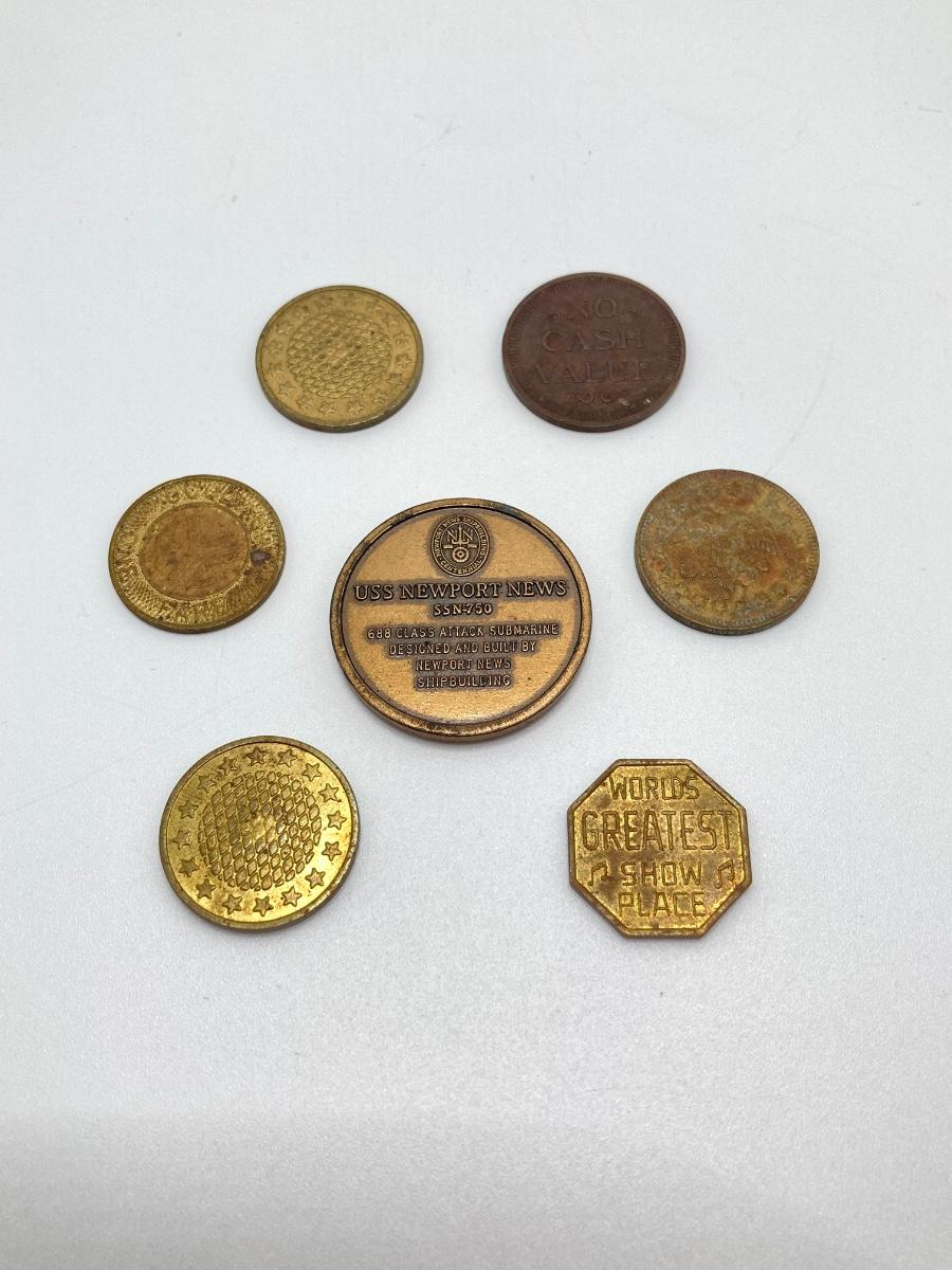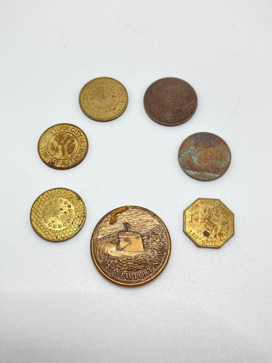 LOT 298: Vintage Foreign Paper Currency and Collection of Tokens - NY City Transit Authority, USS Newport News, Show World Center and Moe