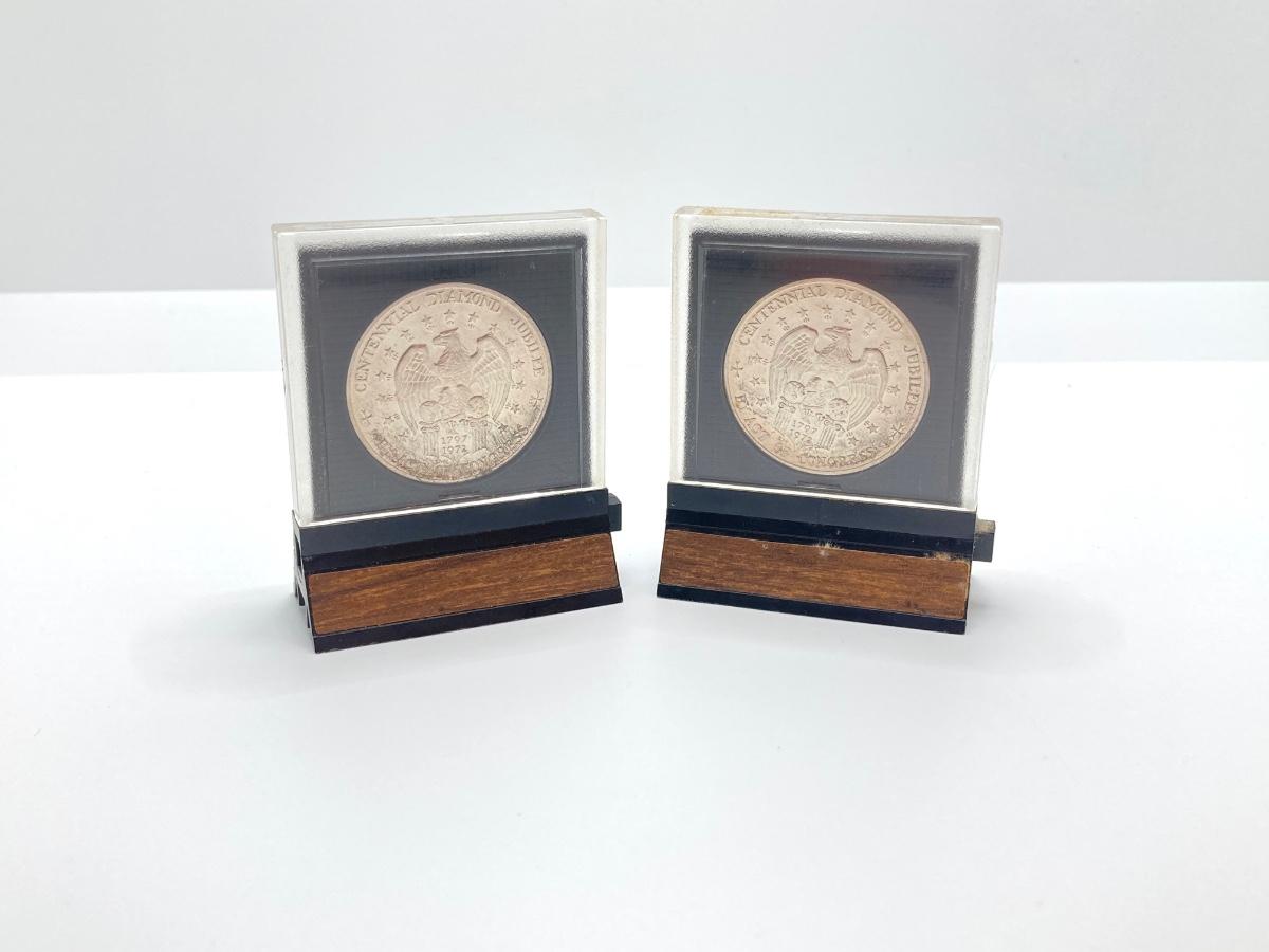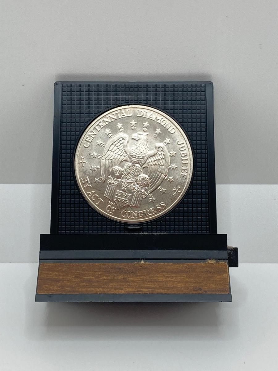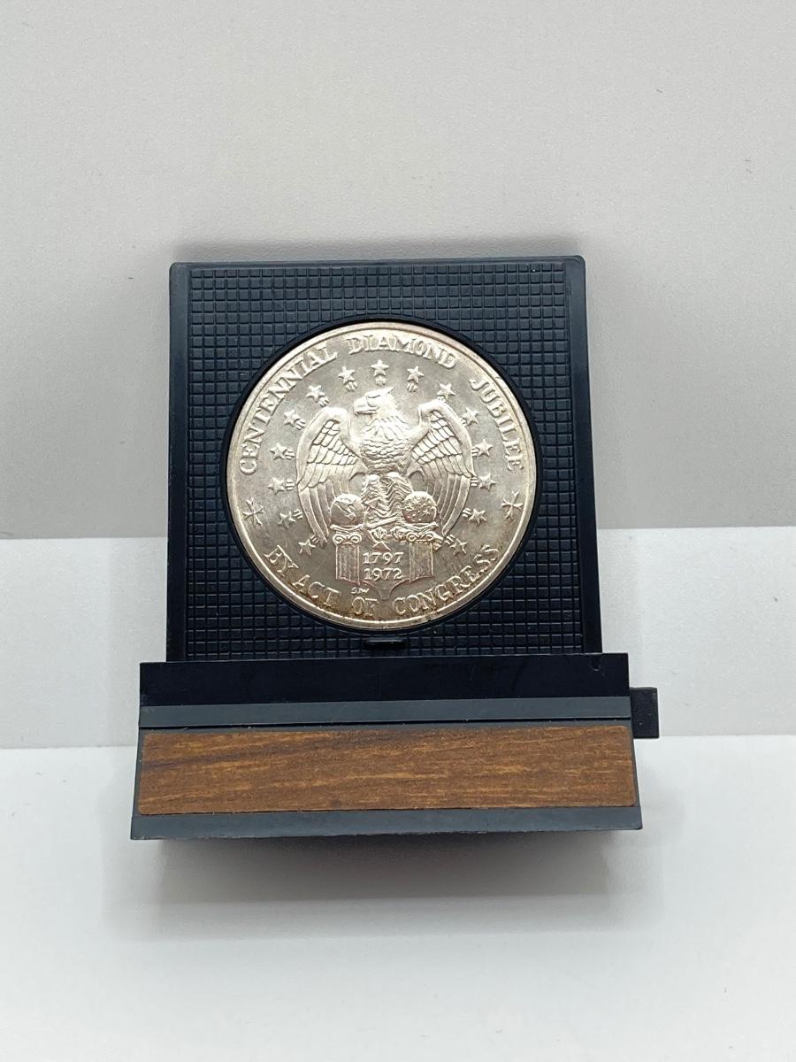 LOT 312: Two 1972 U.S. Constellation Centennial Diamond Jubilee Silver Medals in Protective Cases