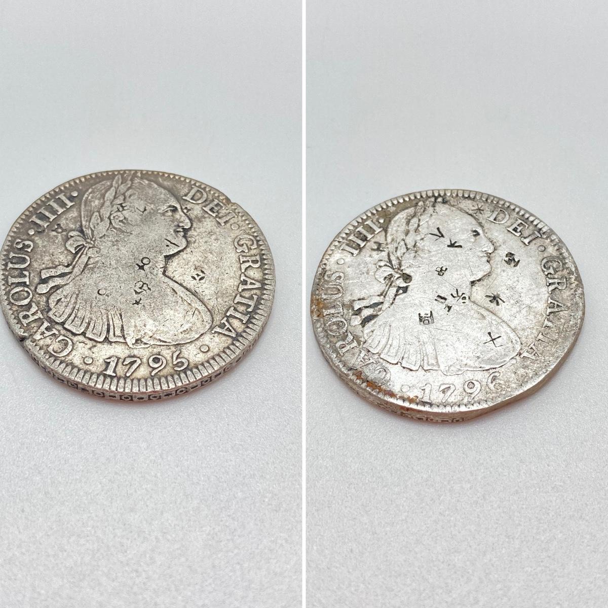 LOT 316: 1795 and 1796 Carolous IIII Dei Gratia Hisean Et Ind Rex 8 R F M Spanish Colonial Silver Coins