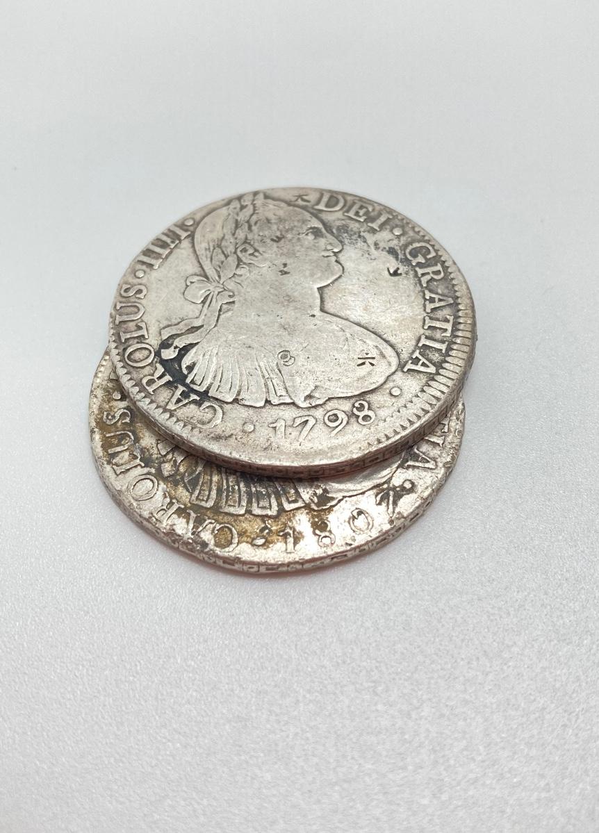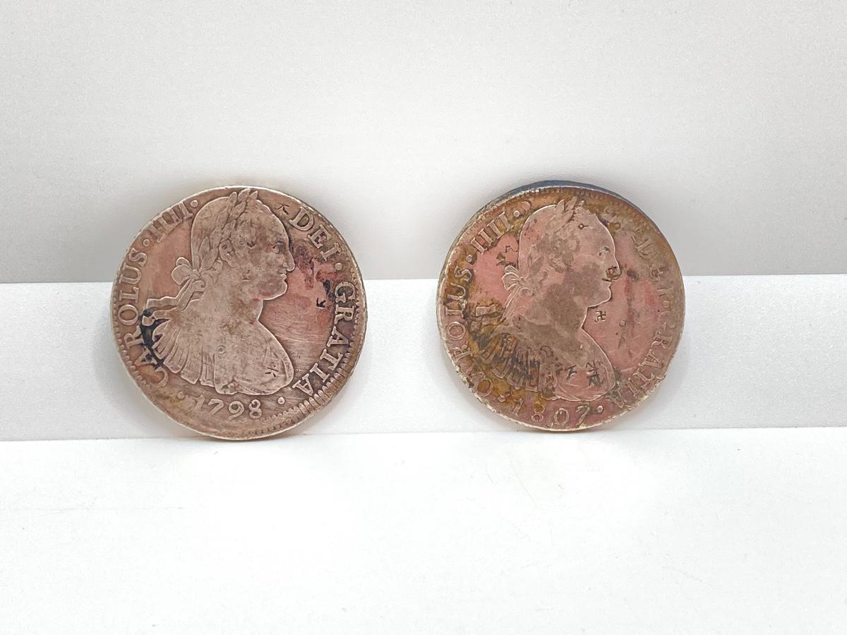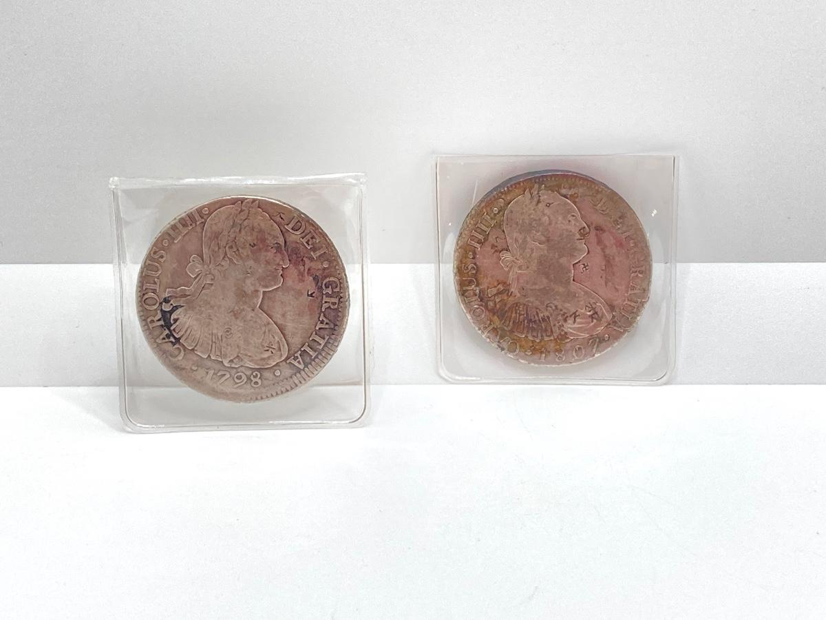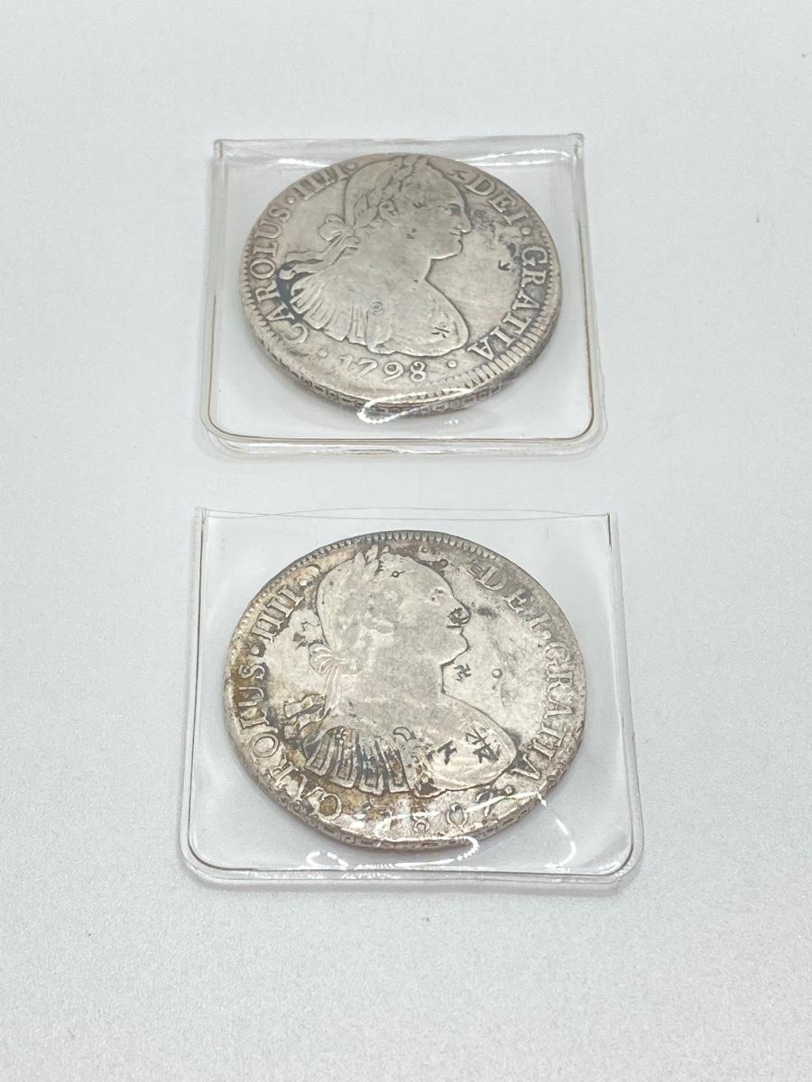 LOT 318: 1798 and 1807 Carolous IIII Dei Gratia Hisean Et Ind Rex 8 R F M Spanish Colonial Silver Coins