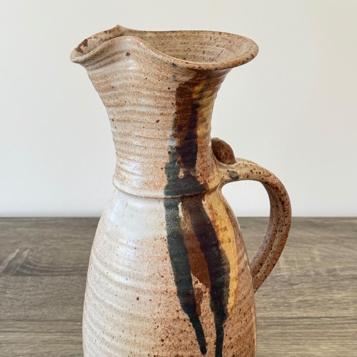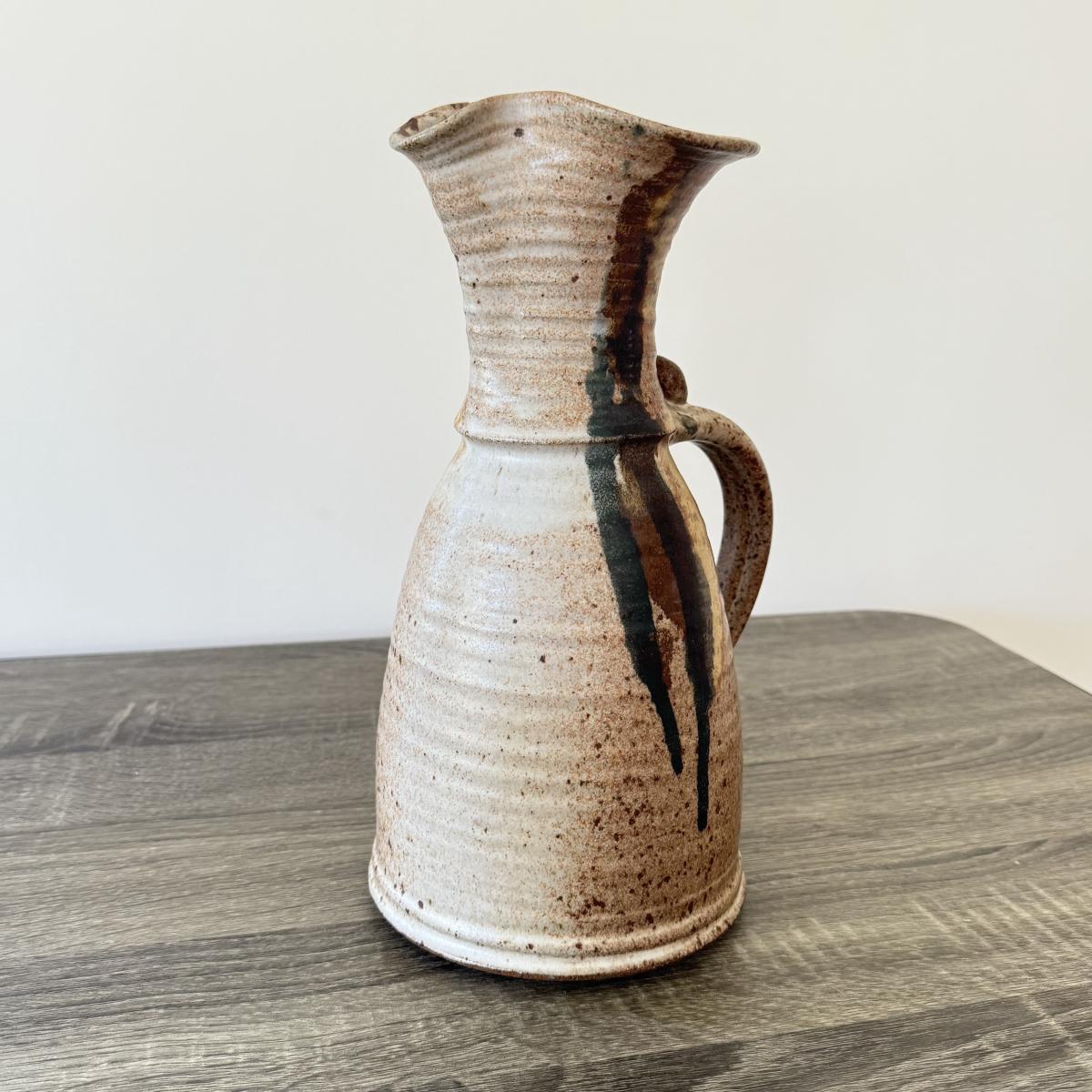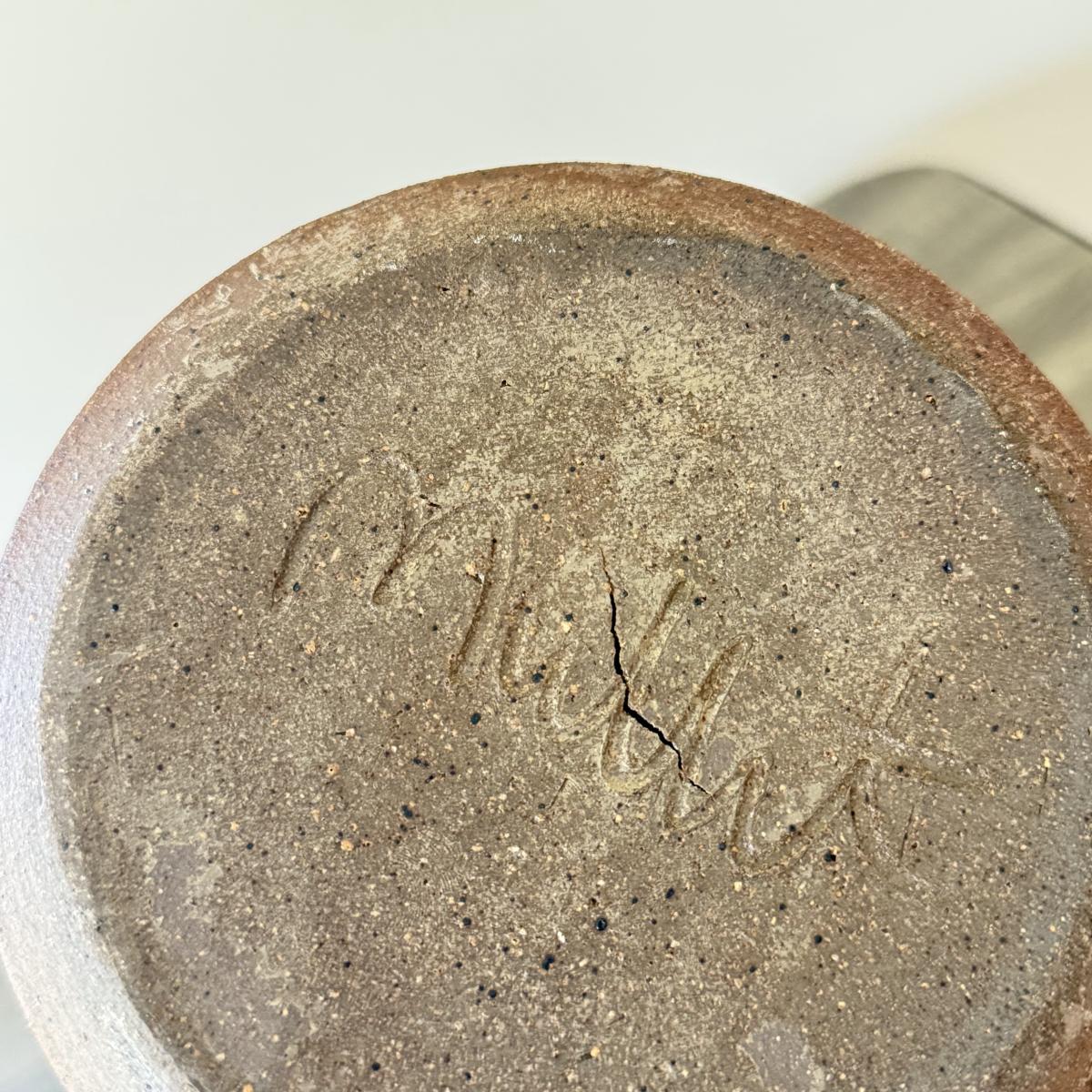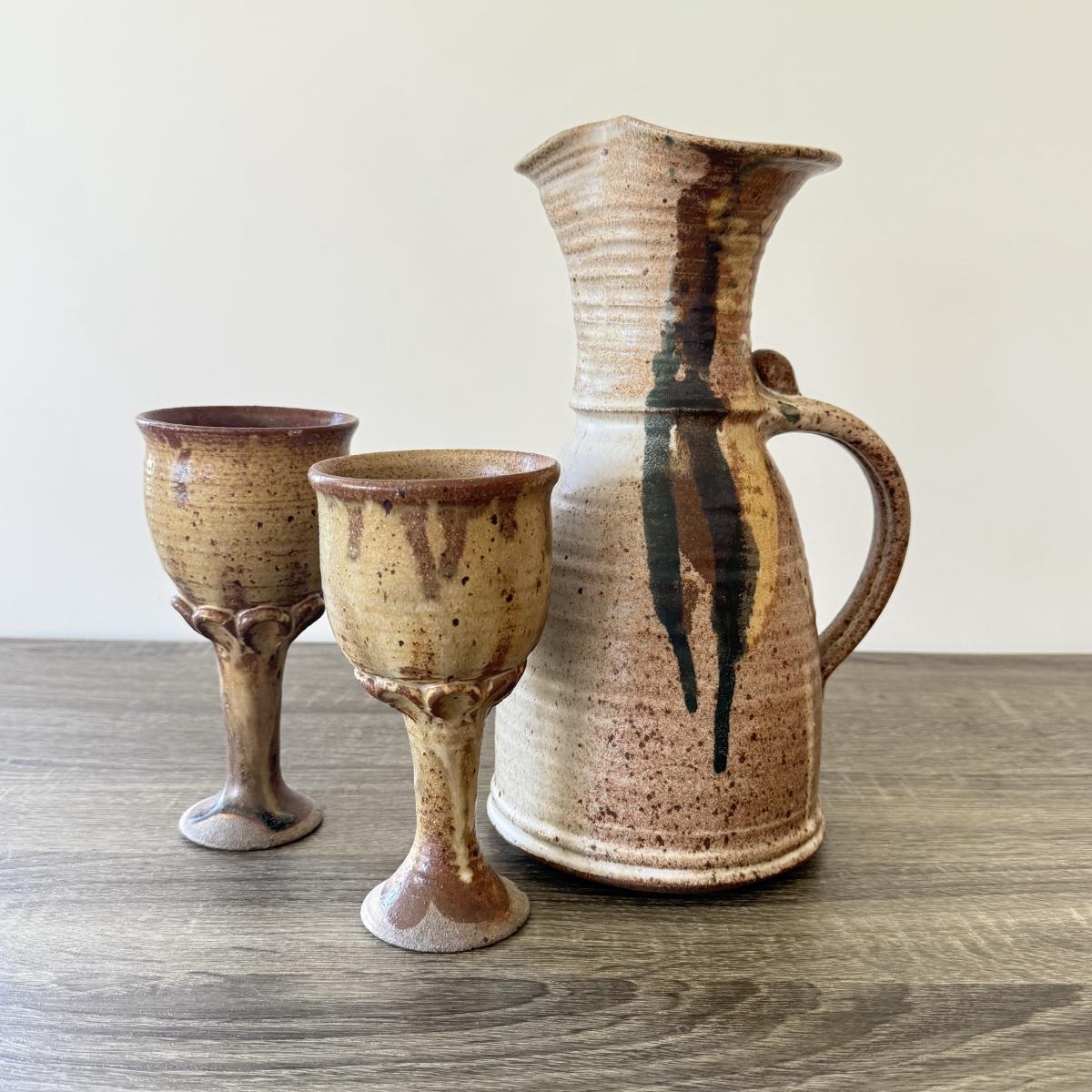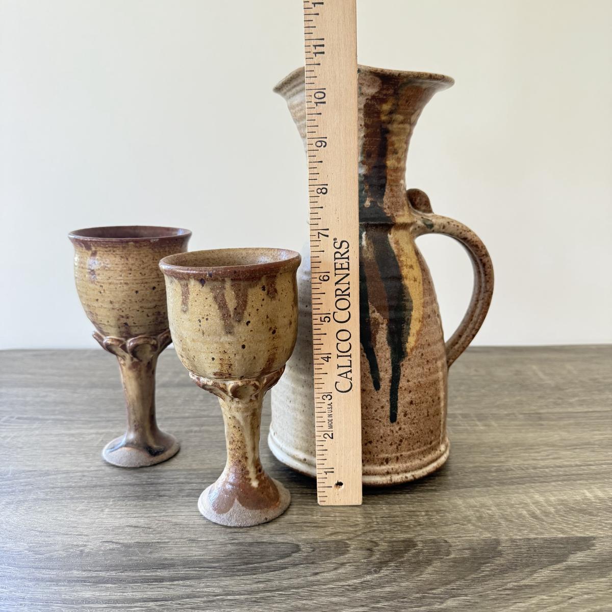 LOT 7K: Signed Mullit Stoneware Pottery Pitcher & 1975 Signed Boone Drip Glaze Stoneware Pottery Goblets