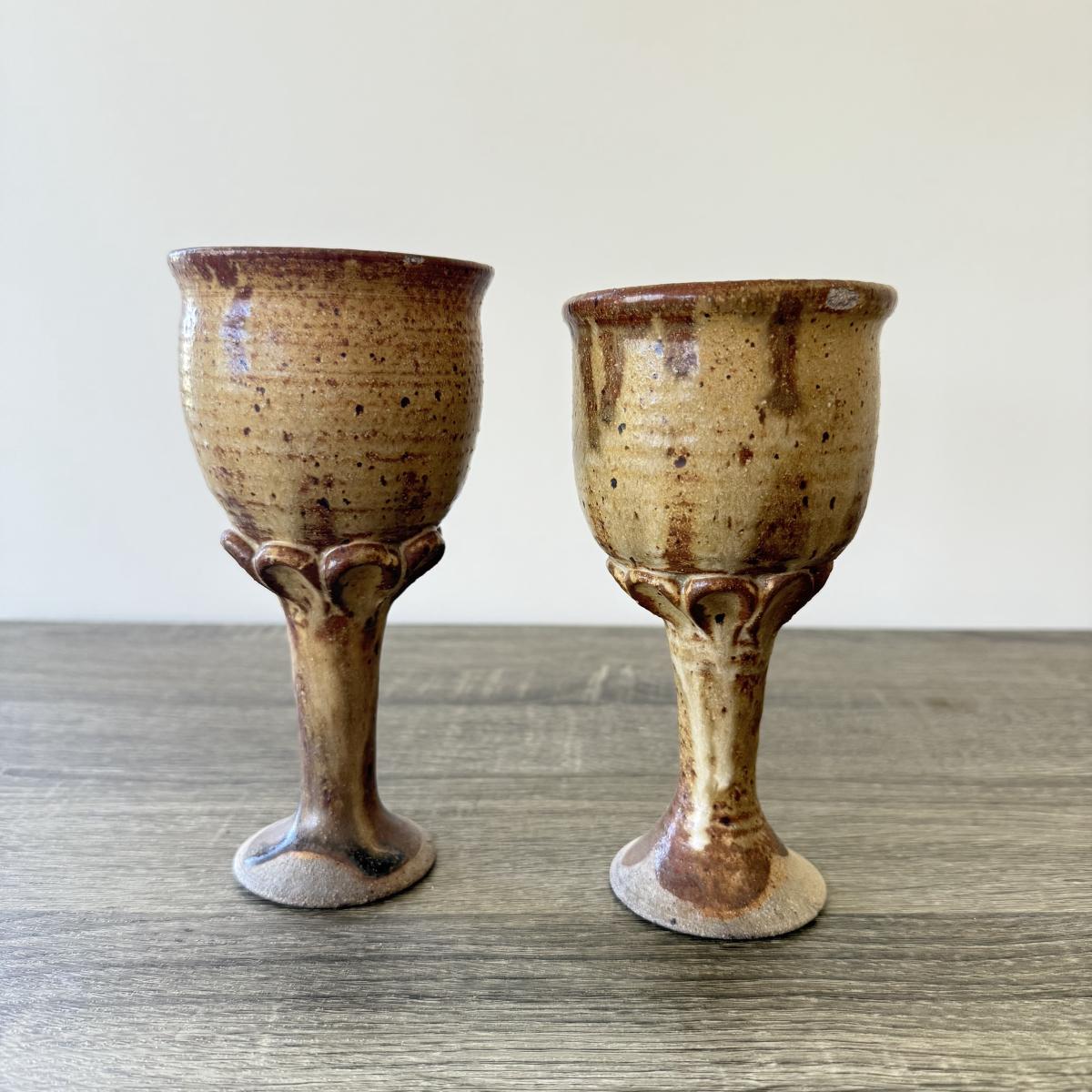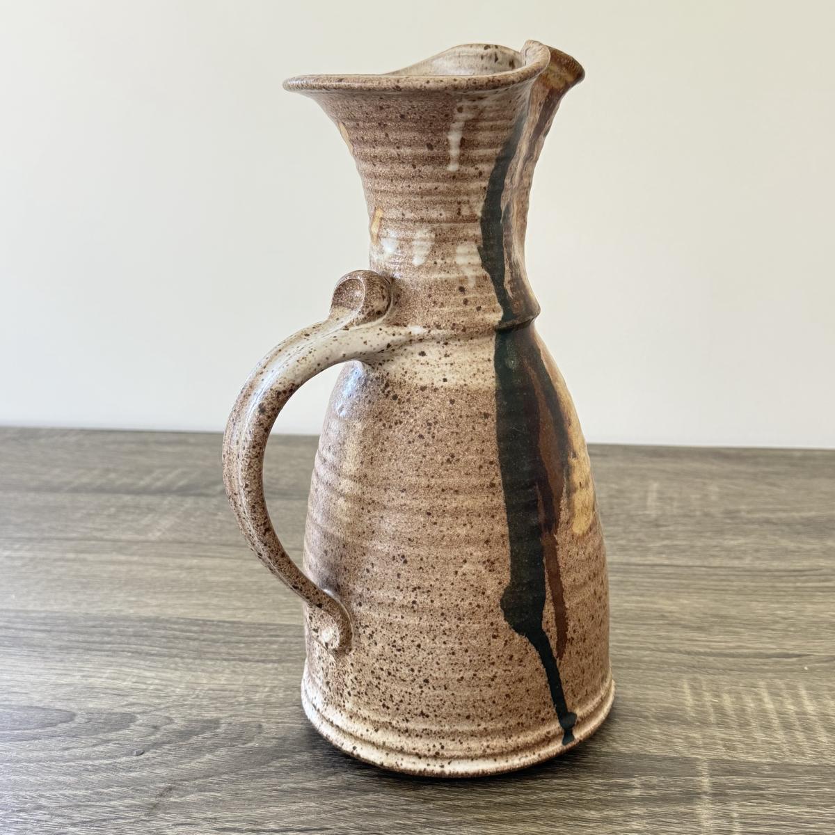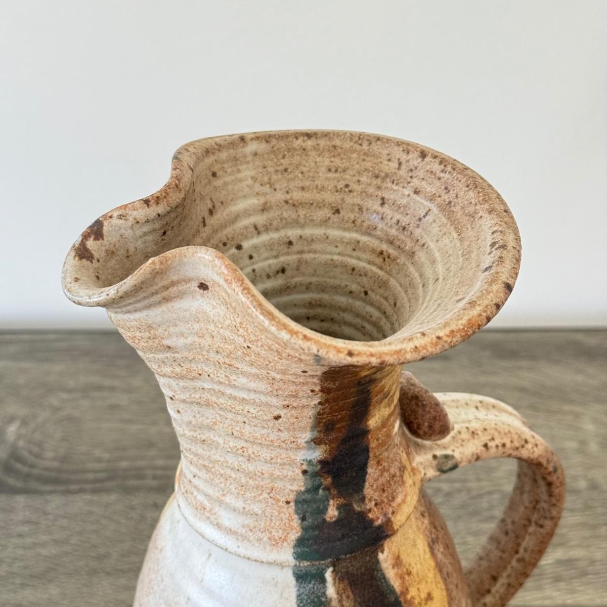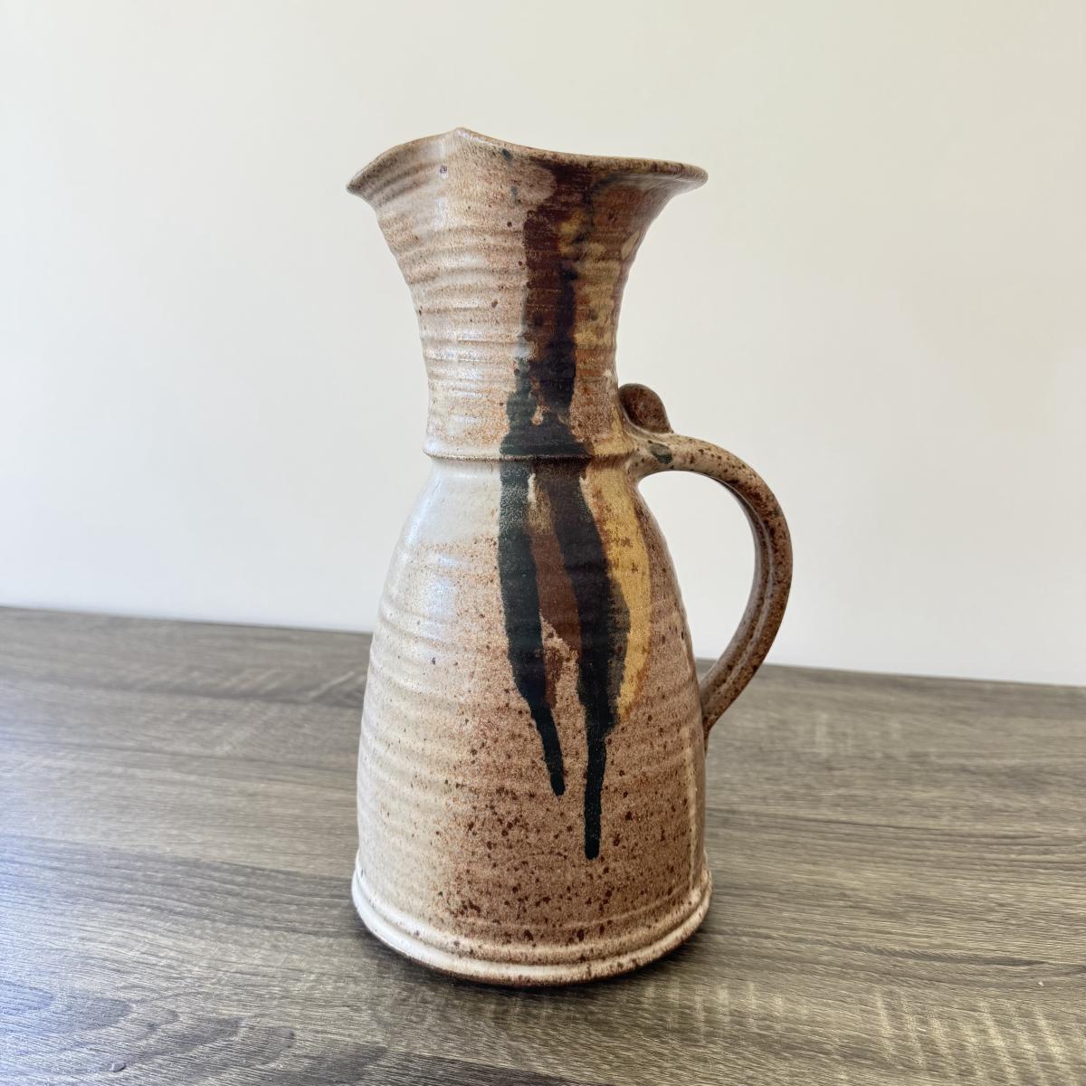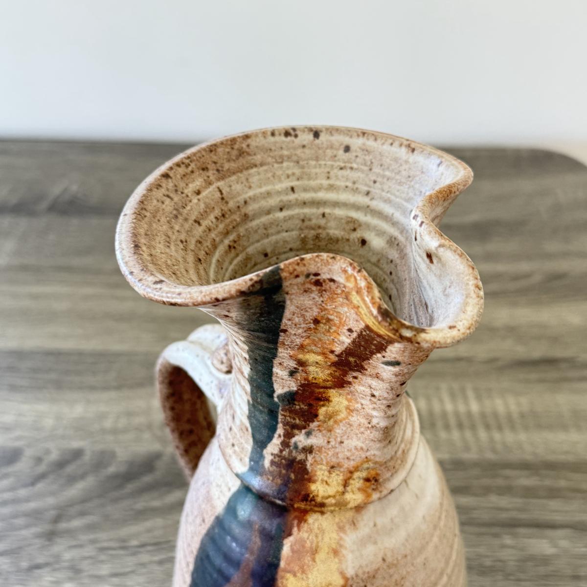 LOT 7K: Signed Mullit Stoneware Pottery Pitcher & 1975 Signed Boone Drip Glaze Stoneware Pottery Goblets