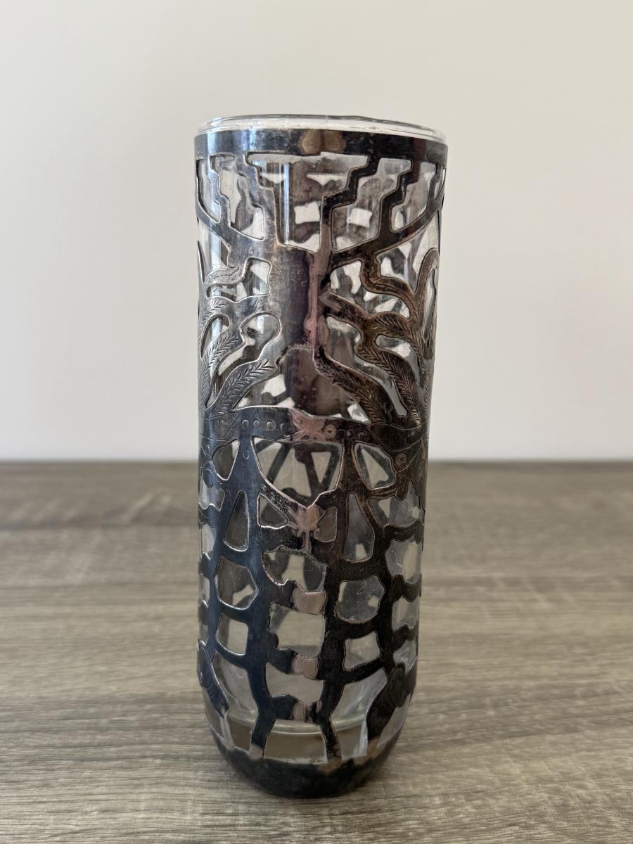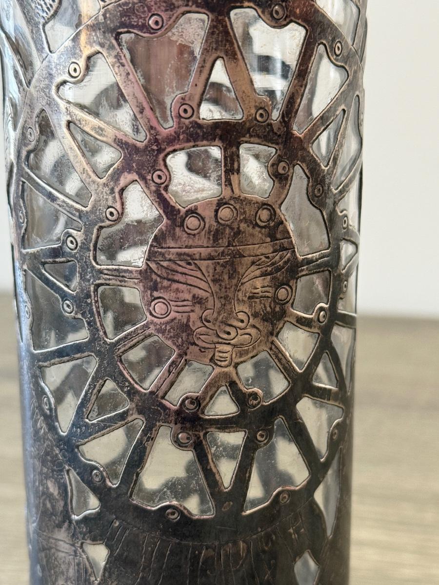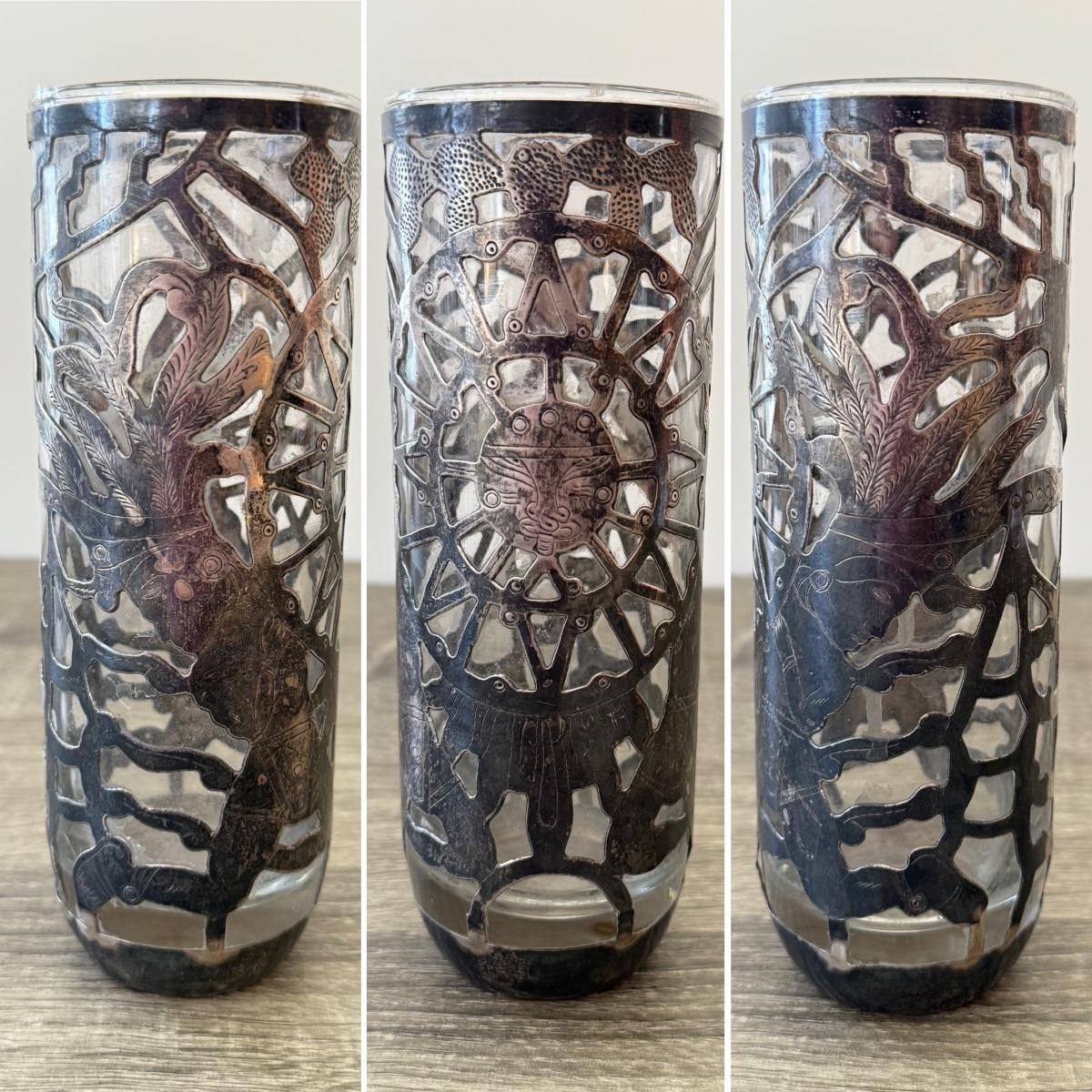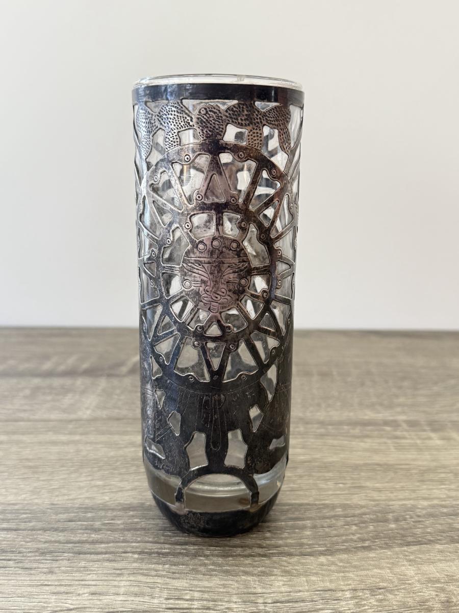 LOT 15K: MPR 925 Sterling Silver Overlay Mexican Motif Iced Tea Glass