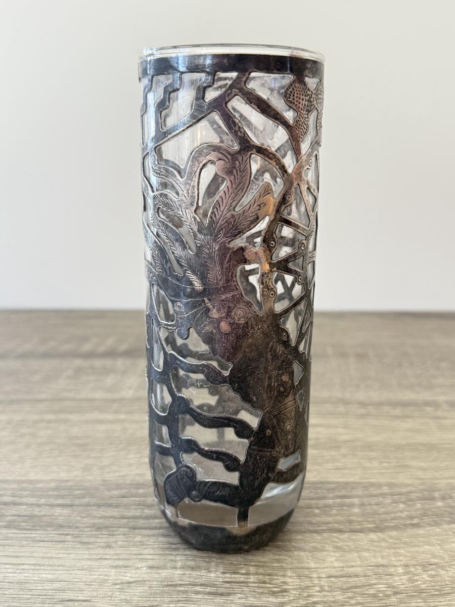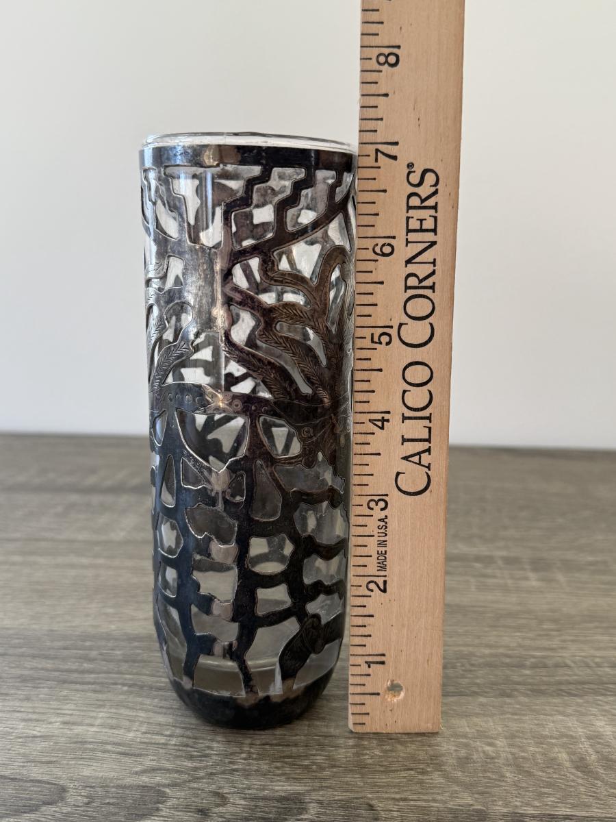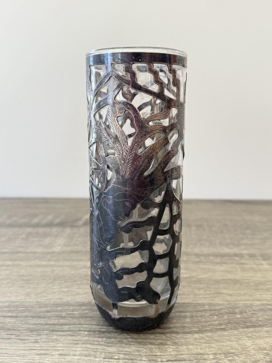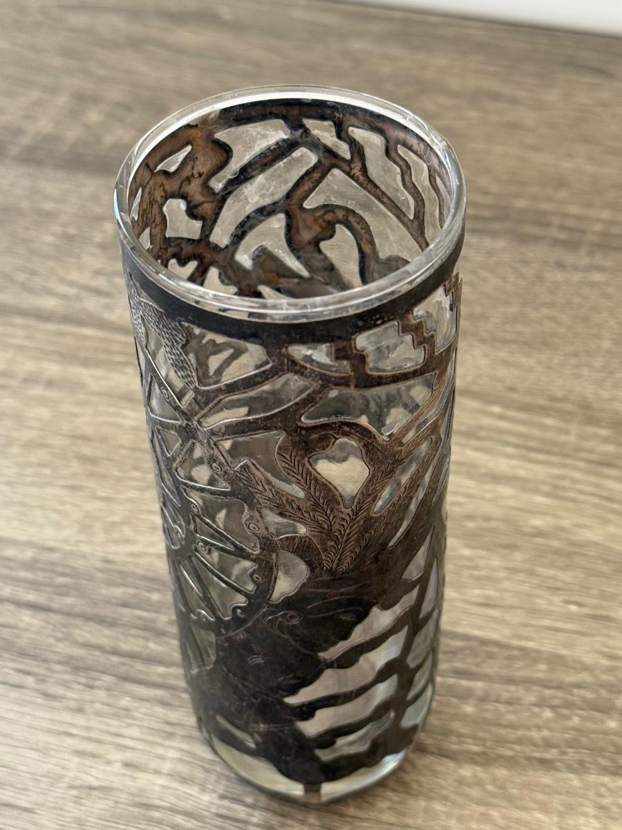 LOT 15K: MPR 925 Sterling Silver Overlay Mexican Motif Iced Tea Glass