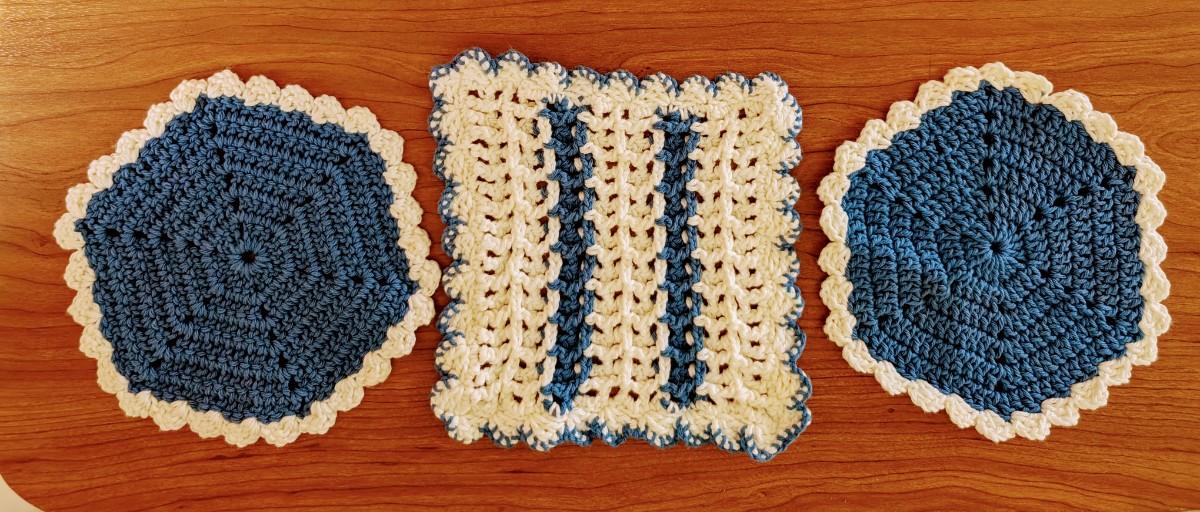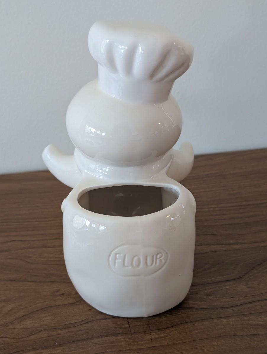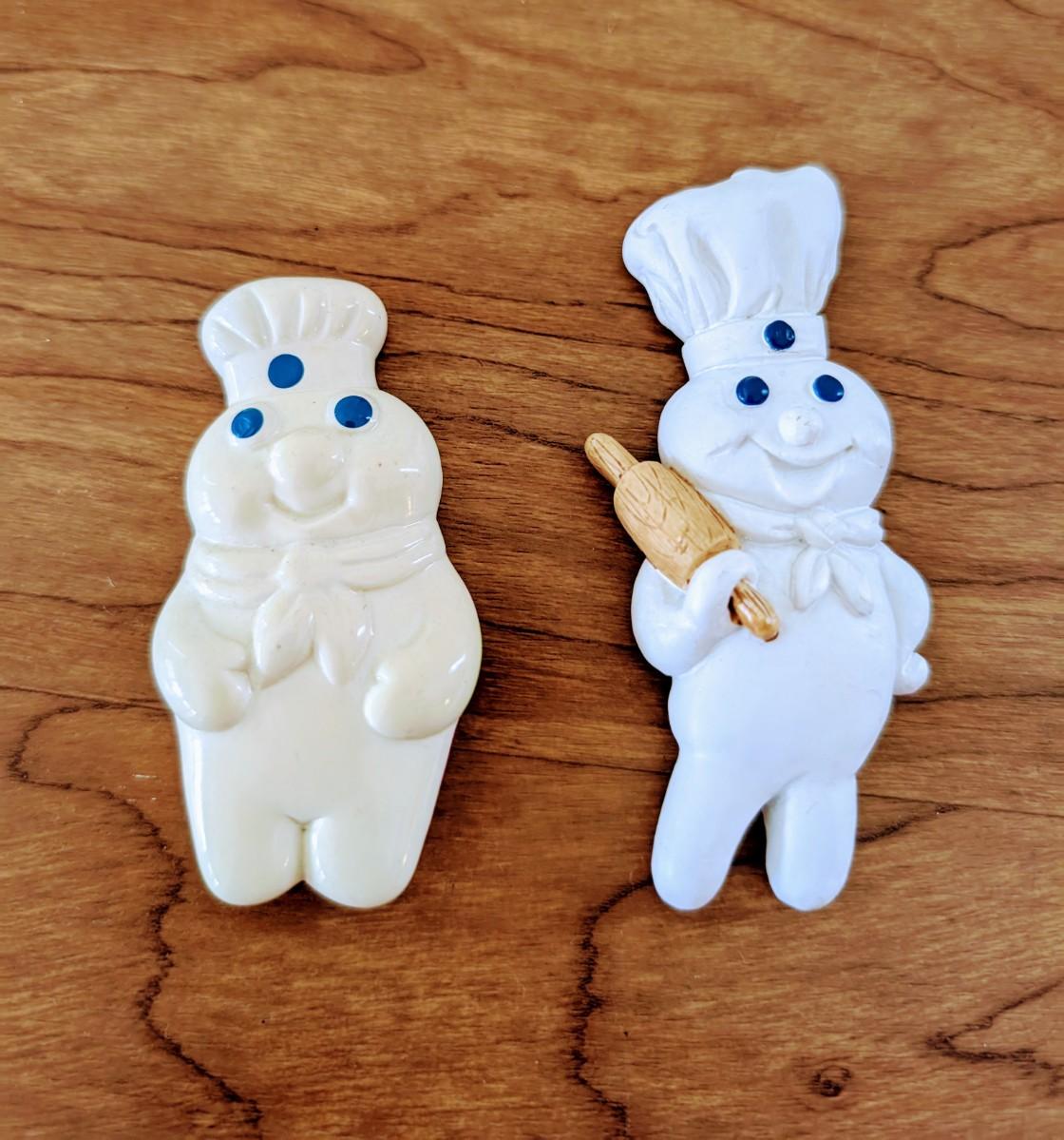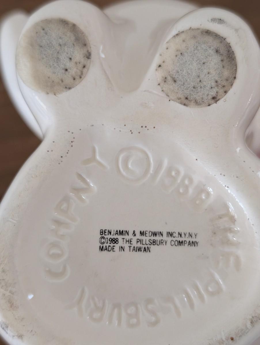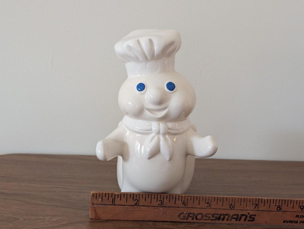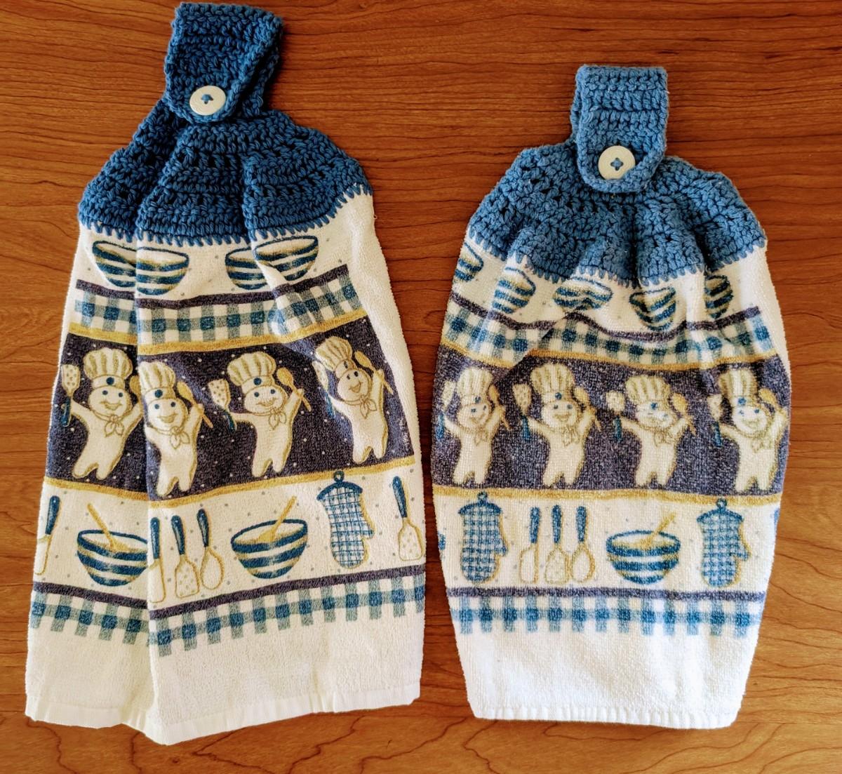 LOT 45K: Vintage Pillsbury Doughboy Kitchen Utensil Holder, Magnets And Hanging Kitchen Towels With Coordinating Hand Crocheted Potholders