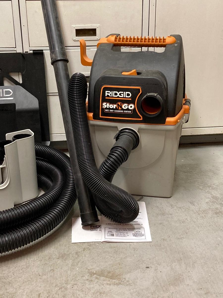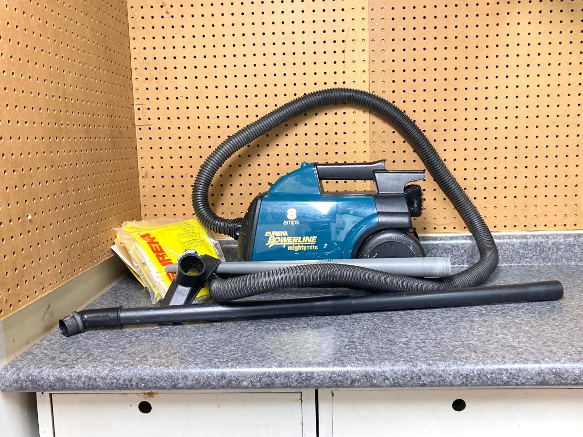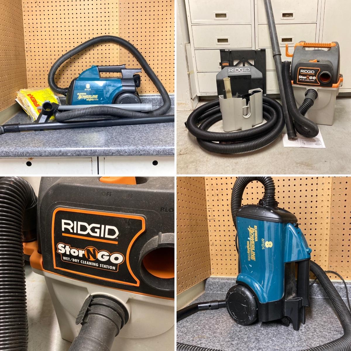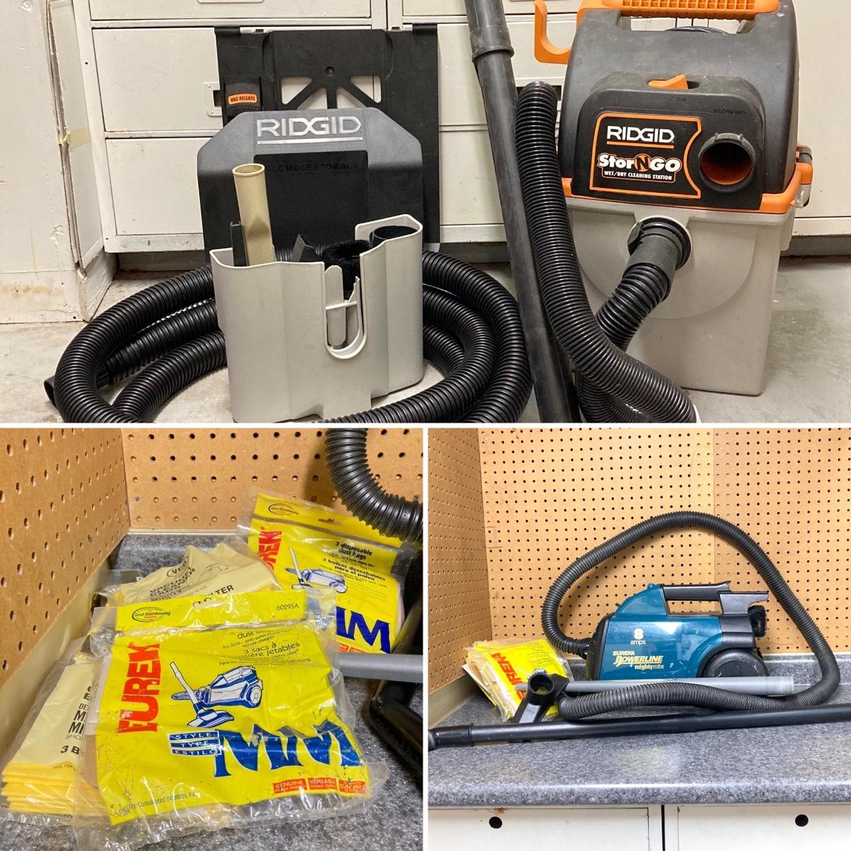 LOT 66U: Ridgid Stor N Go Vacuum Model WD5500 0, Eureka Powerline Mightymite Vacuum Model 3673 and Vacuum Bags