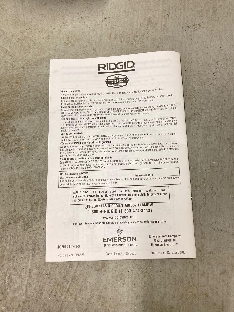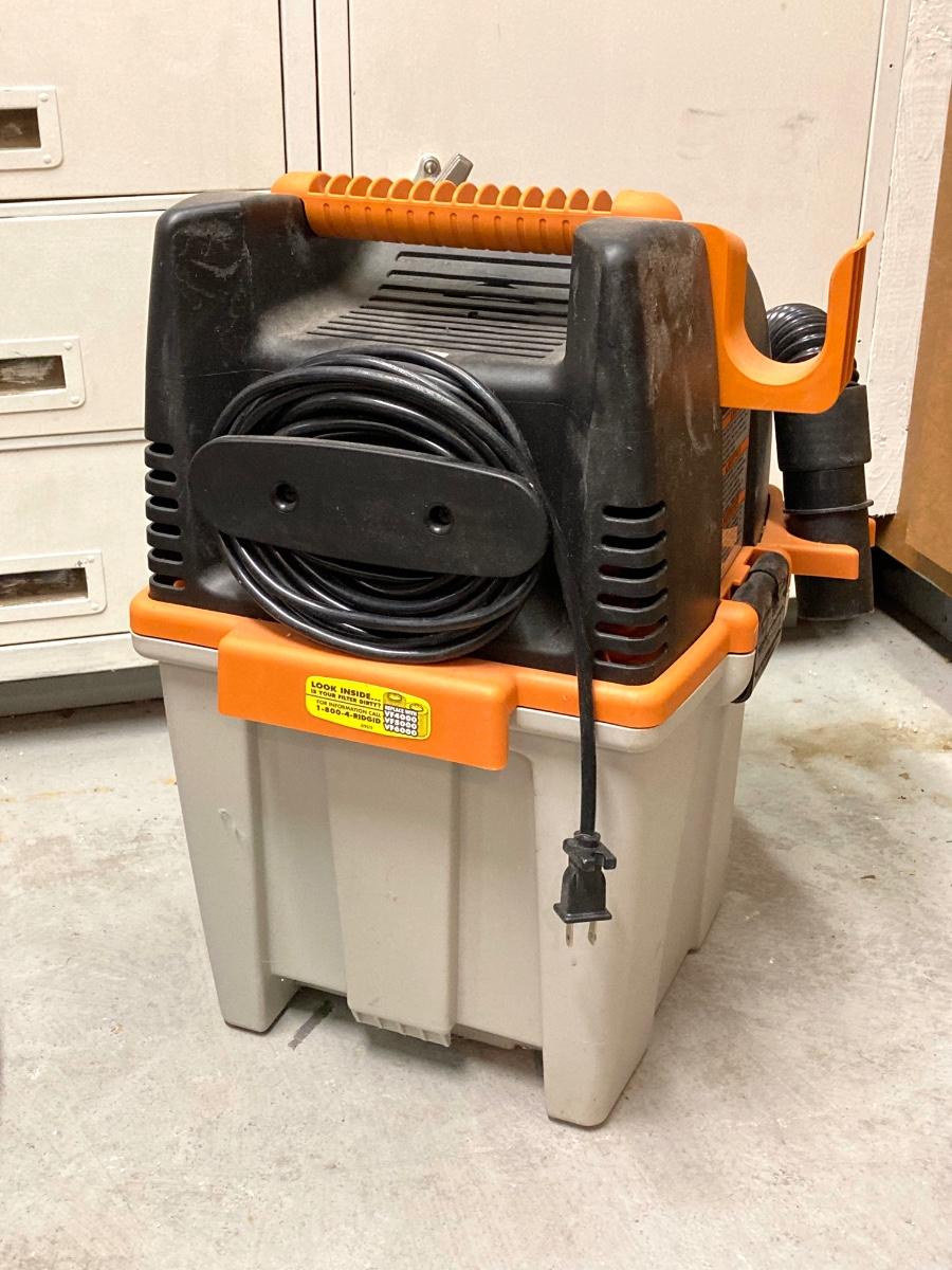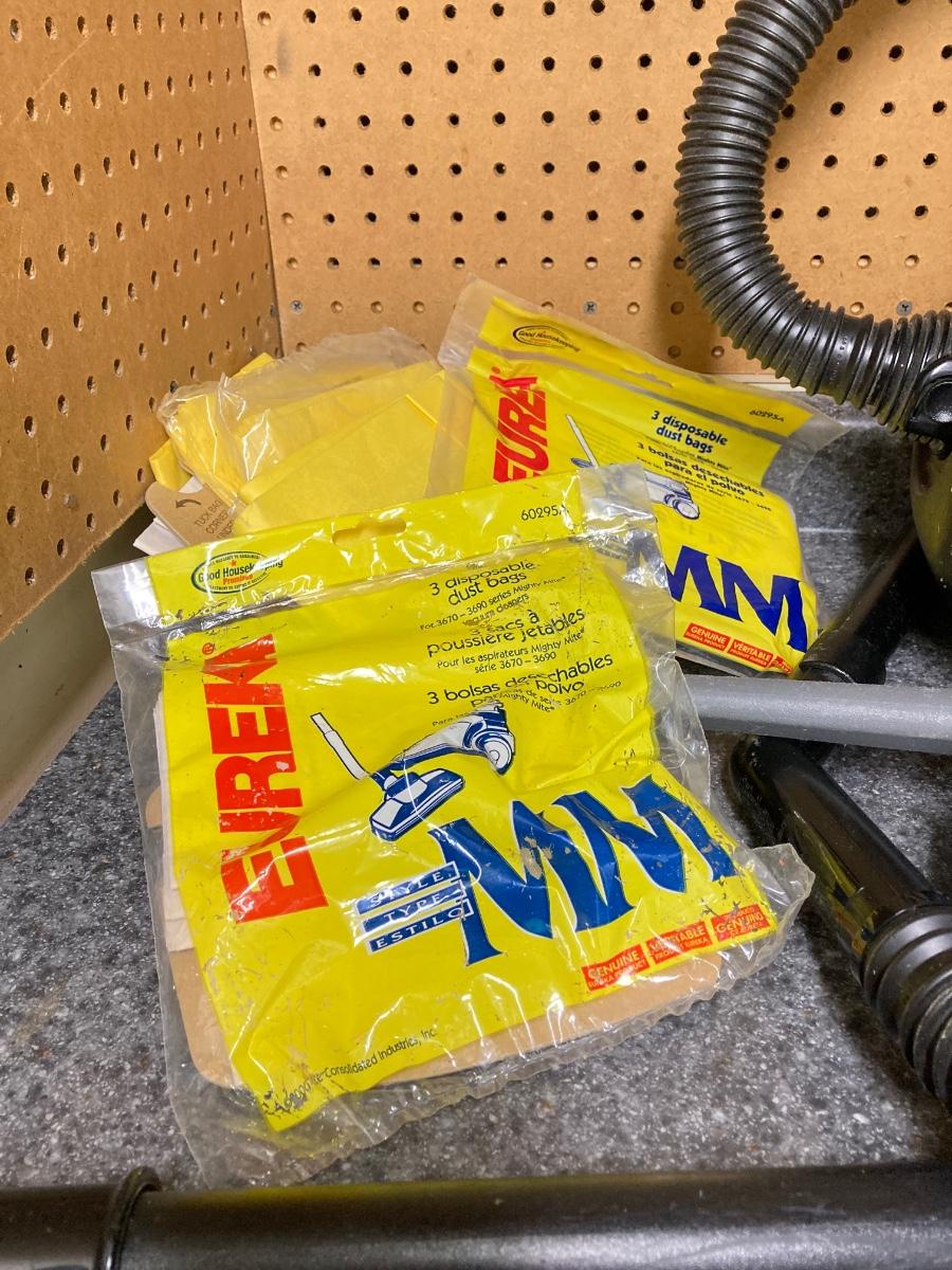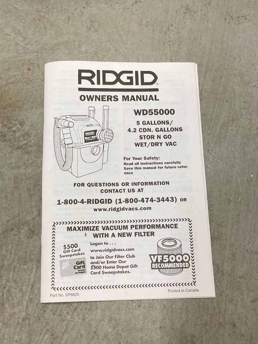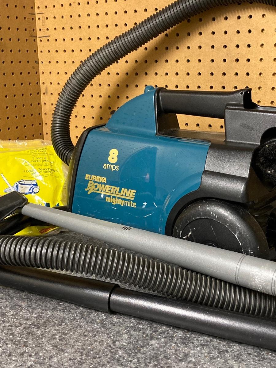 LOT 66U: Ridgid Stor N Go Vacuum Model WD5500 0, Eureka Powerline Mightymite Vacuum Model 3673 and Vacuum Bags