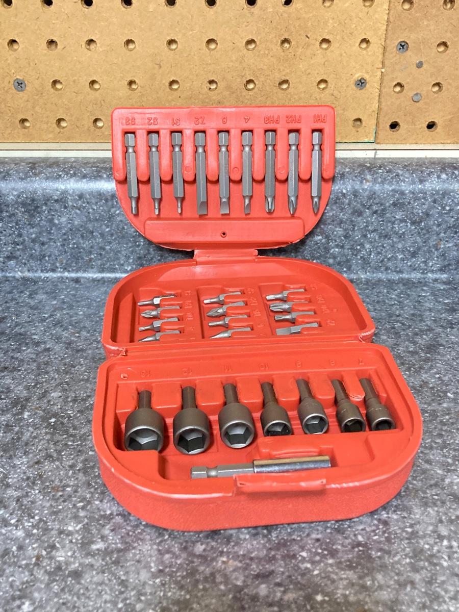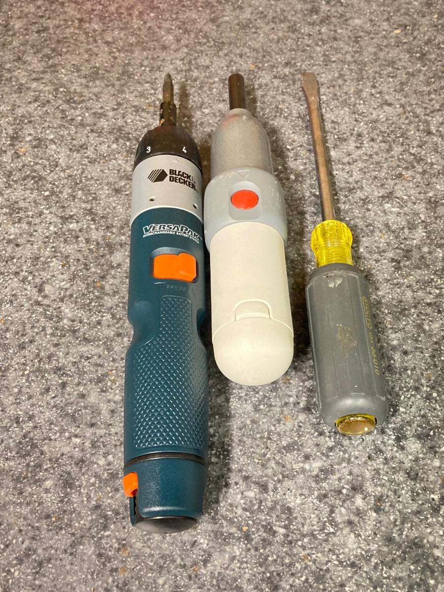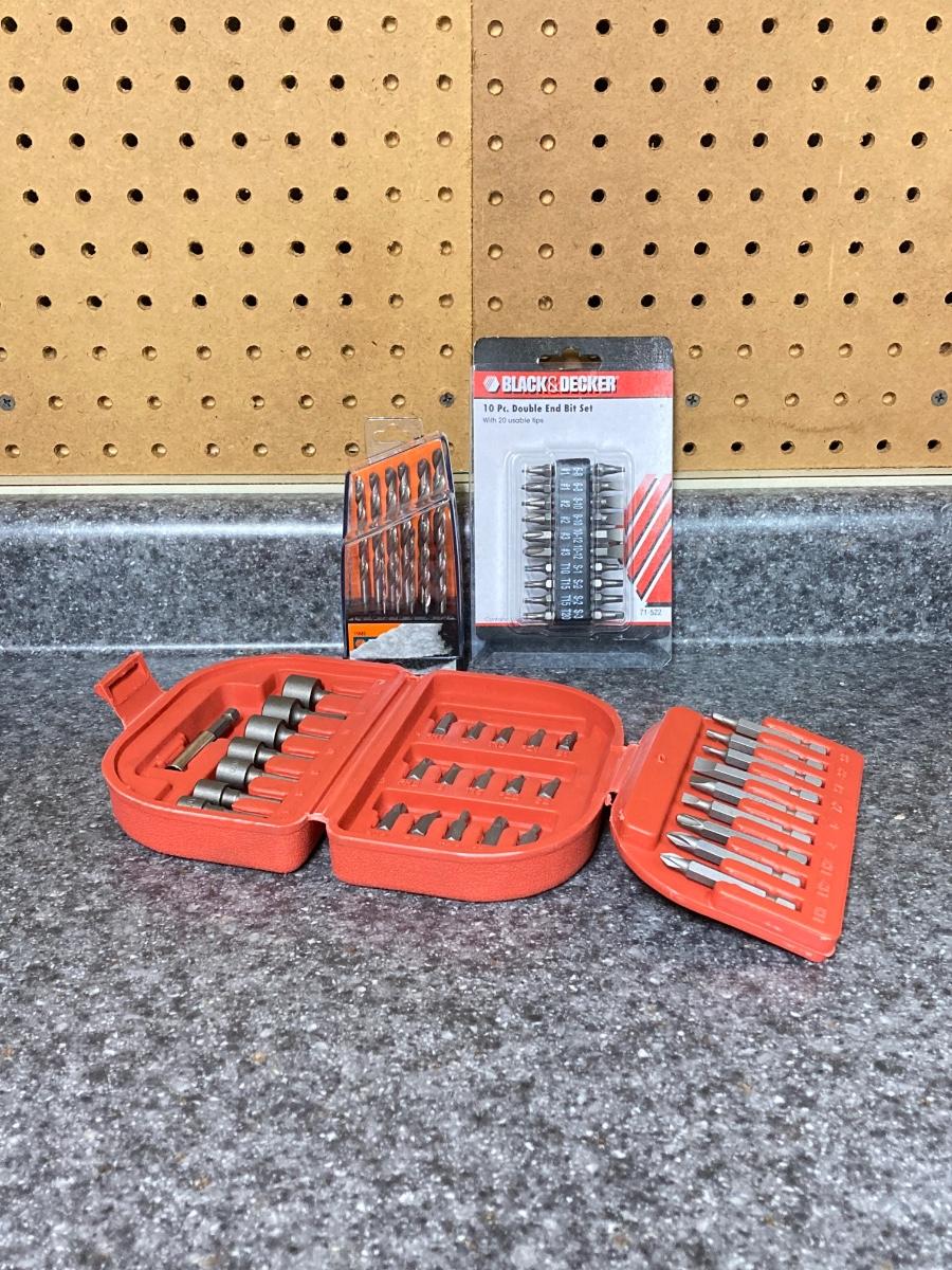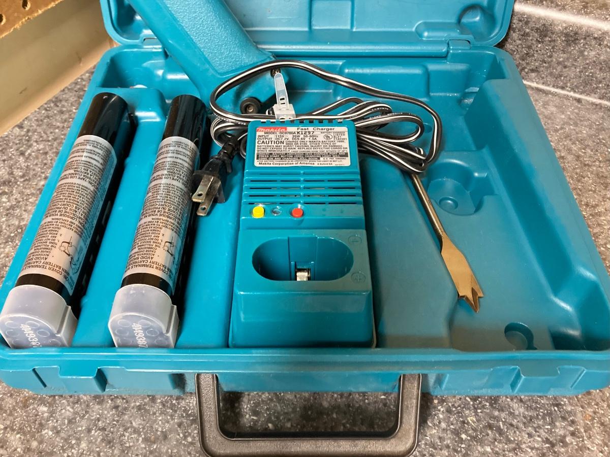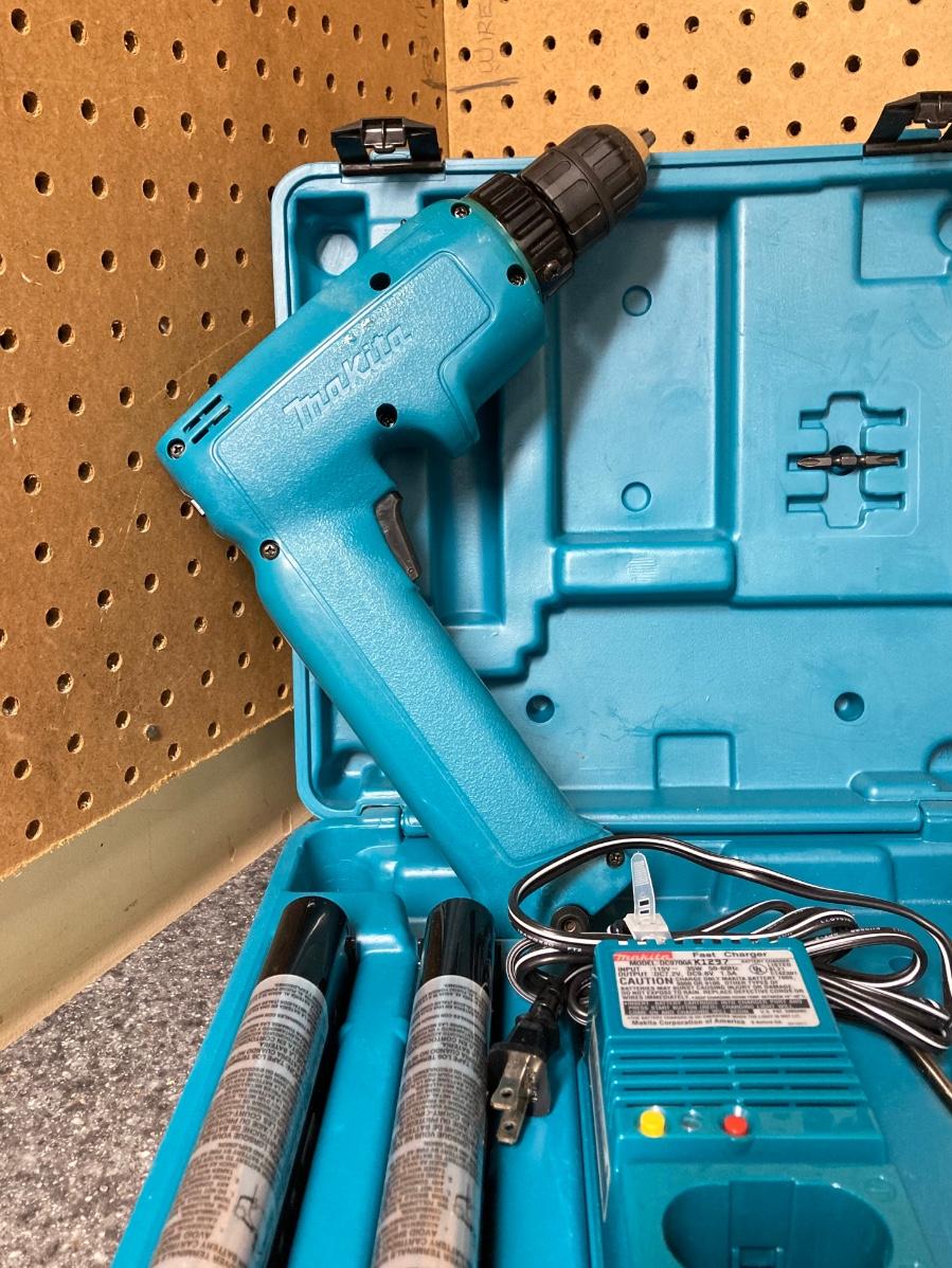 LOT 67U: Makita Drill Model 6095D with Charger, Cordless Screwdrivers, Drill Bits, Hammer, Pry Bar and More