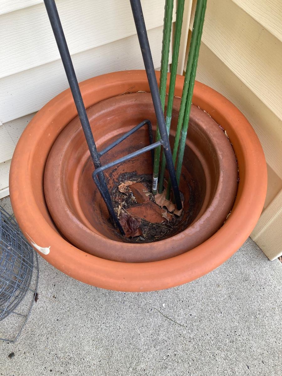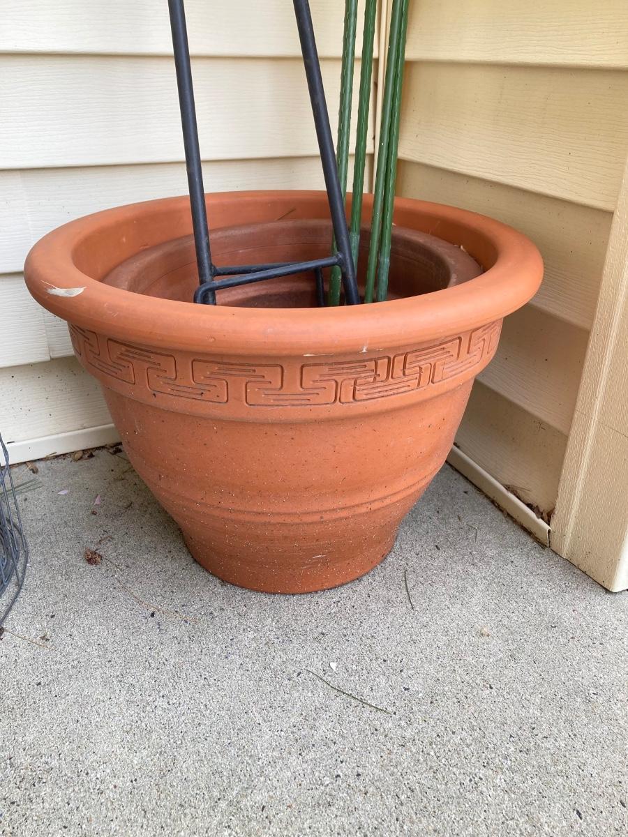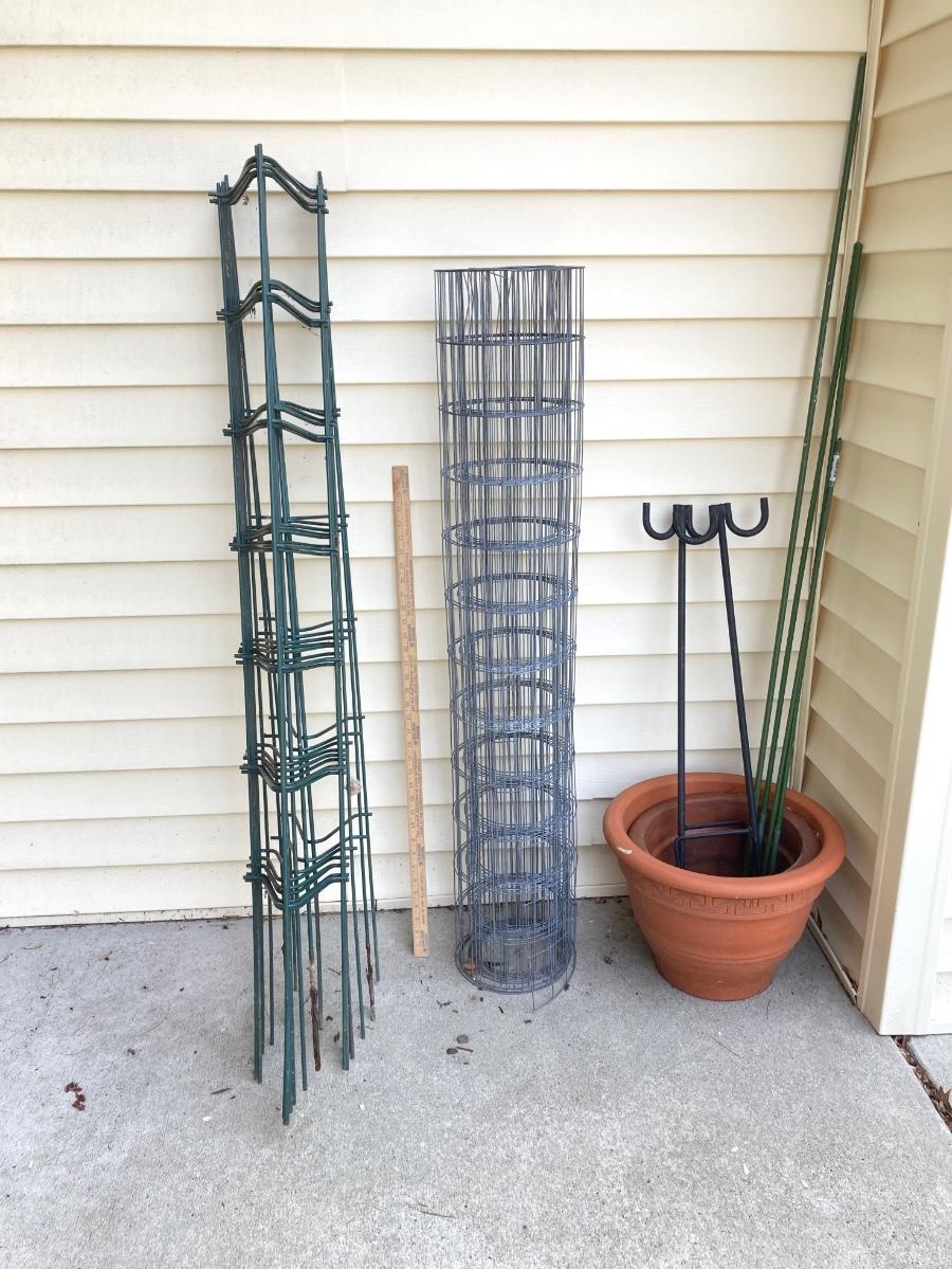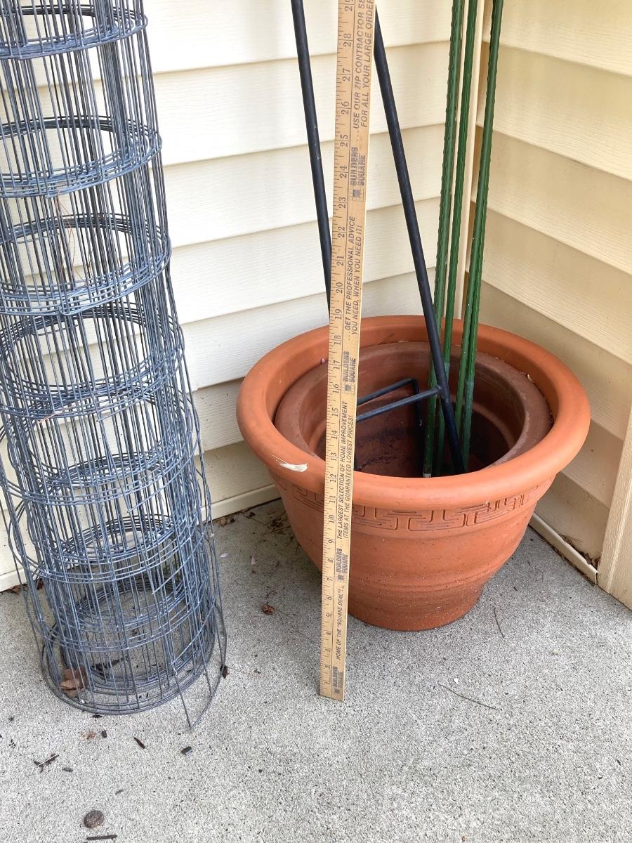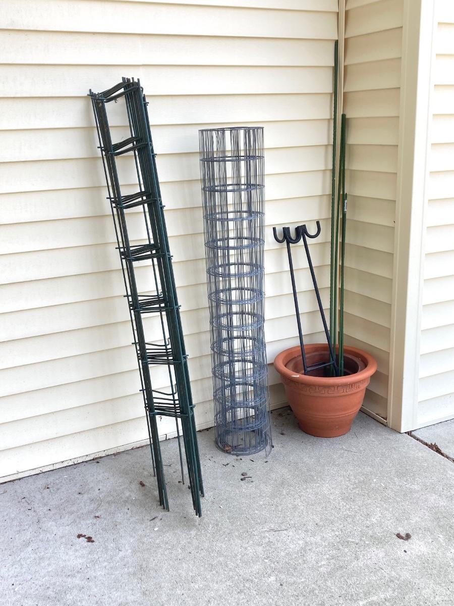LOT 78G: Lawn and Garden - Terra Cotta Planters, Nine Green Metal Trellis Stakes, Fencing and More