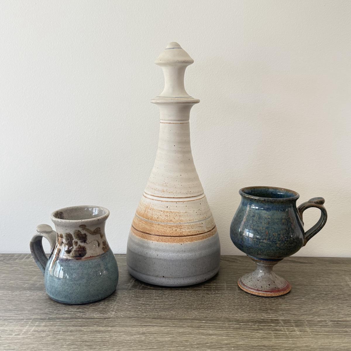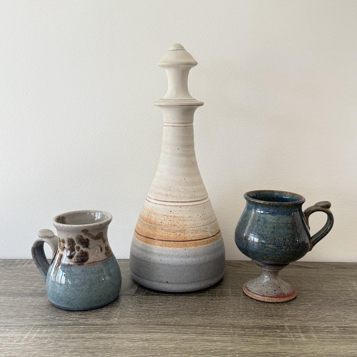 LOT 82K: Suvely Pottery Stoneware Decanter, Signed Pottery Mug & More