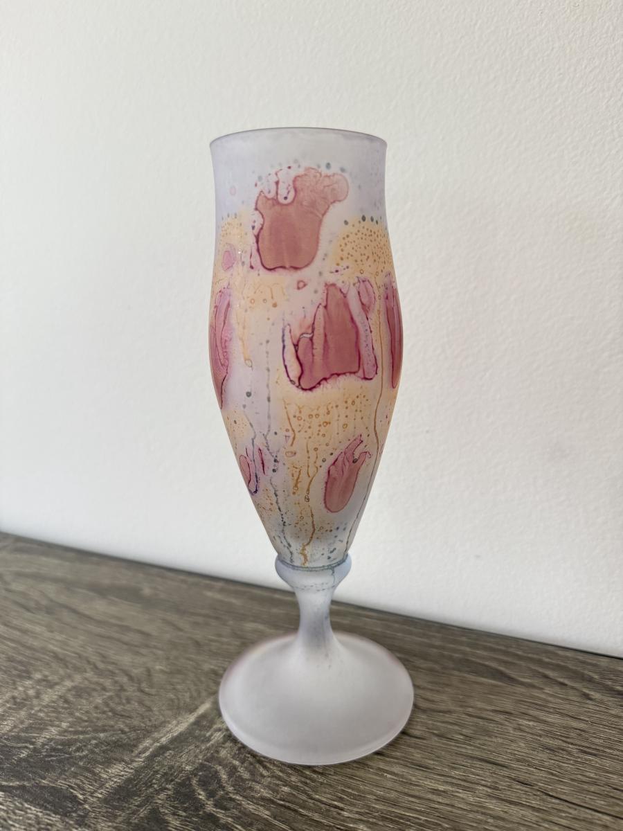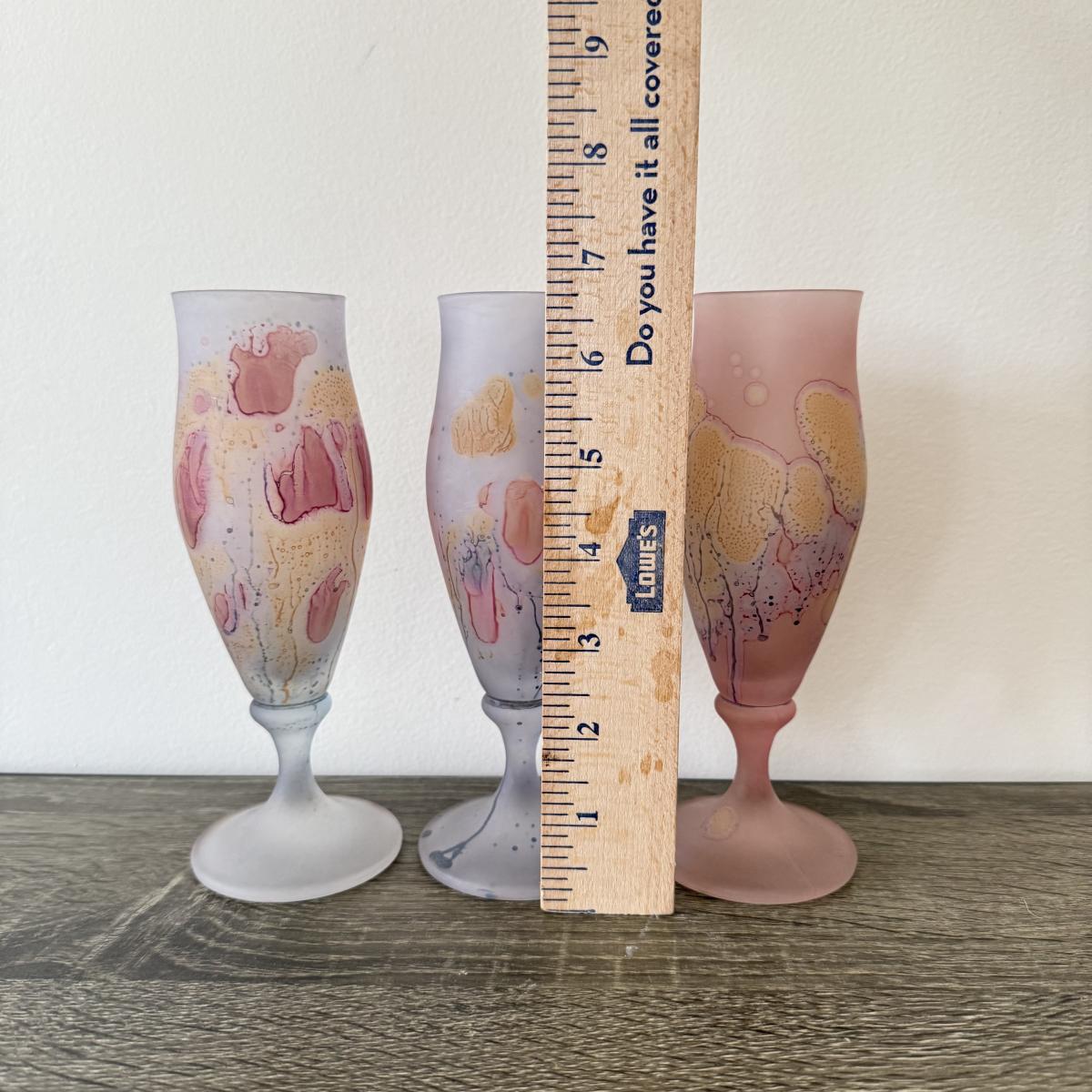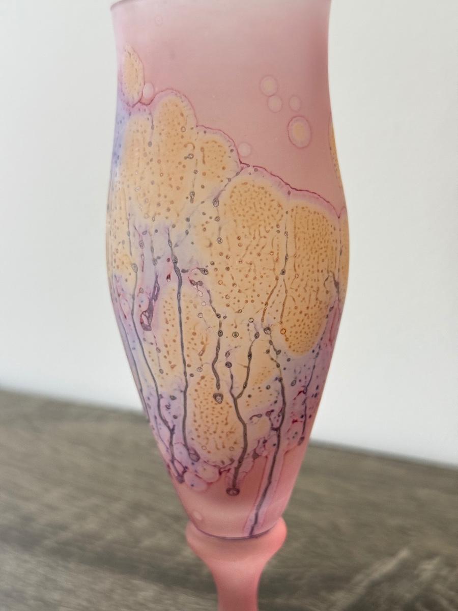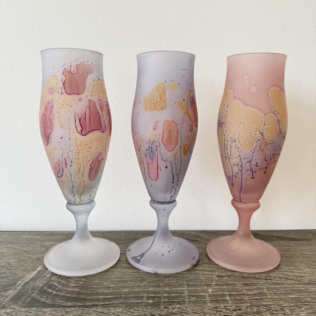 LOT 90K: Beautiful Frosted Glass Flutes w/ Interesting Drip Design