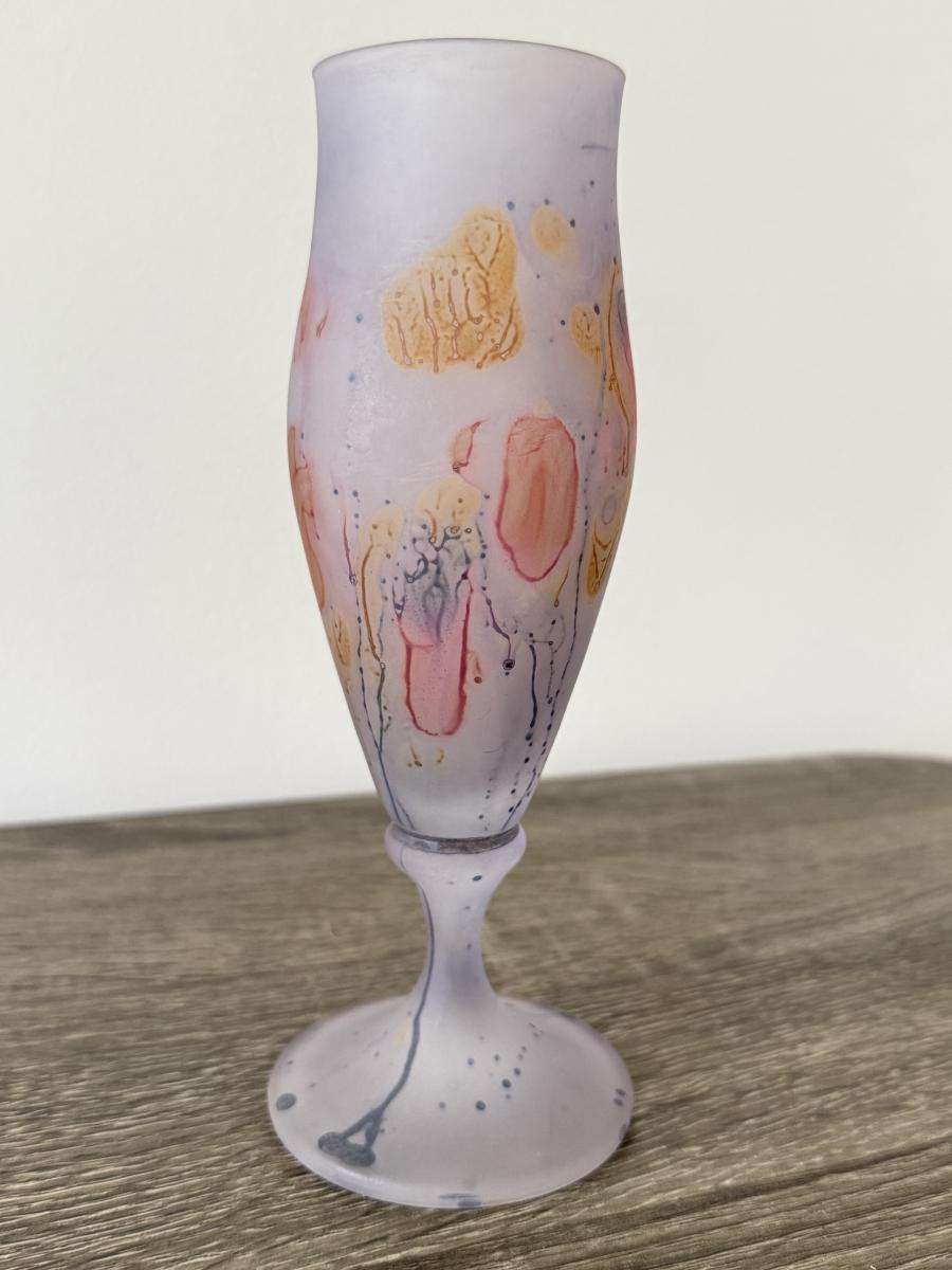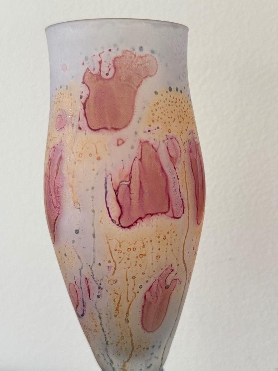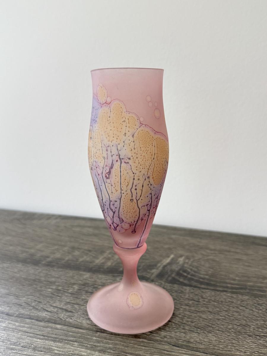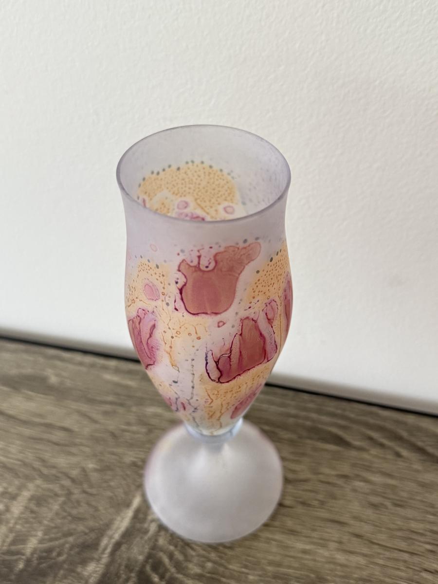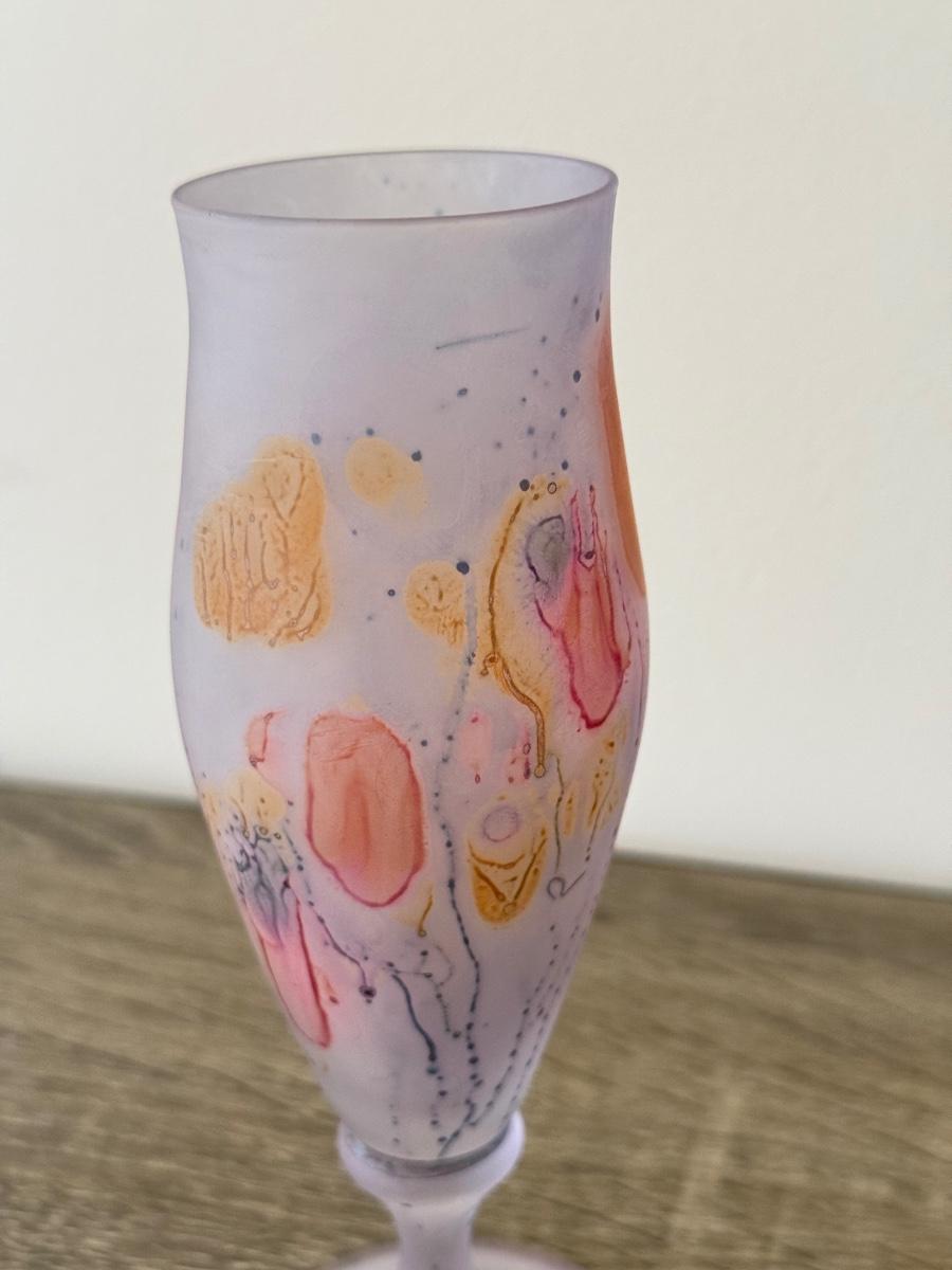 LOT 90K: Beautiful Frosted Glass Flutes w/ Interesting Drip Design