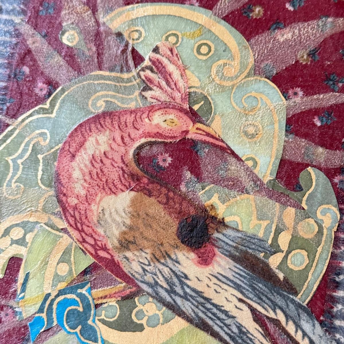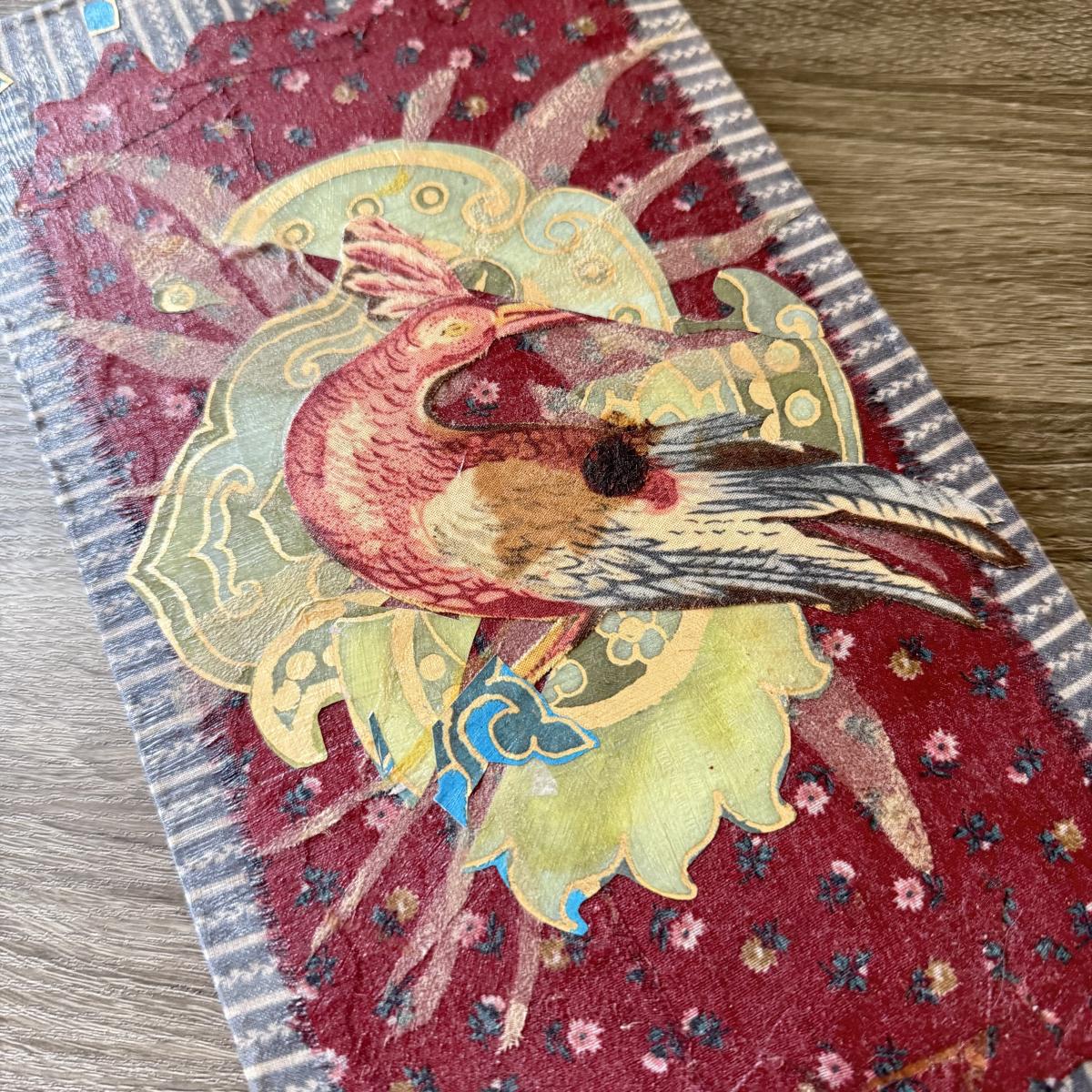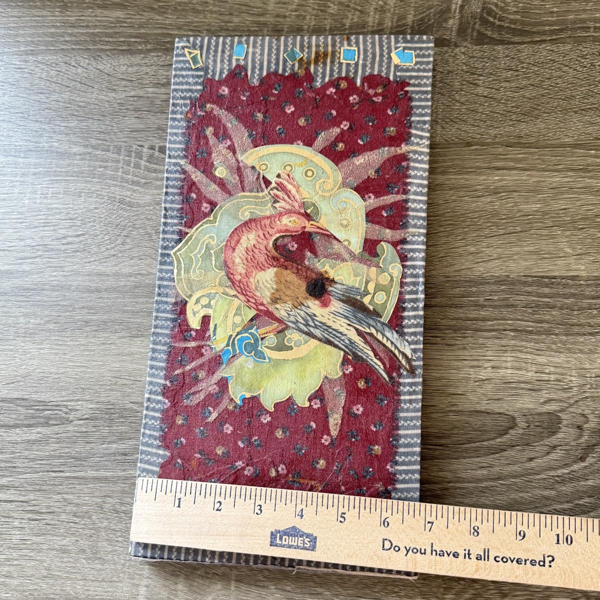 LOT 97K: Painted Stone Bird Oval & Mixed Media Bird Artwork