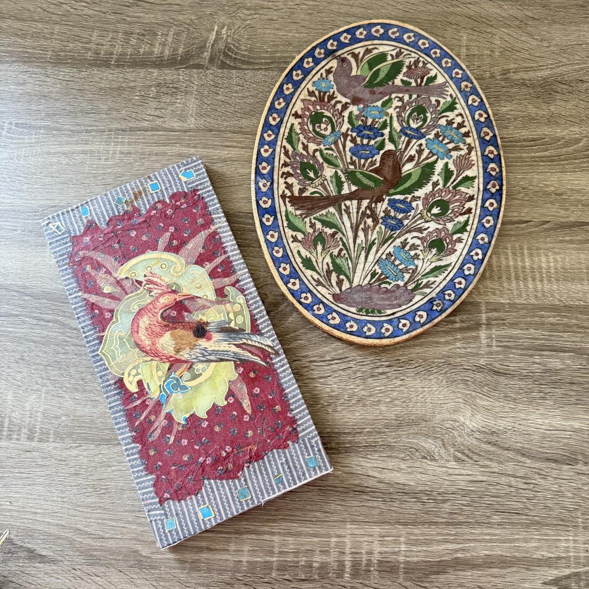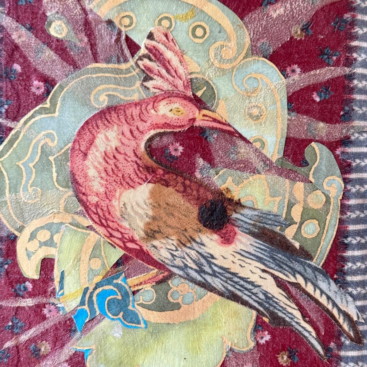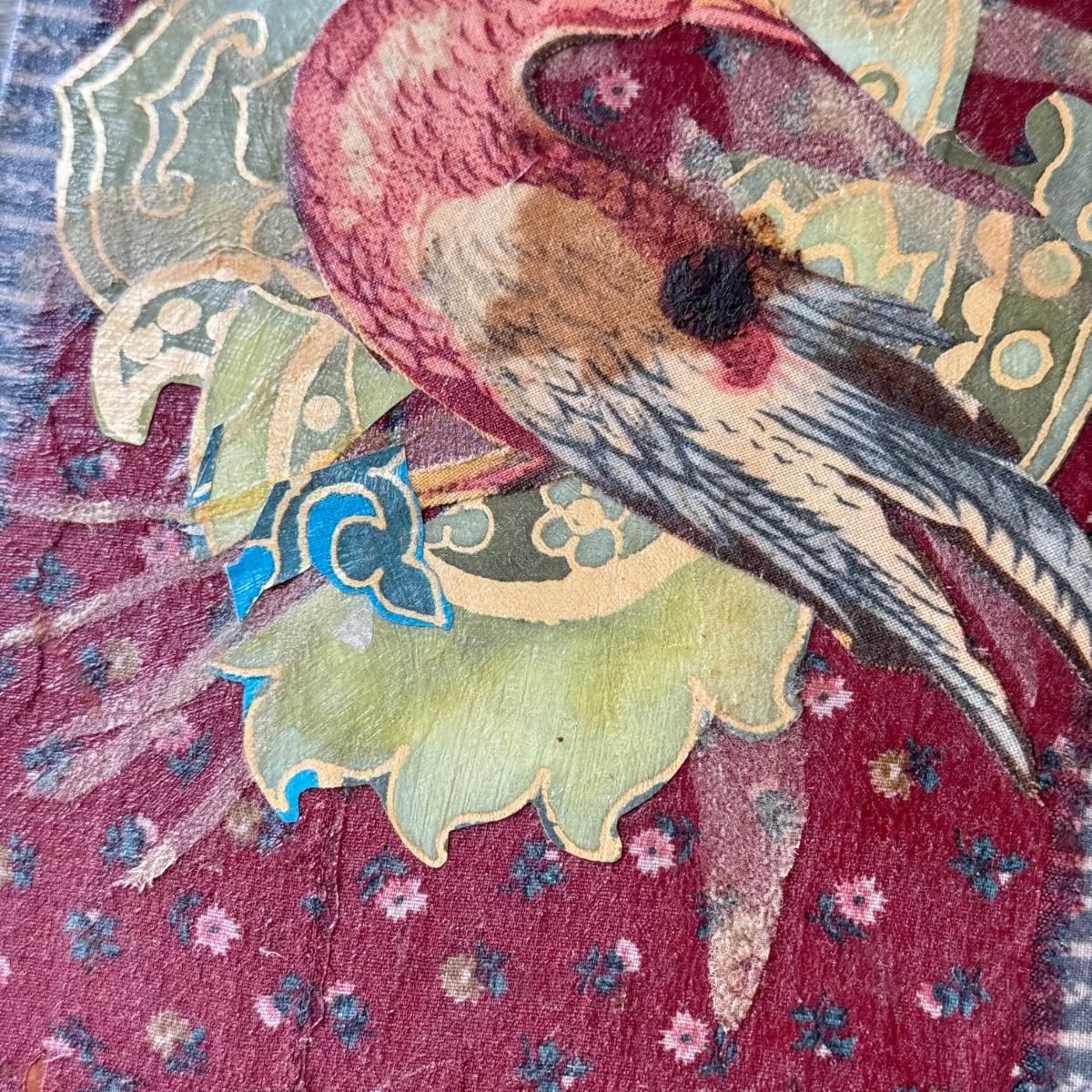 LOT 97K: Painted Stone Bird Oval & Mixed Media Bird Artwork