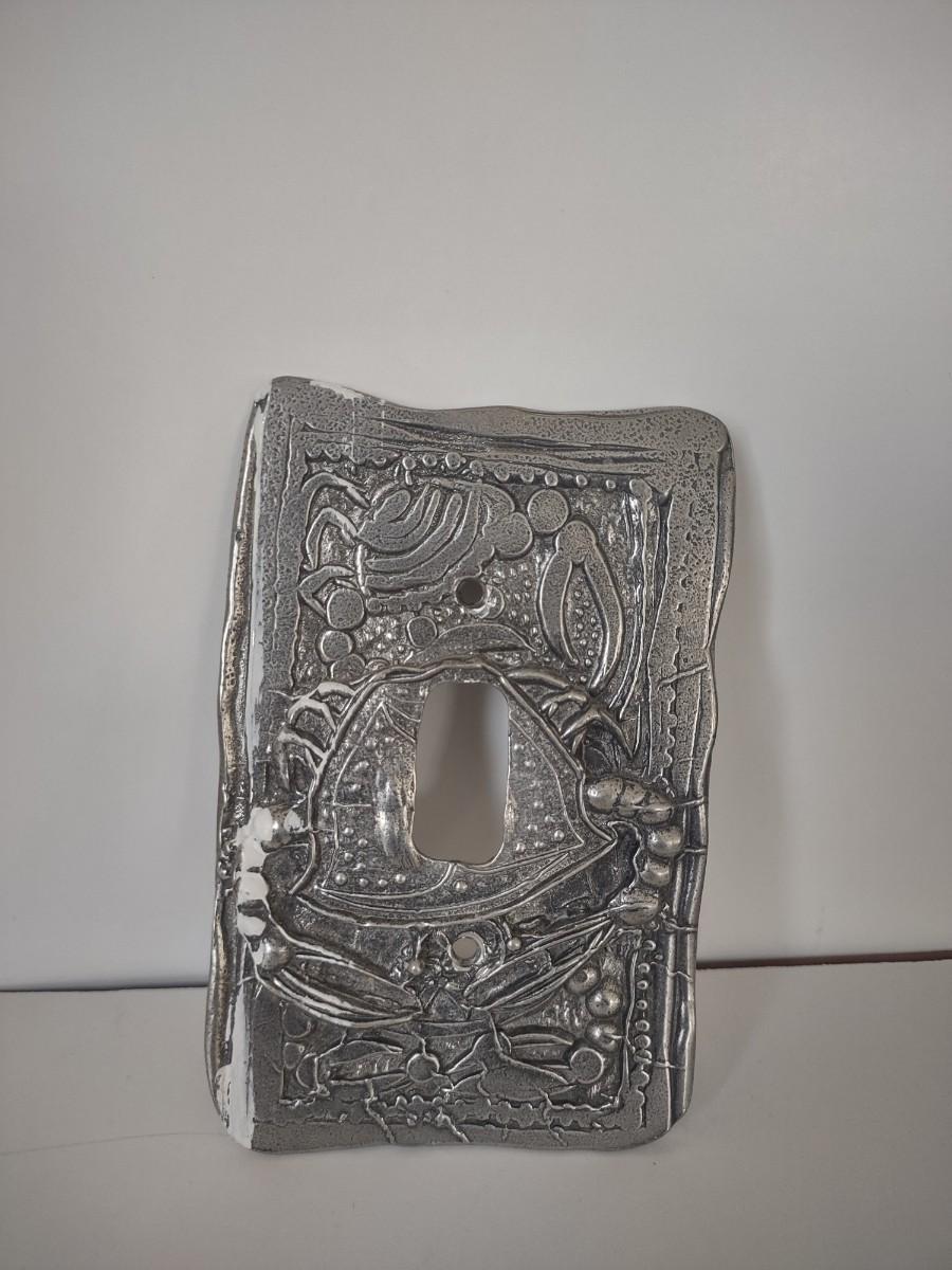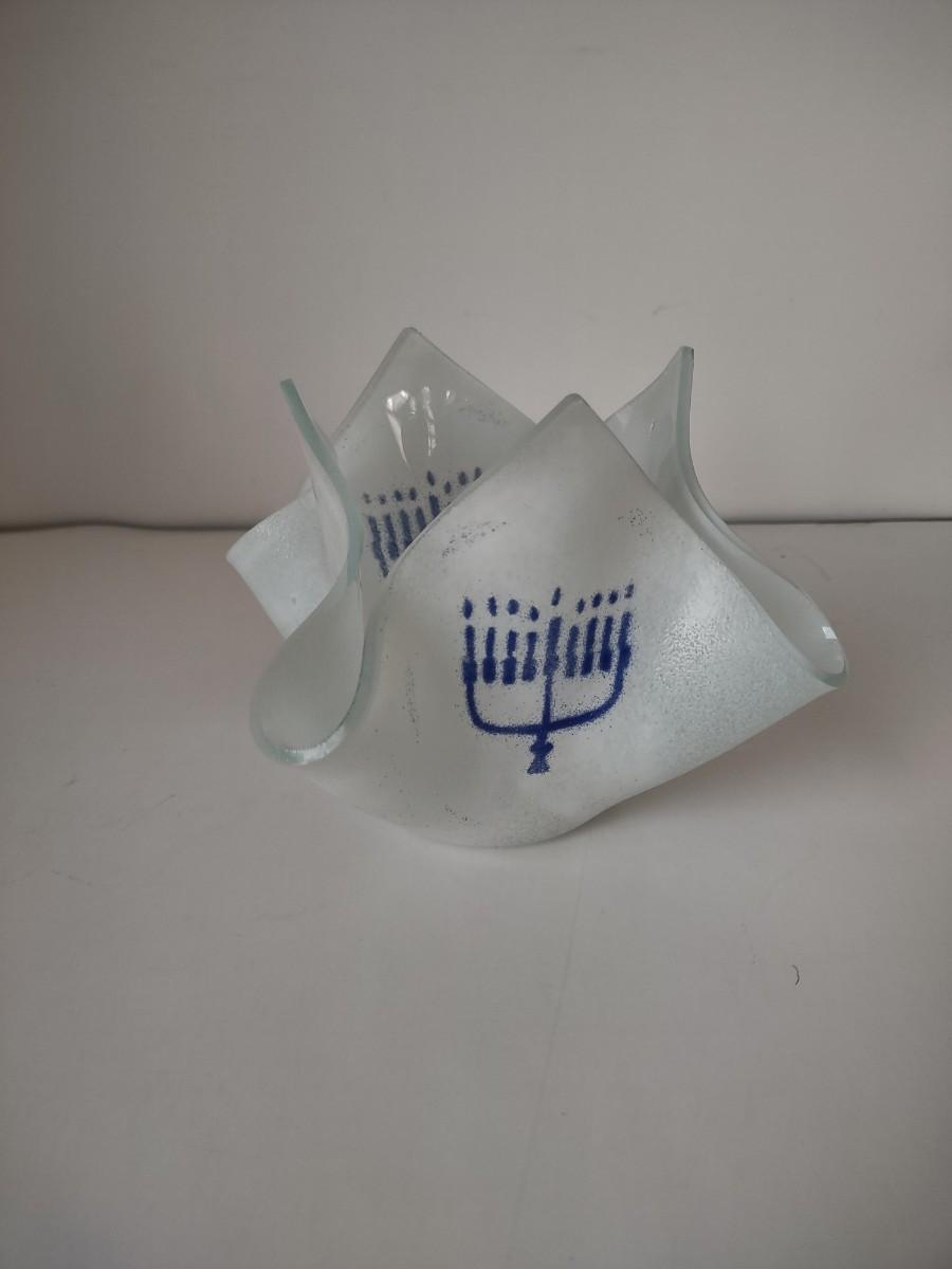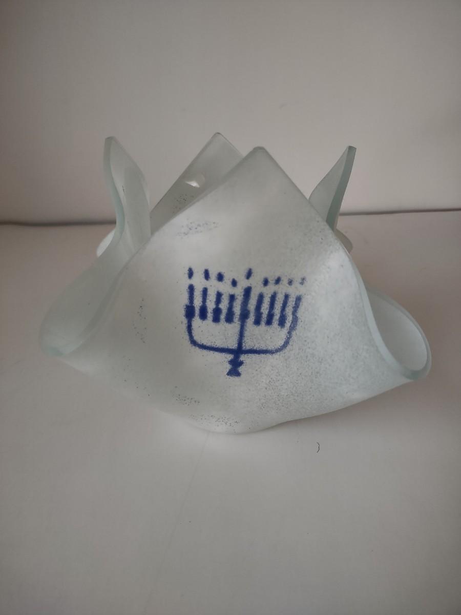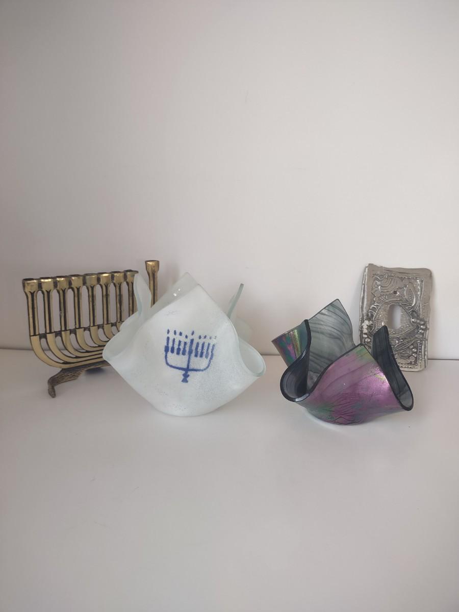 LOT 109K: Metal Menorah, Metal Lightswitch Faceplate and Vintage Tony Serviente Handkerchief Vases