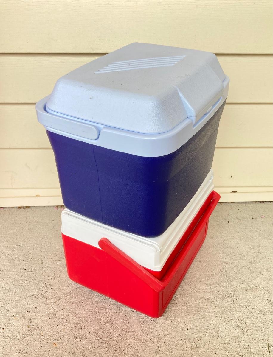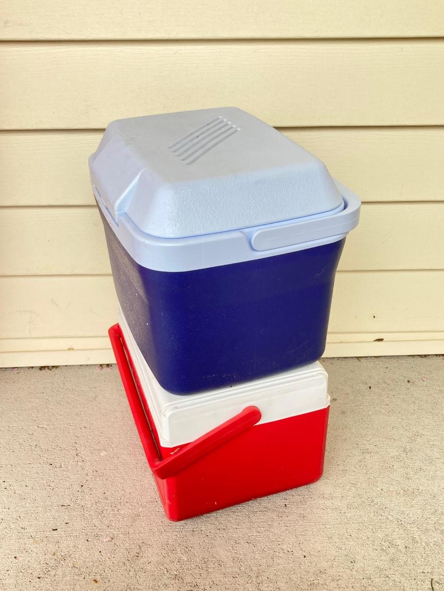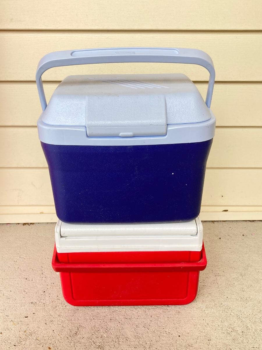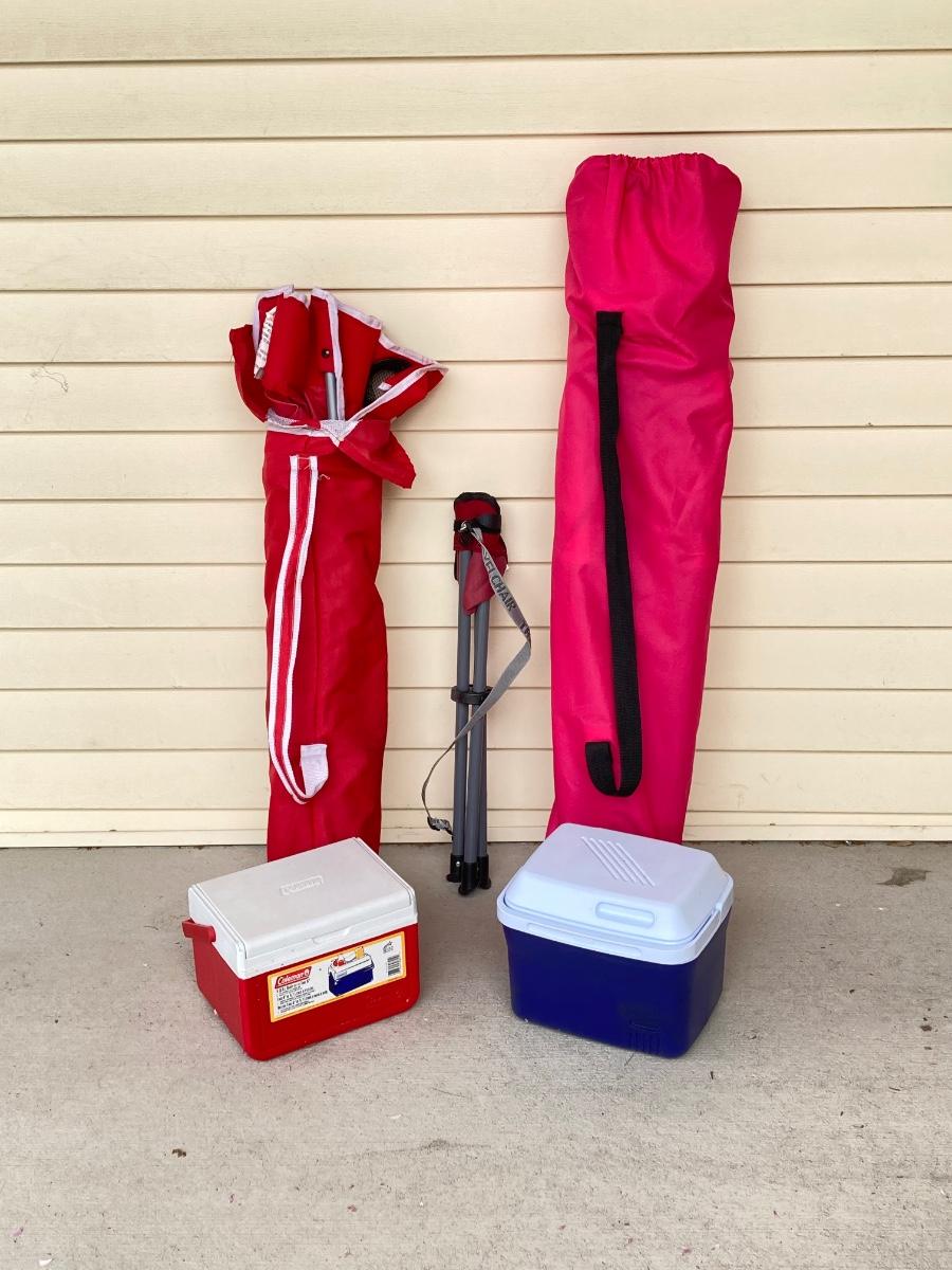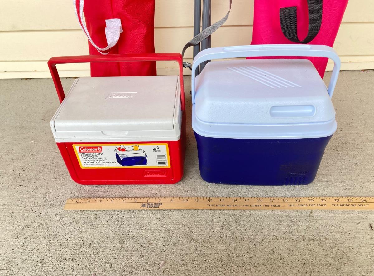 LOT 123G: Outdoor Portable Chairs with Pair of Small Coolers (Coleman and Rubbermaid)
