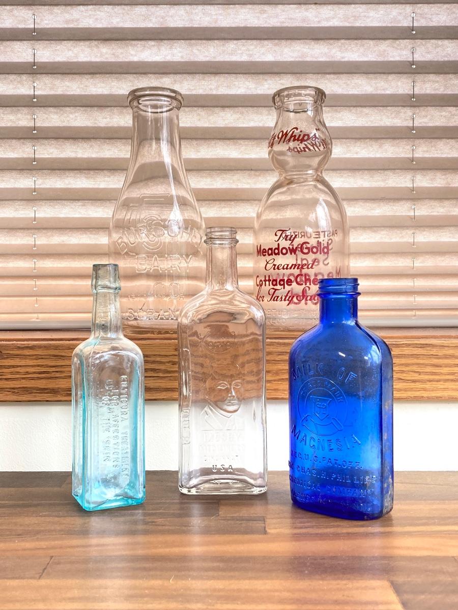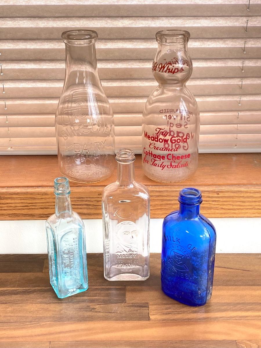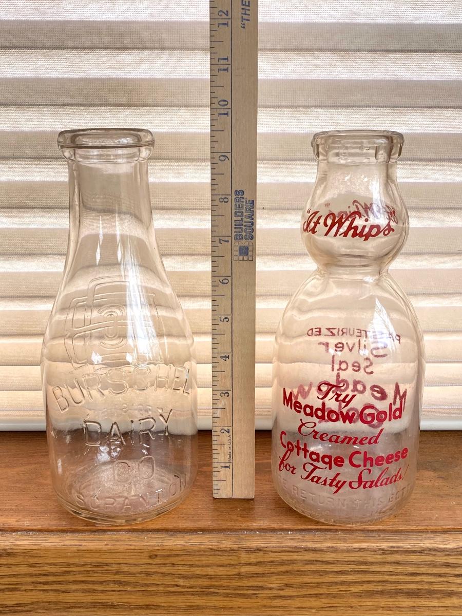 LOT 139X: Collection of Vintage Glass Bottles - Burschel Dairy Co Scranton, PA, Meadow Gold Cottage Cheese, Milk of Magnesia and More