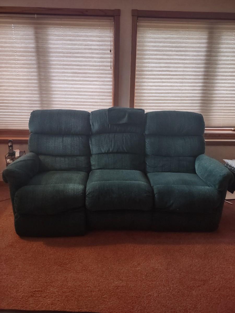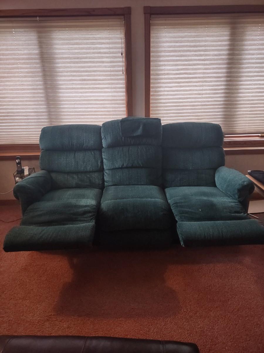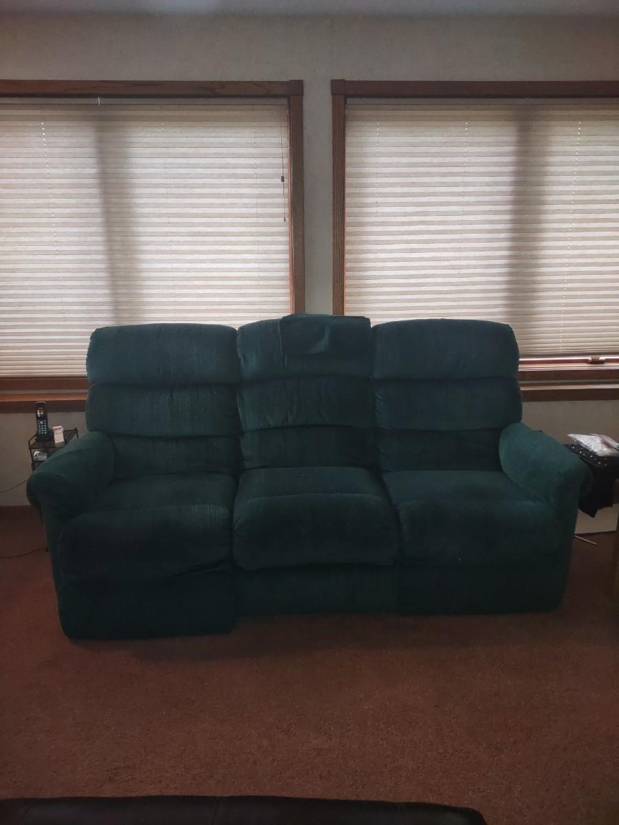 LOT 173B: Green Lazboy Couch with Reclining Sections on Each End