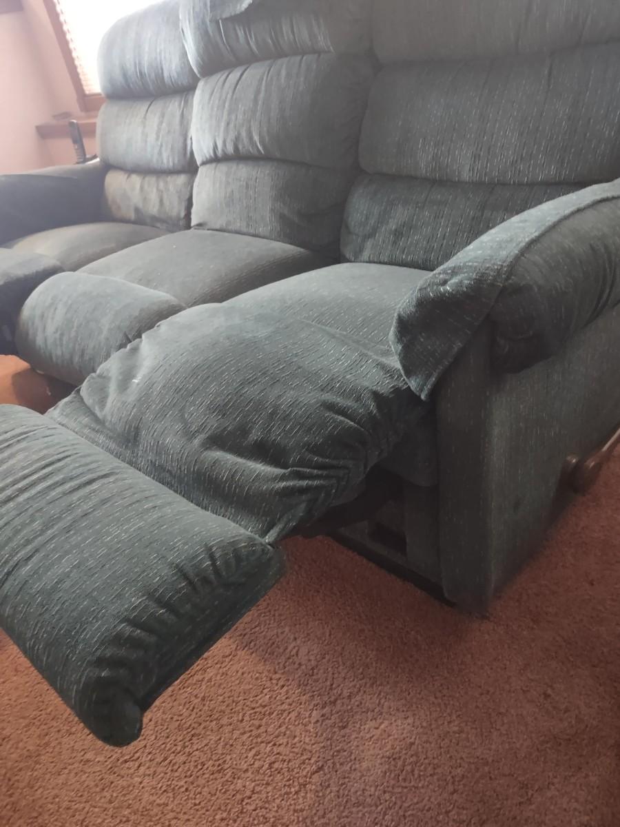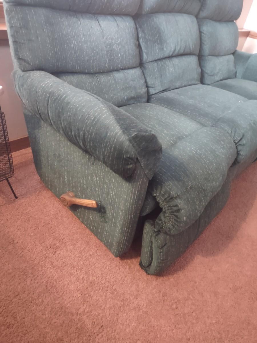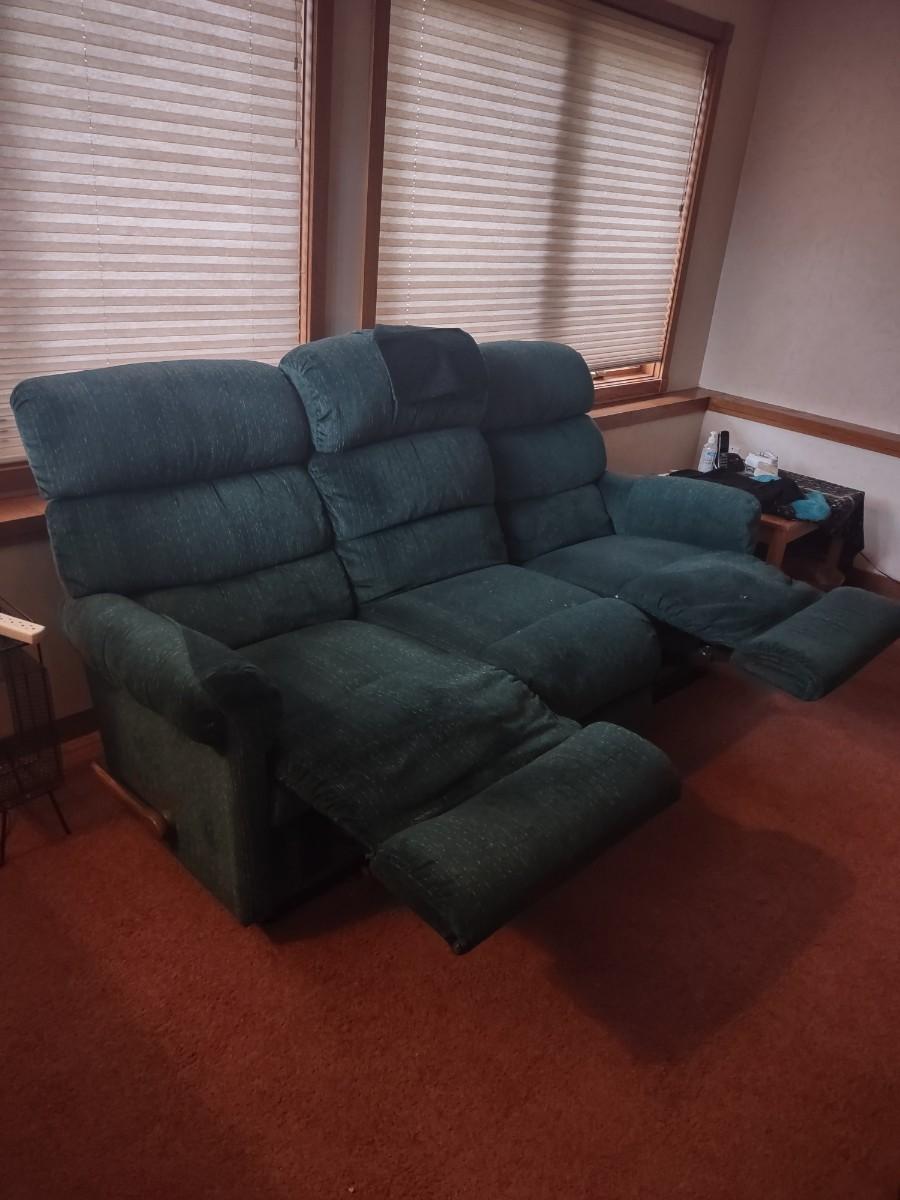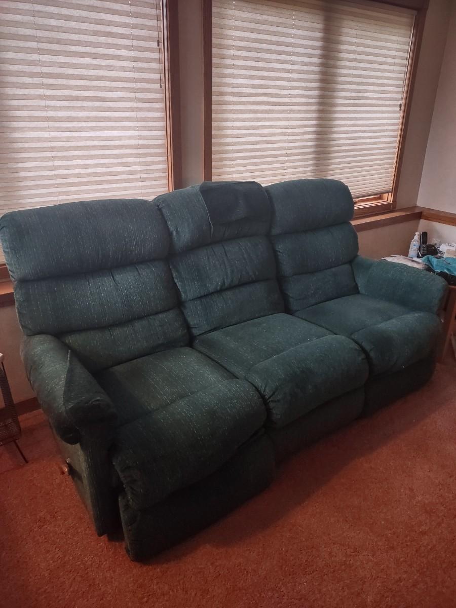 LOT 173B: Green Lazboy Couch with Reclining Sections on Each End