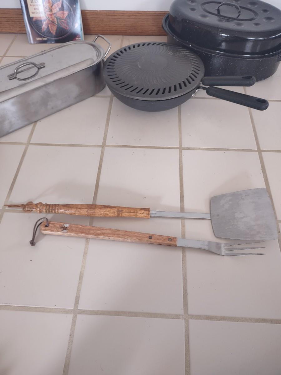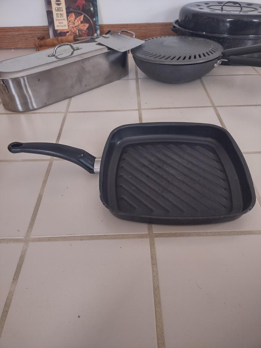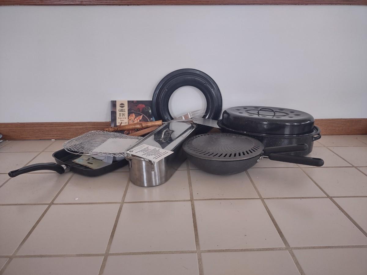 LOT 179L: Assorted Cooking Tools (Disposable Grill Topper, Omelet Pan, Grilling Cookbook, Grill Tools, Stove Top Grill, Turkey Pot)