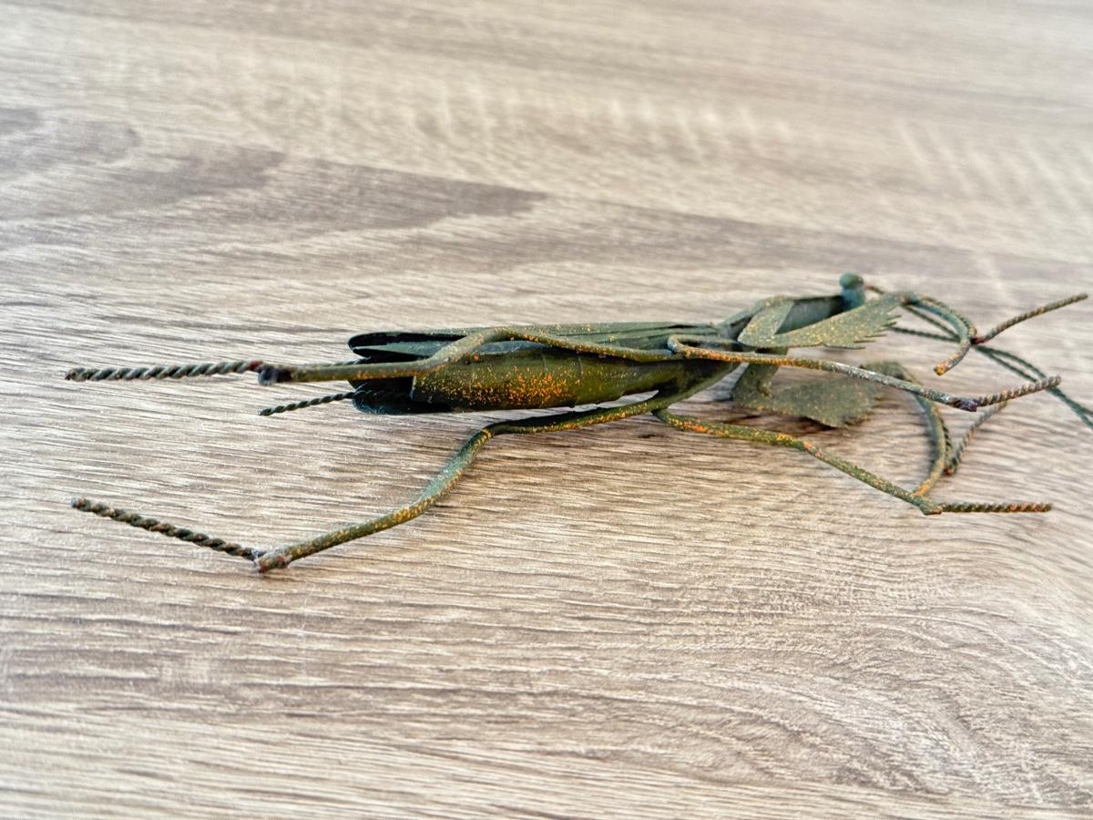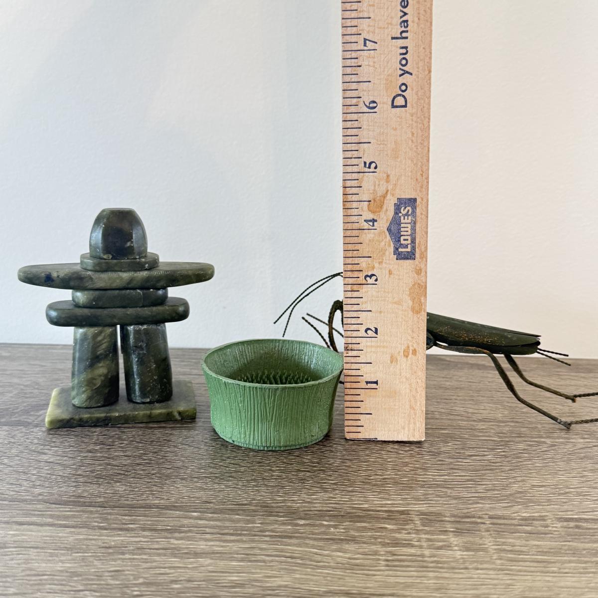 LOT 181K: Lucky Metal Grasshopper, Metal Flower Frog & Stone Sculpture