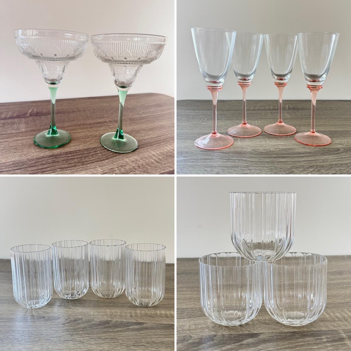 LOT 183K: Margarita Glasses, Pink Stem Wine Glasses & More Drinkware