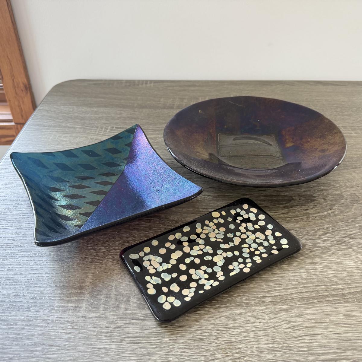 LOT 186X: Gorgeous Signed Art Glass Dishes & Iridescent Bowl