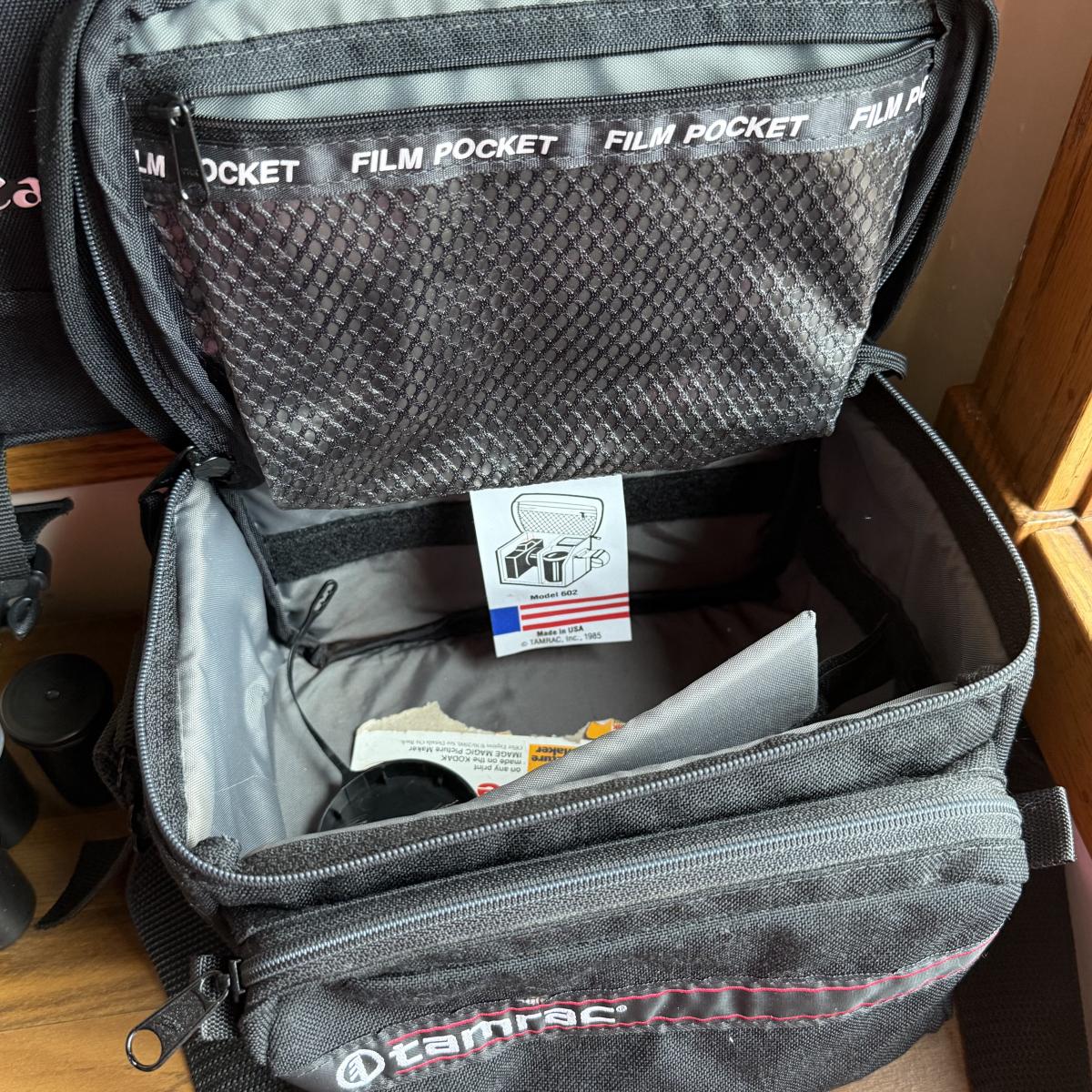 LOT 198X: Ricoh Shot Master Zoom 105 Camera, Nikon National Geographic Society Binoculars, Canon Camera Bag, Unused 35mm Film & More