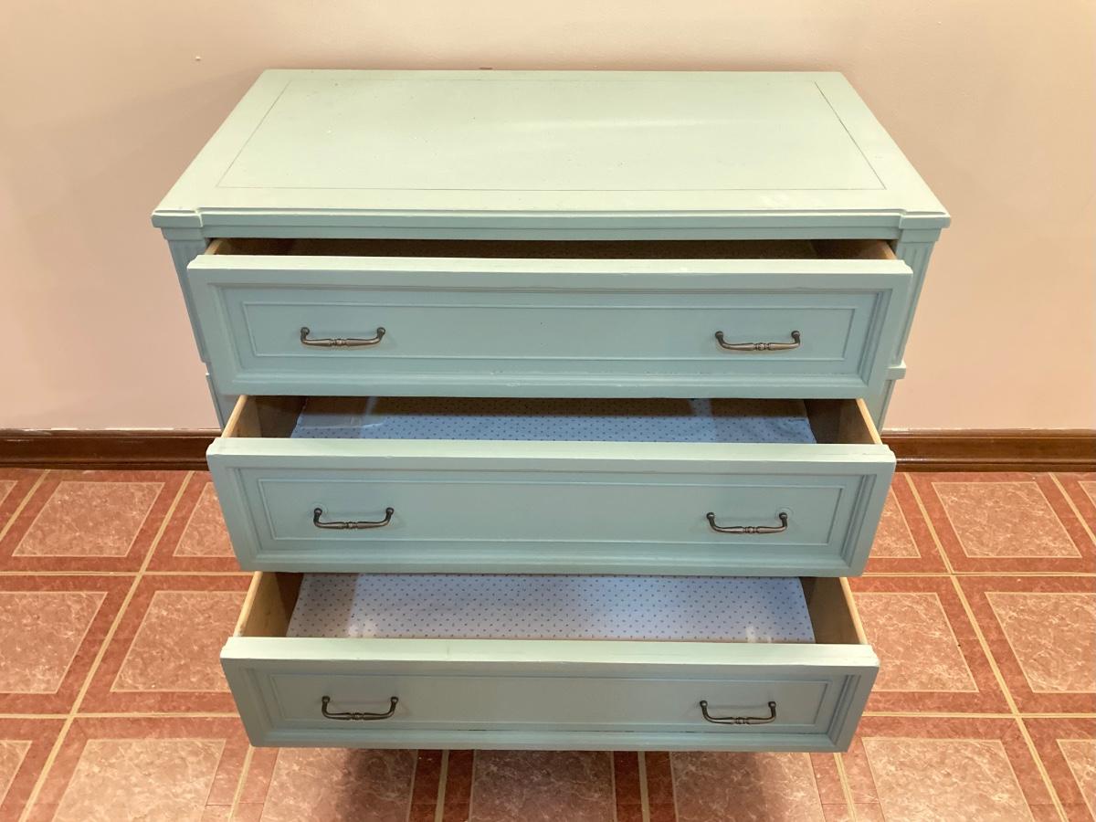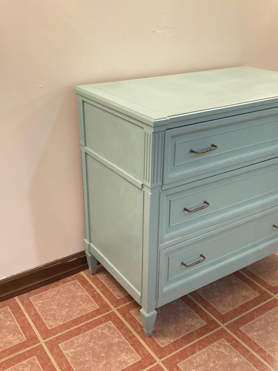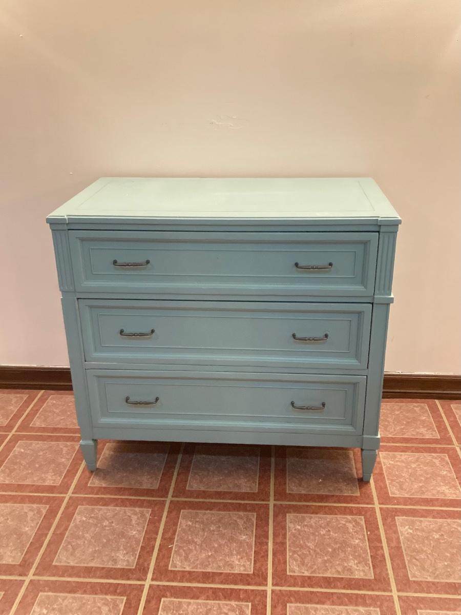 LOT 202B: Painted Wood 3 Drawer Dresser and Cube Style Shelf