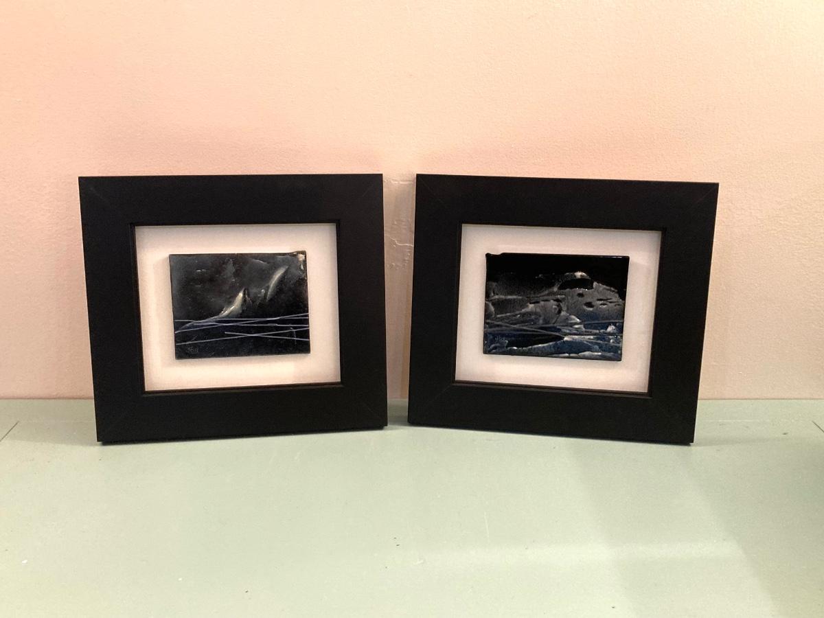 LOT 204B: Pair of Beautiful Abstract Framed Wall Hangings - "Black Seascapes 1 and 2" by dbg