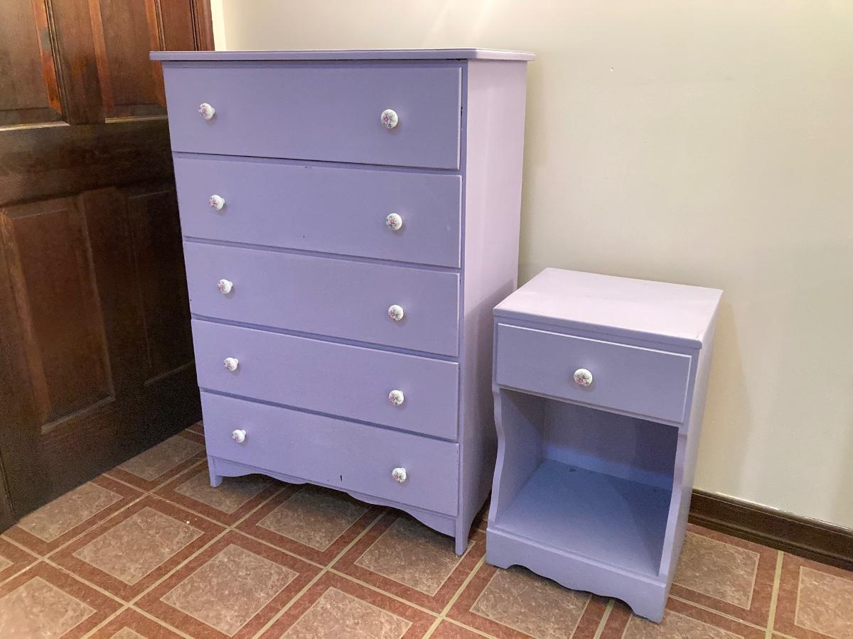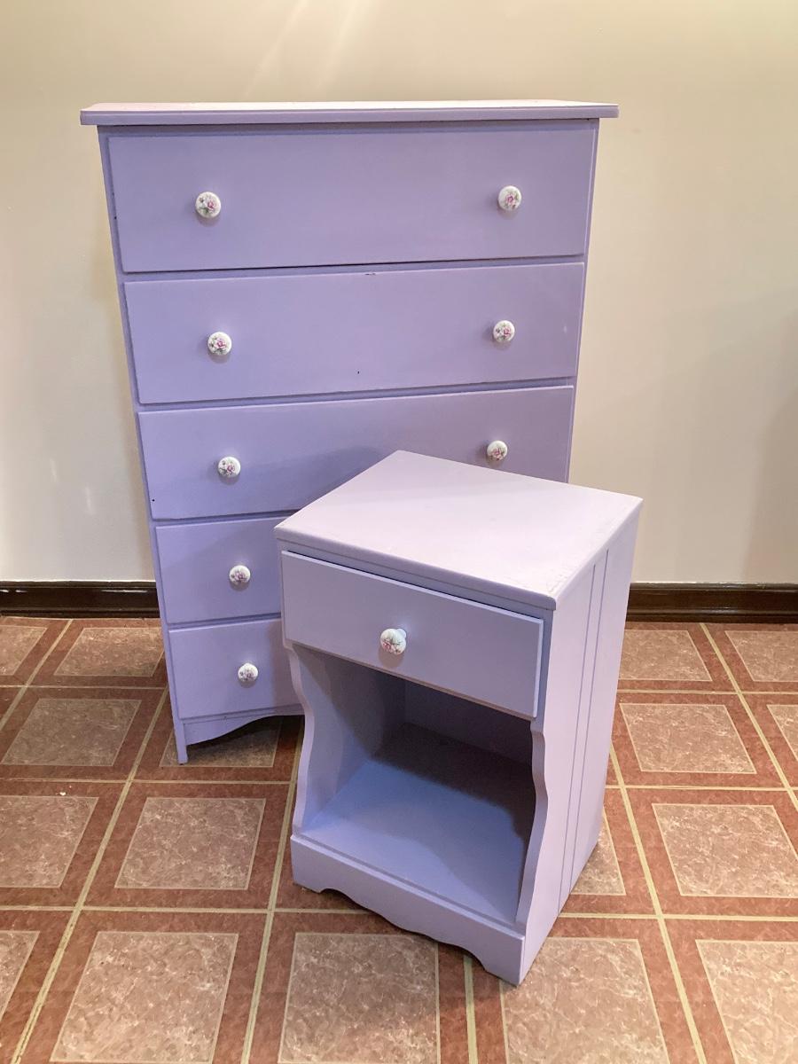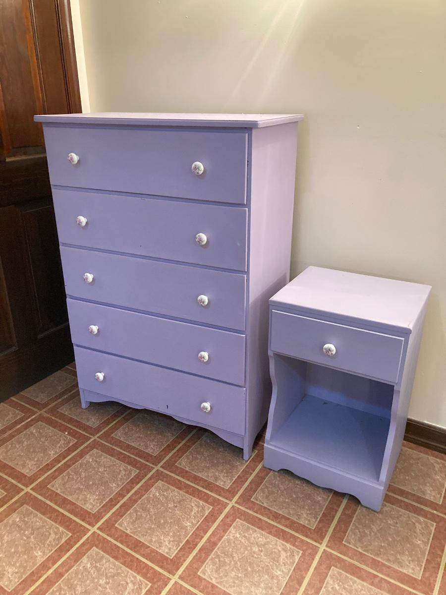 LOT 208B: Painted Wood 5 Drawer Dresser and Night Stand