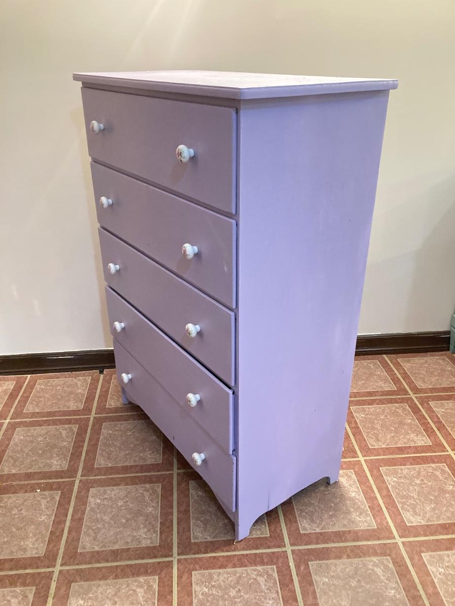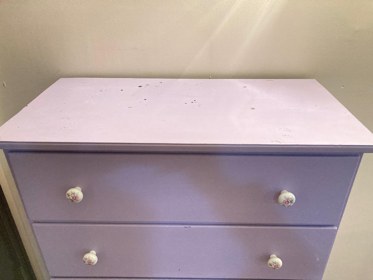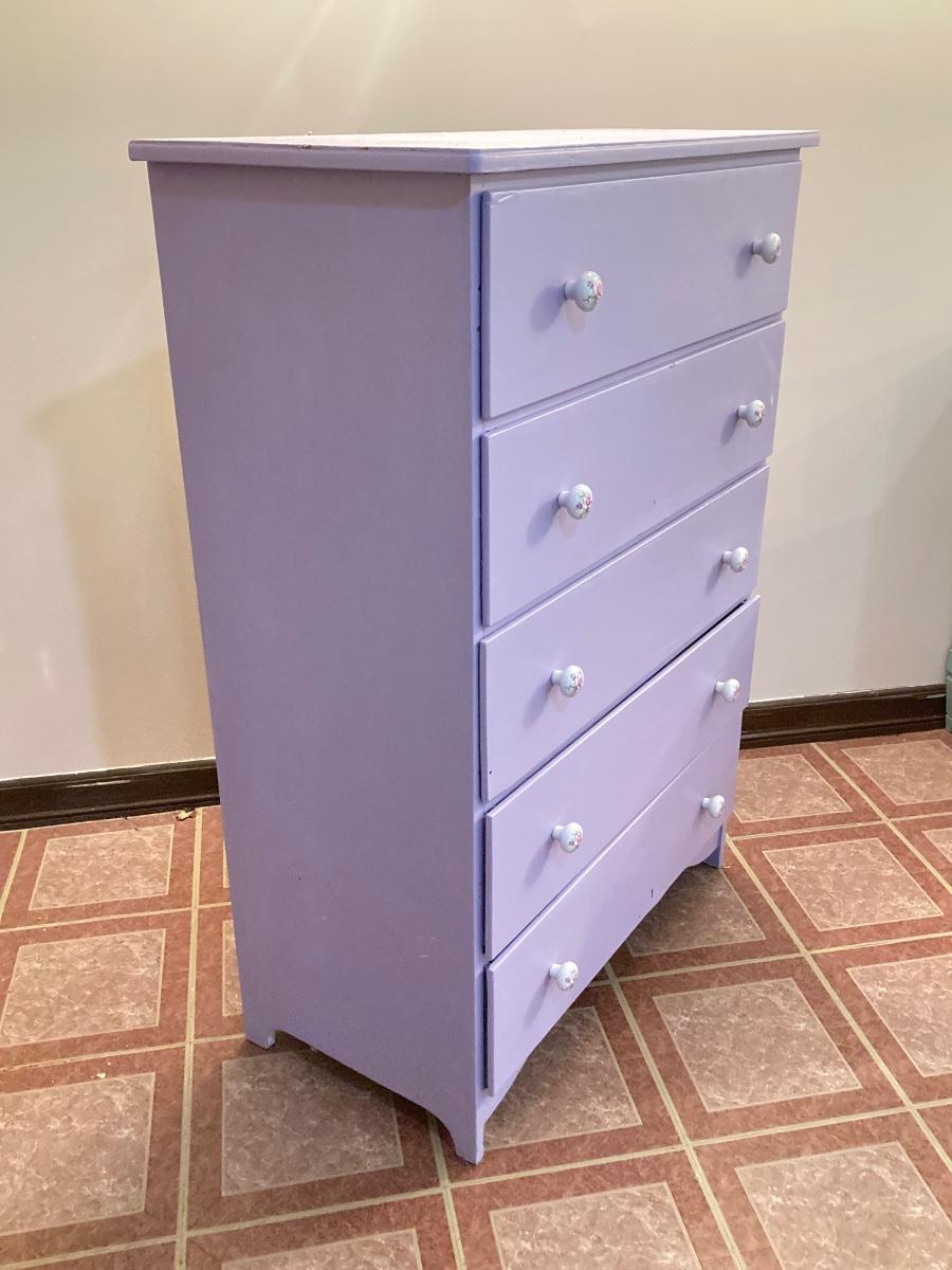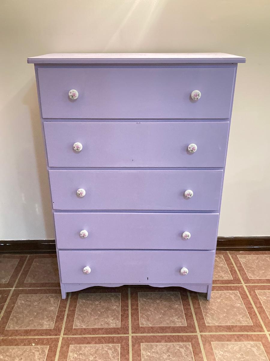 LOT 208B: Painted Wood 5 Drawer Dresser and Night Stand