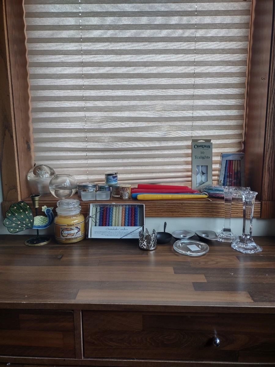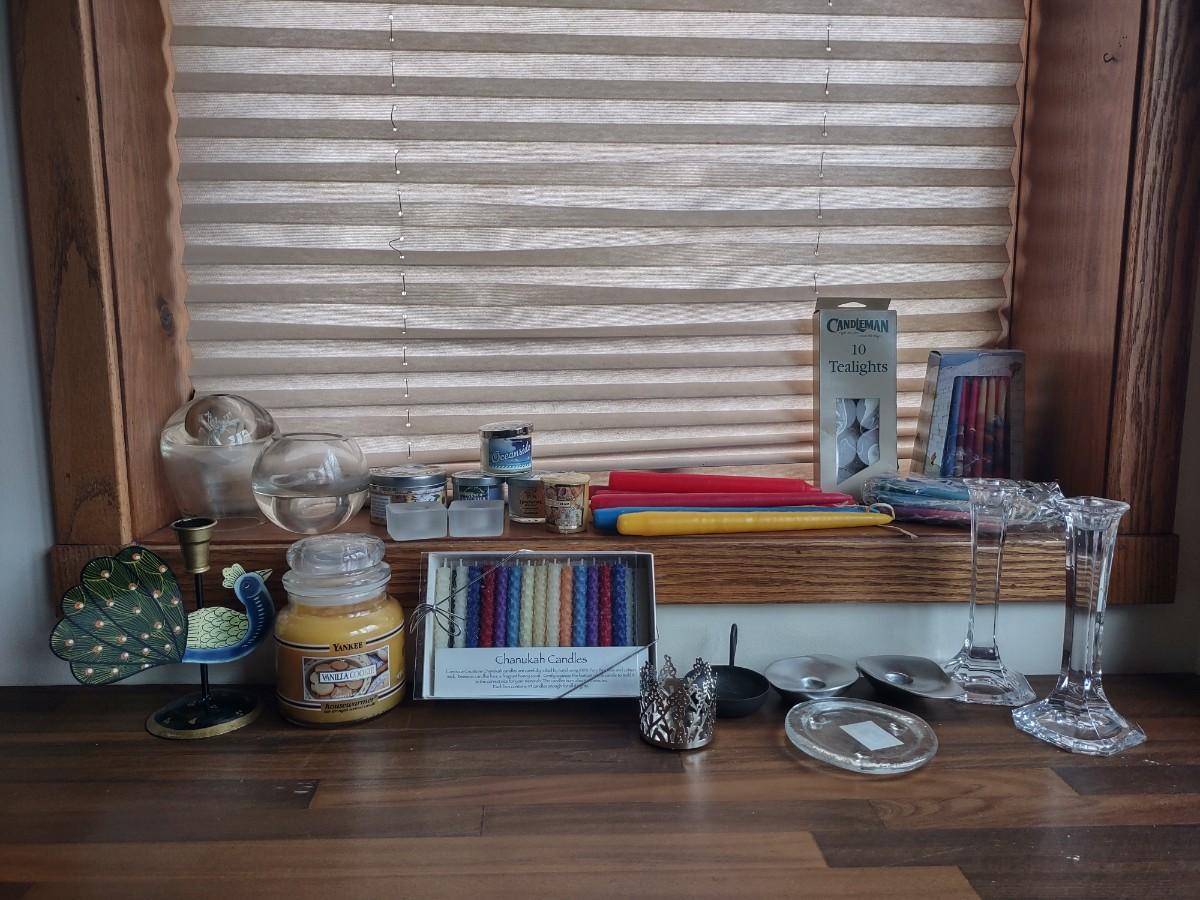 LOT 238: Assorted Candles and Candle Holders