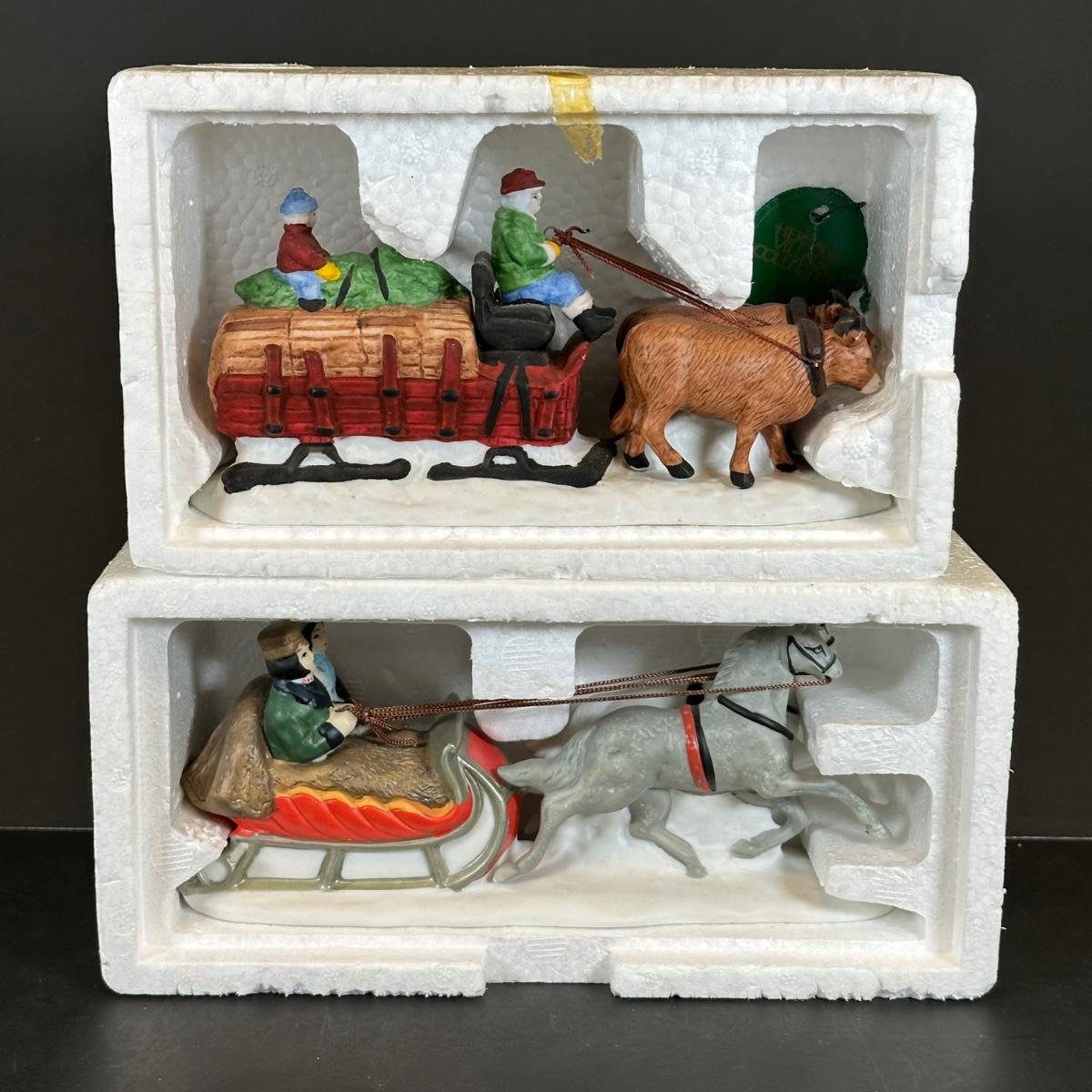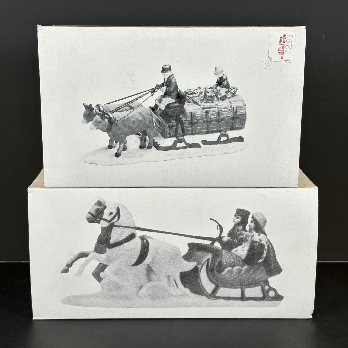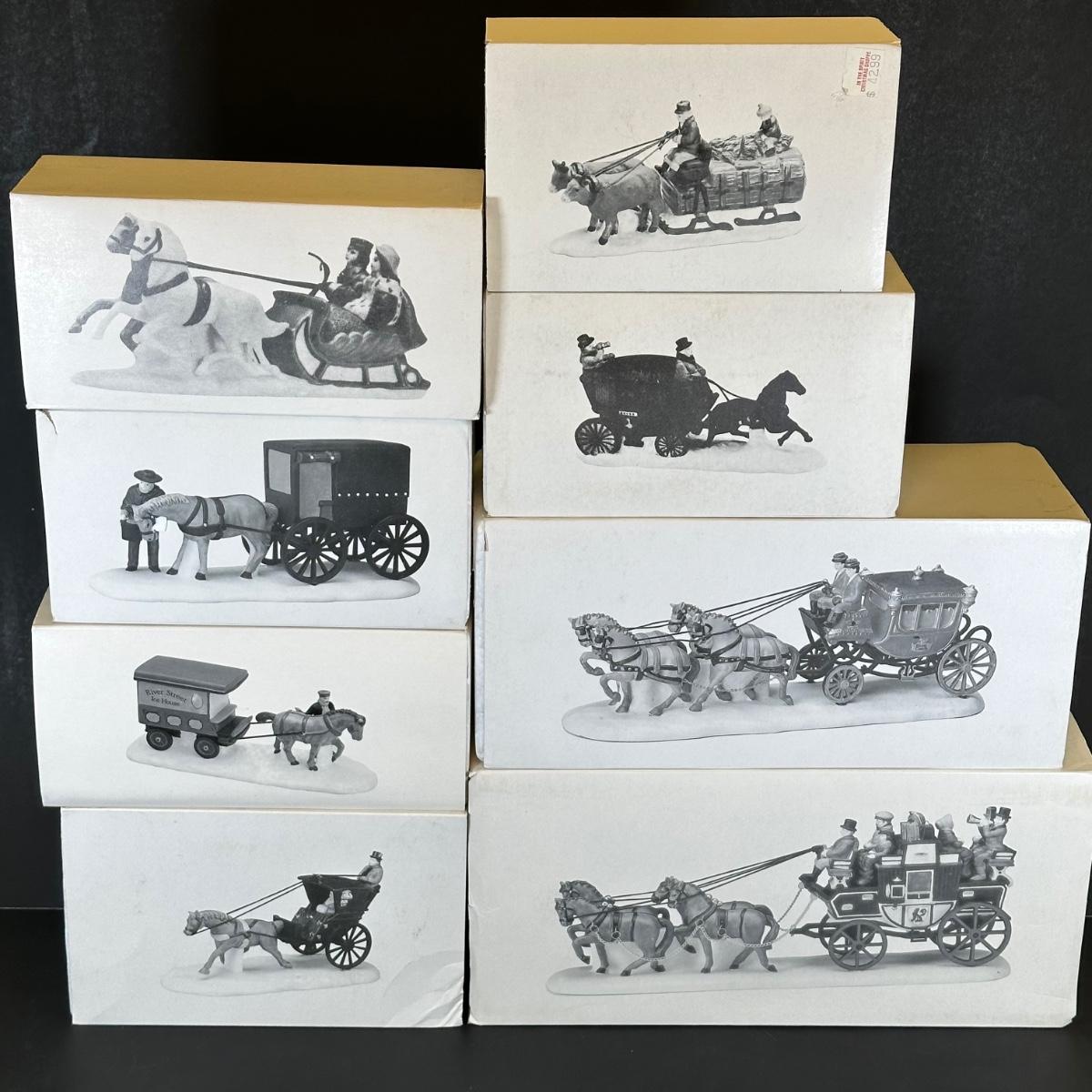 LOT 8K: Department 56 Heritage Village Collection - Amish Buggy, OX Sled, Holiday Coach & More