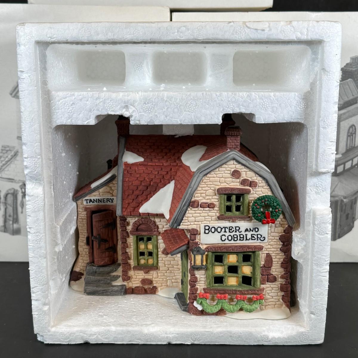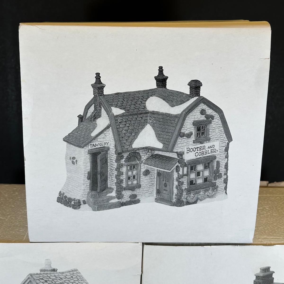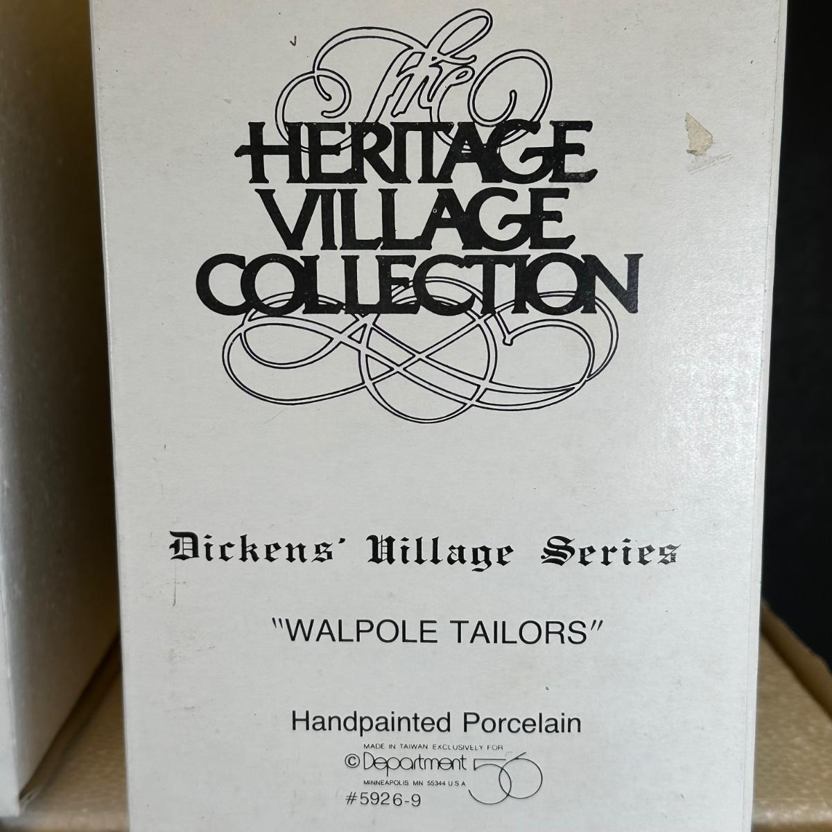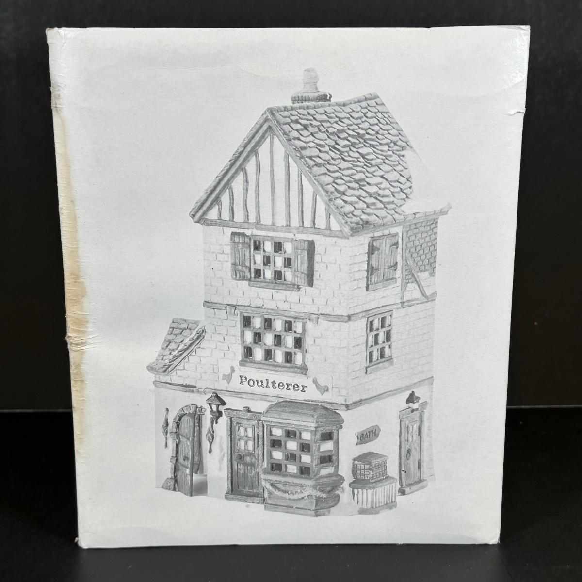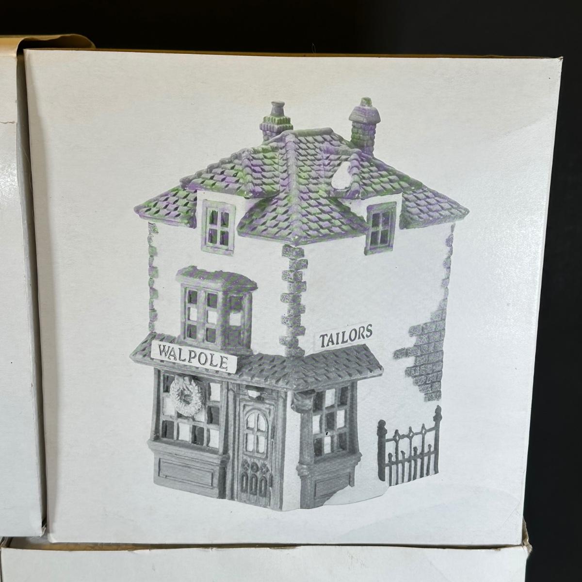 LOT 11K: Department 56 Heritage Village Collection Dickens Village Series - Theater Royal, Poulterer, Walpole Tailors & T Wells Fruit & Spice Shop