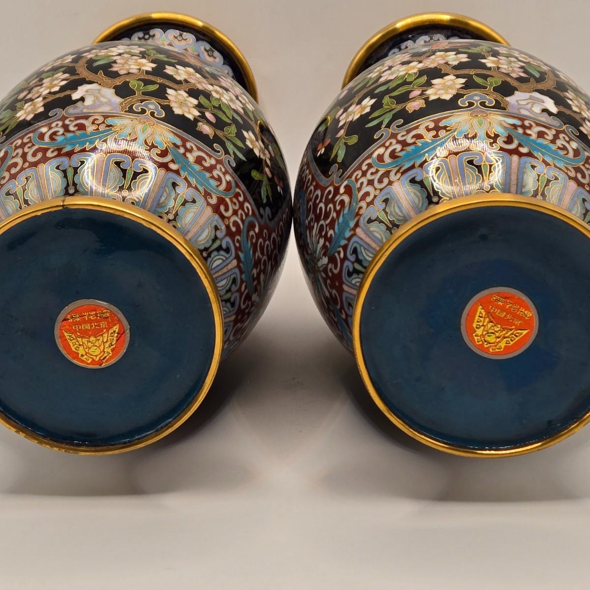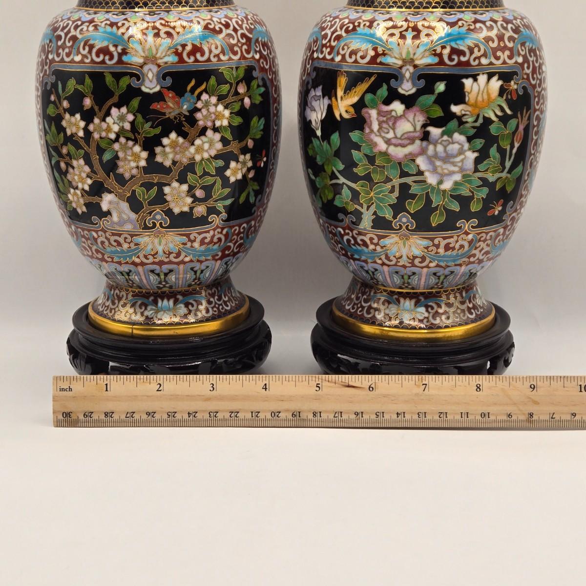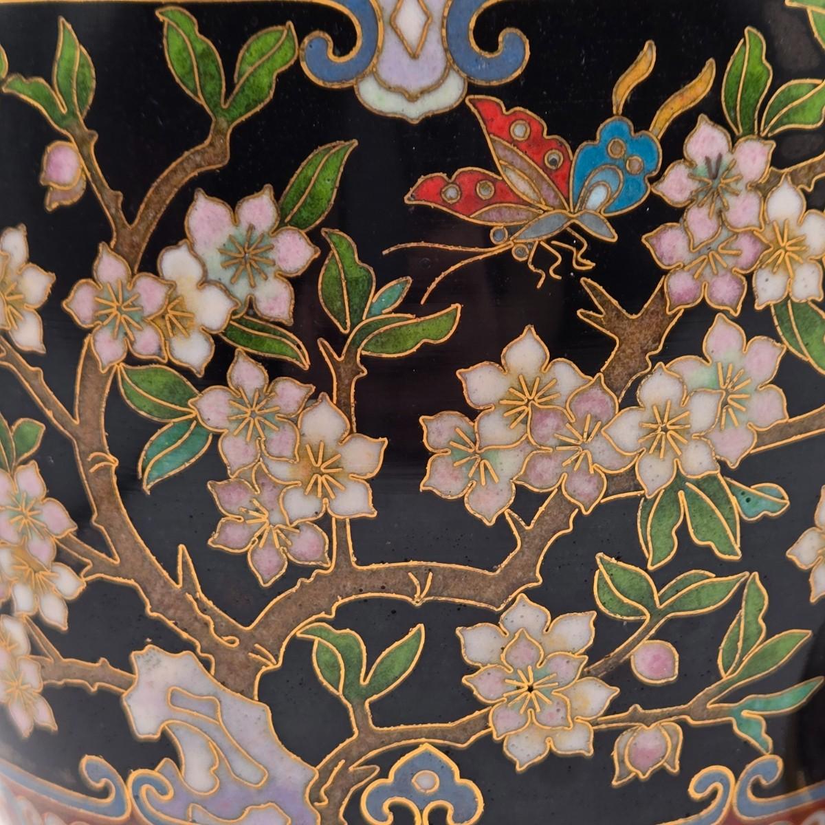 LOT 84B: Two Vintage Hand Crafted Brass Enamel Floral Design Flower Pots