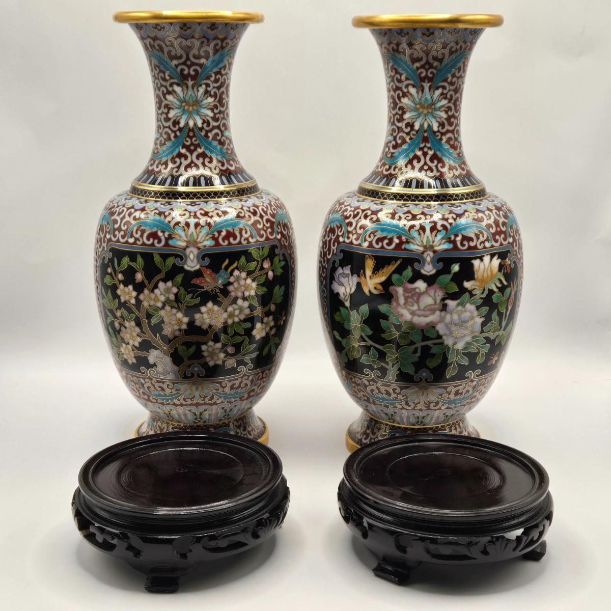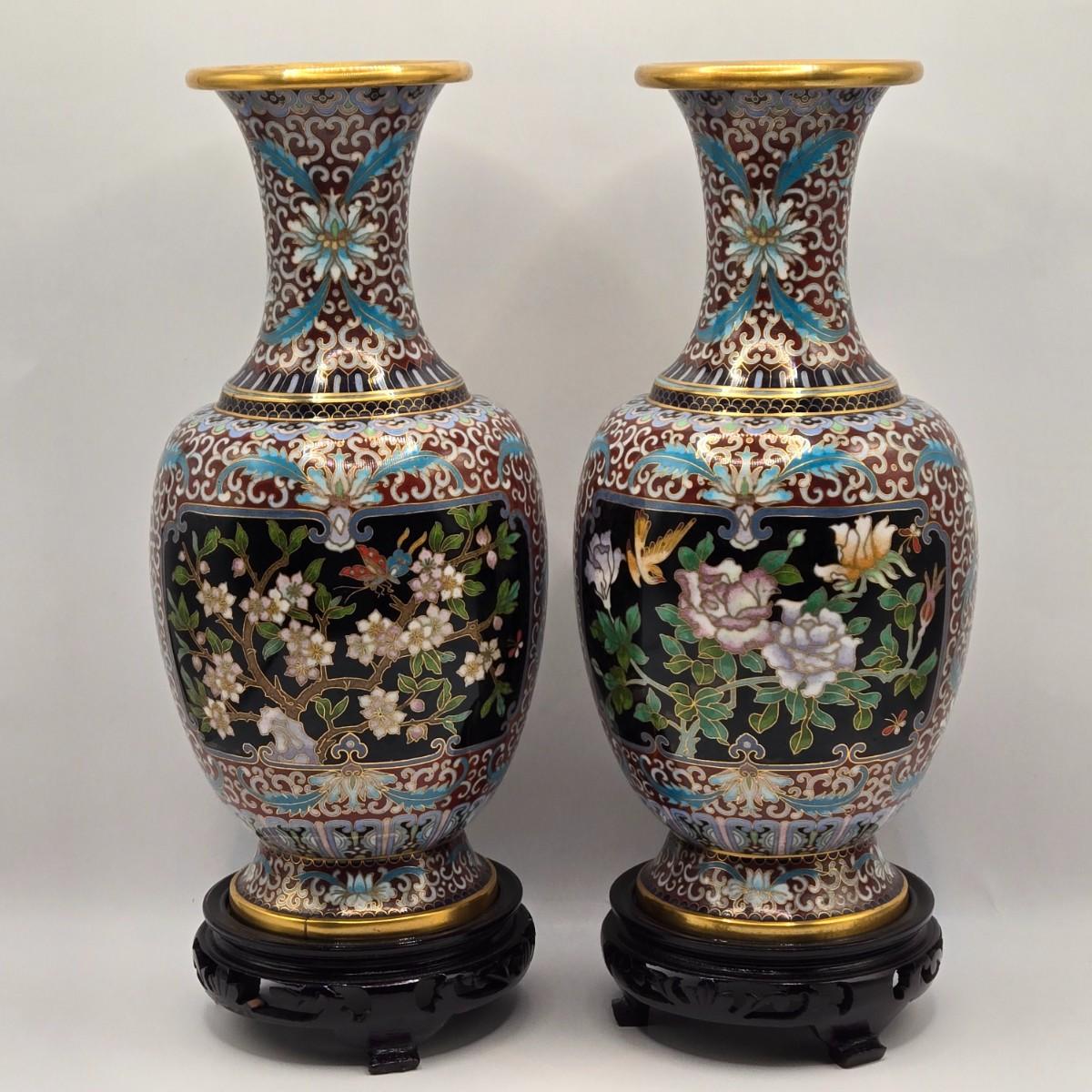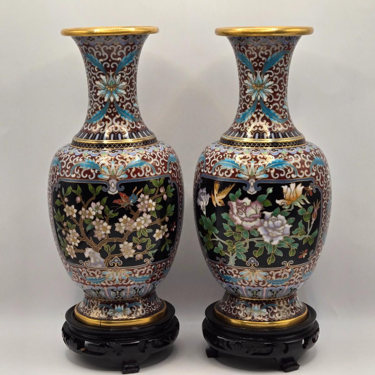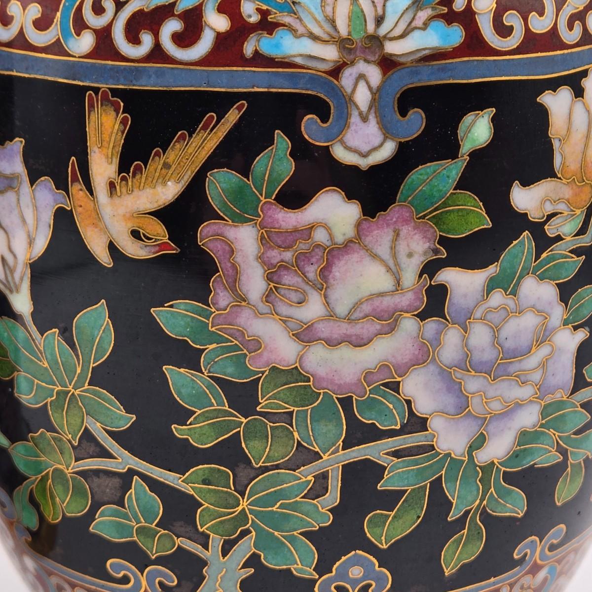 LOT 84B: Two Vintage Hand Crafted Brass Enamel Floral Design Flower Pots