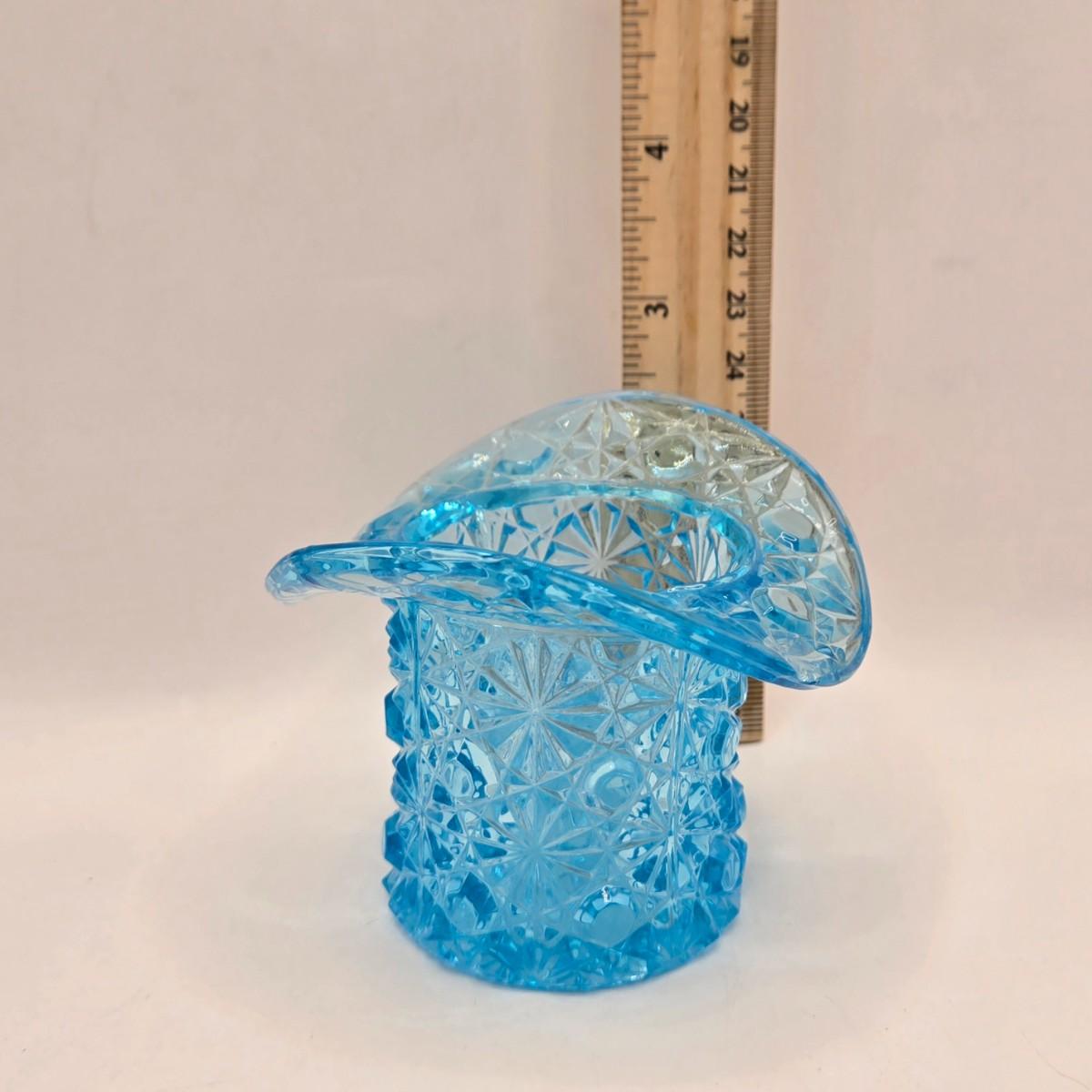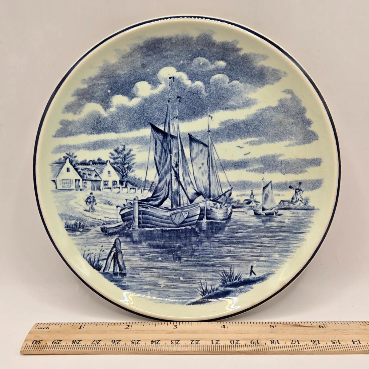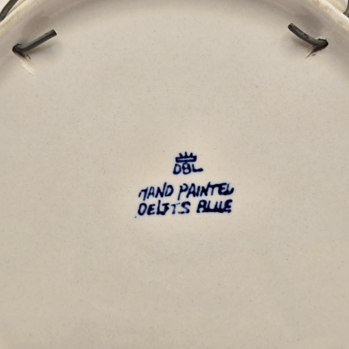 LOT 96B: Three Delft Hand-Painted Plates, Boopie Bubble Glass Ashtray, Vintage Beaded Blue Ruffle Compote Dish, Cobalt Blue Rimmed Creamer, and Blue Top Hat Toothpick Holder