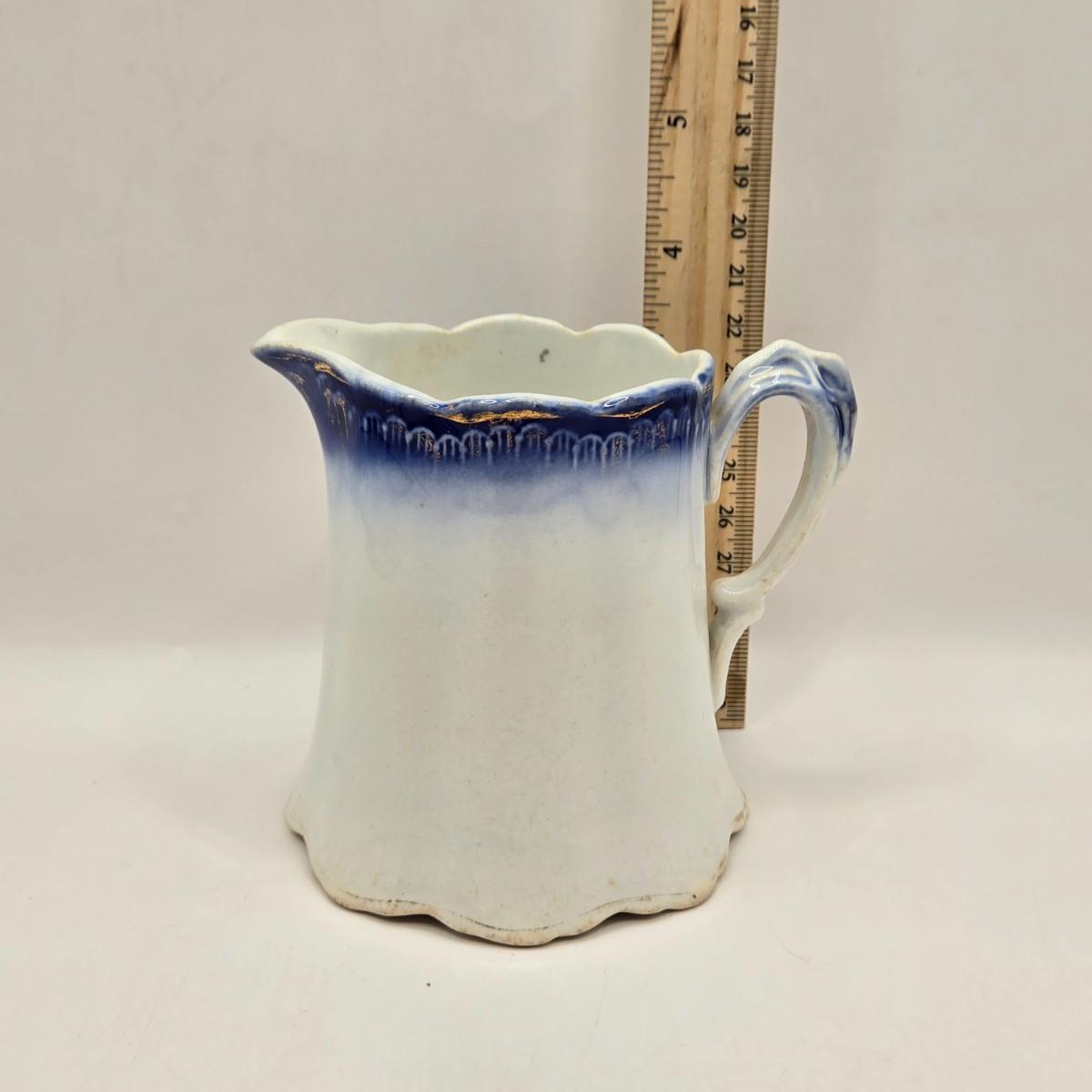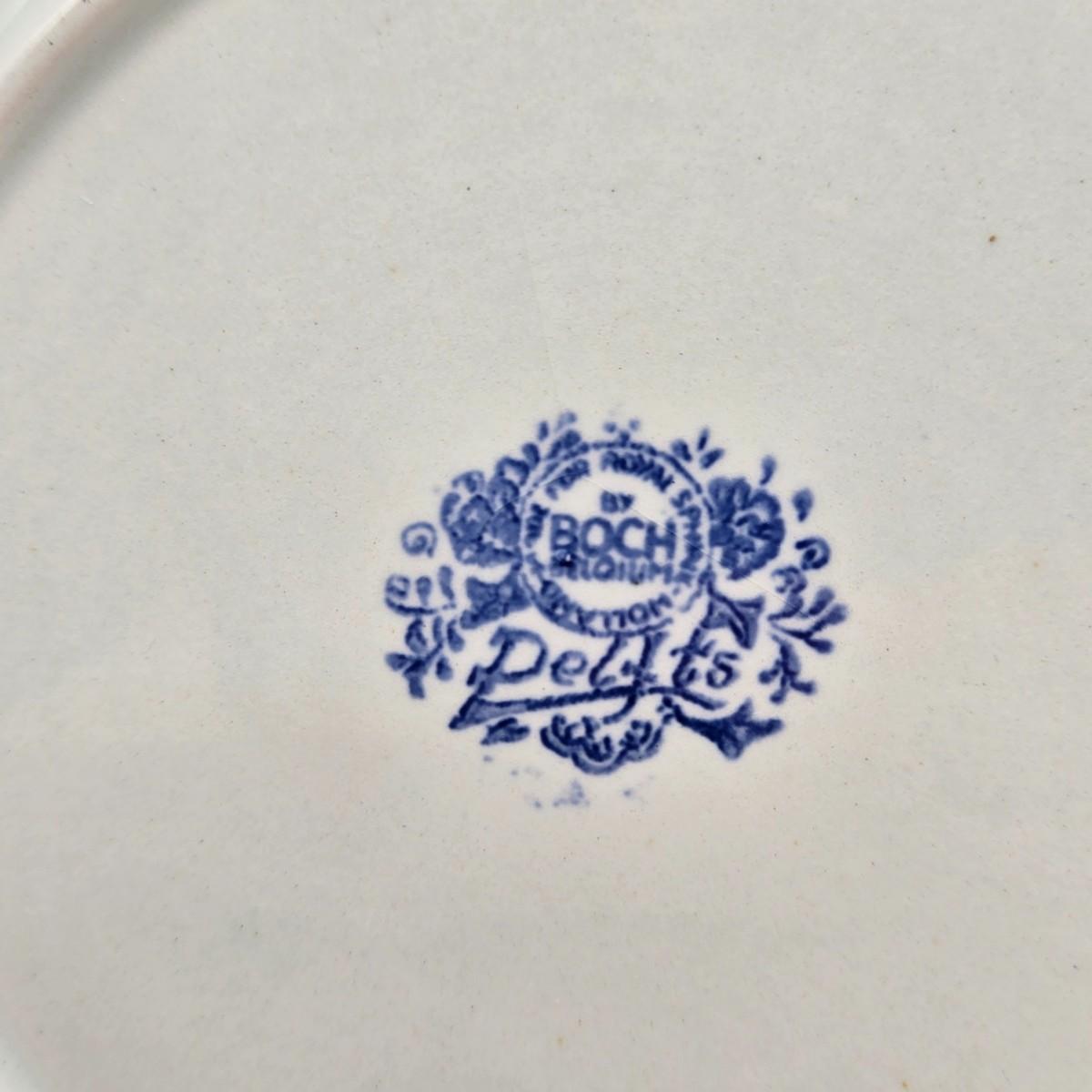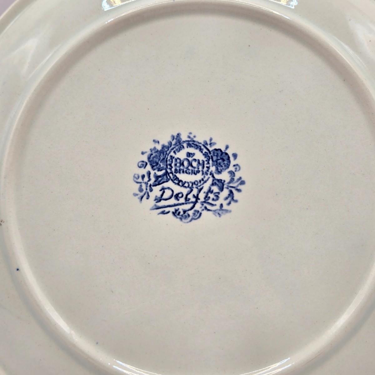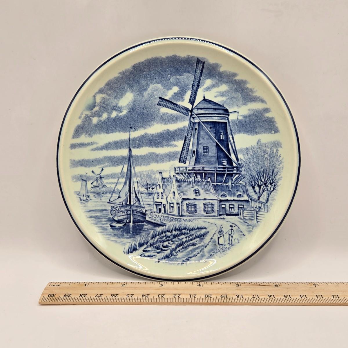 LOT 96B: Three Delft Hand-Painted Plates, Boopie Bubble Glass Ashtray, Vintage Beaded Blue Ruffle Compote Dish, Cobalt Blue Rimmed Creamer, and Blue Top Hat Toothpick Holder