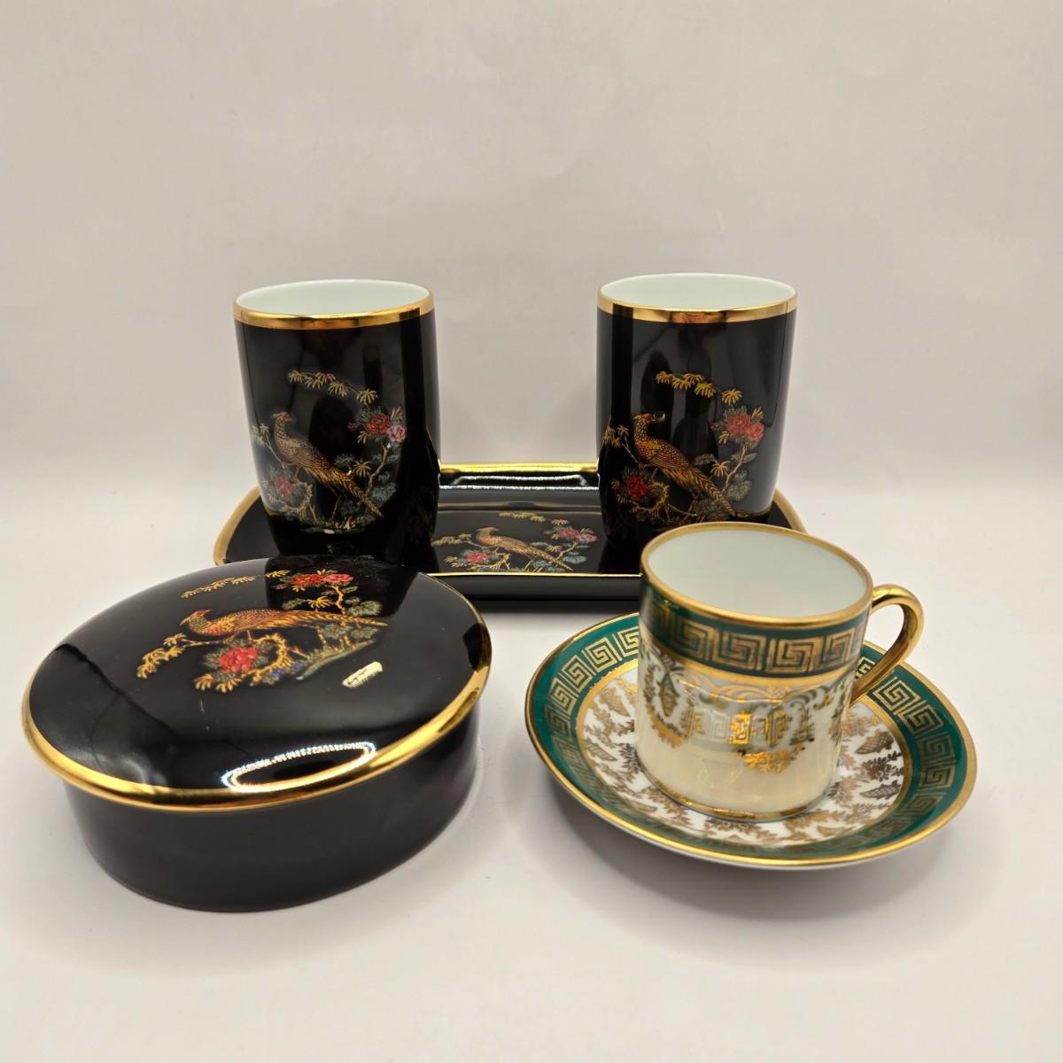 LOT 98B: Royal Bavaria Germany Black Tray w/ 2 Cups , Covered Trinket Bowl, and RW Bavaria Cup and Saucer Set Made in Germany