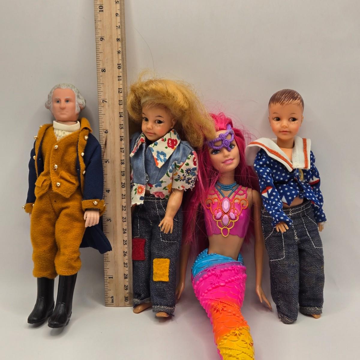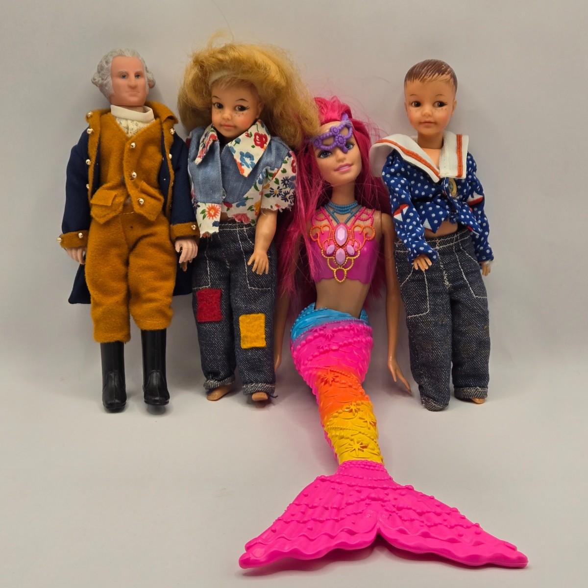 LOT 103B: Ideal Toy Dolls, George Washington Doll, Mermaid Doll, and Box Full of Clothes and Accessories