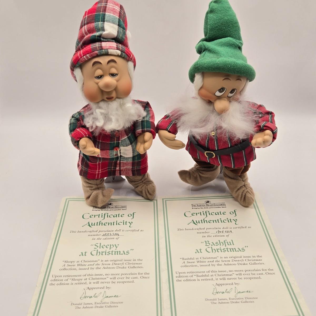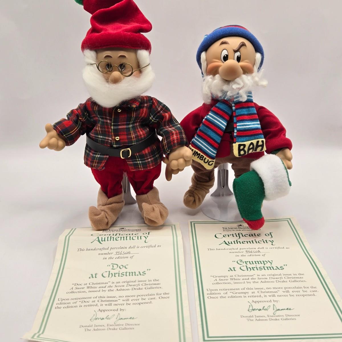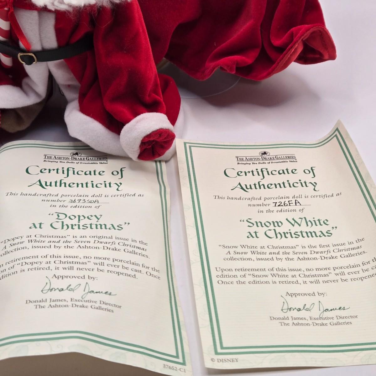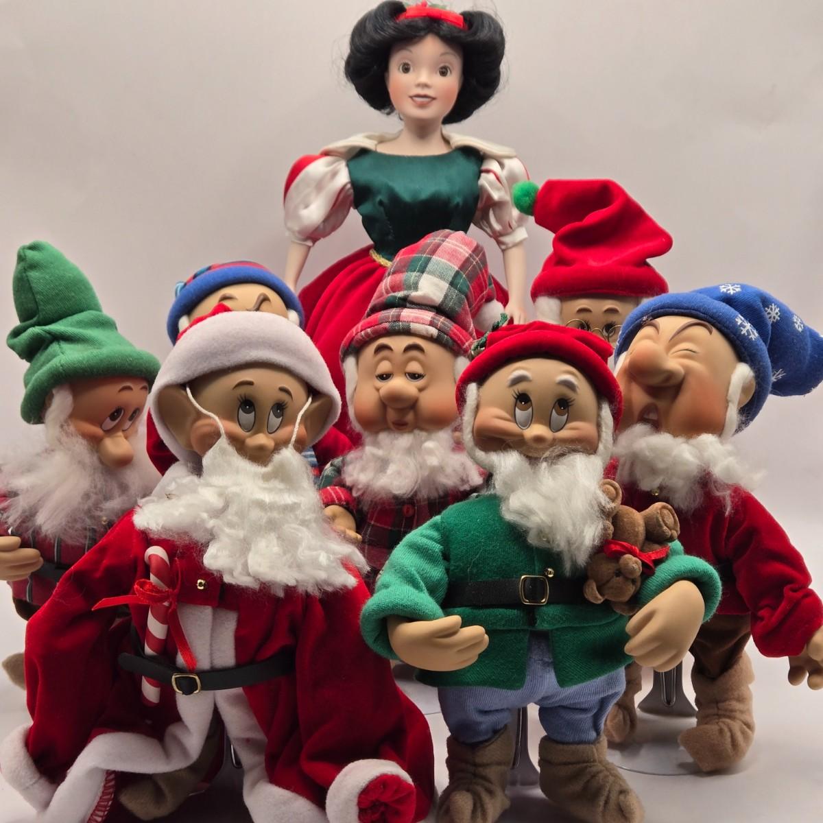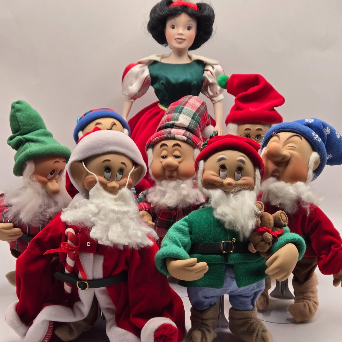 LOT 109K: Hiiii HOOOOO!!! Snow White and the Seven Dwarfs Dressed in Their Christmas Best. All with COA and Original Boxes