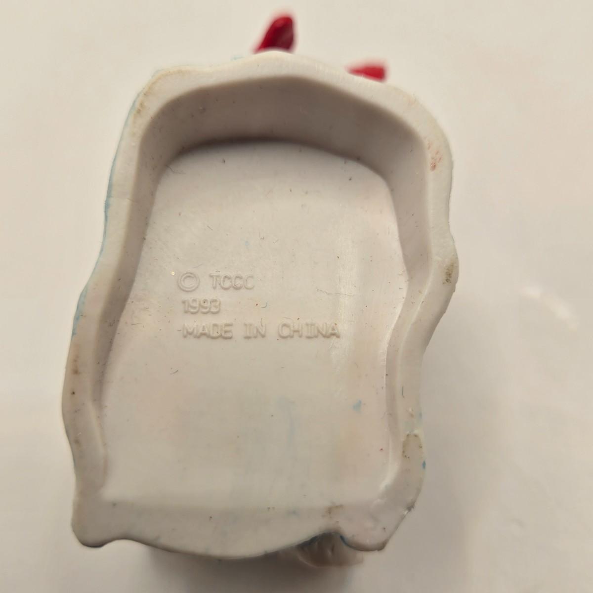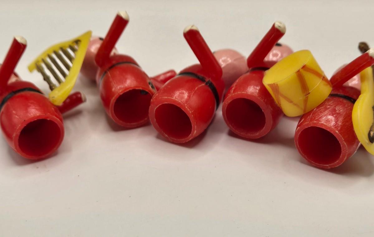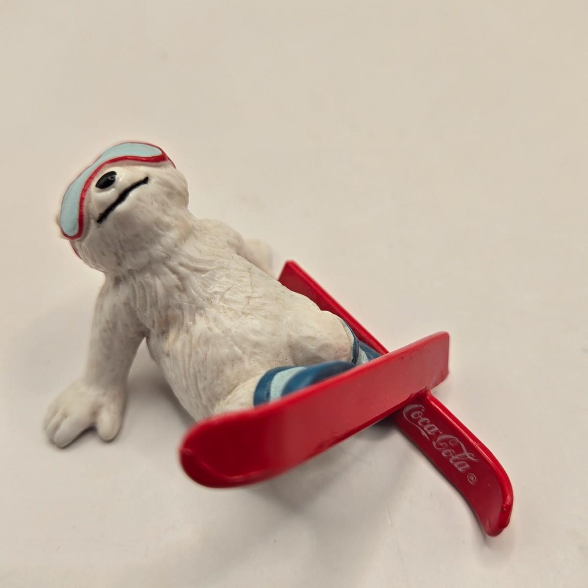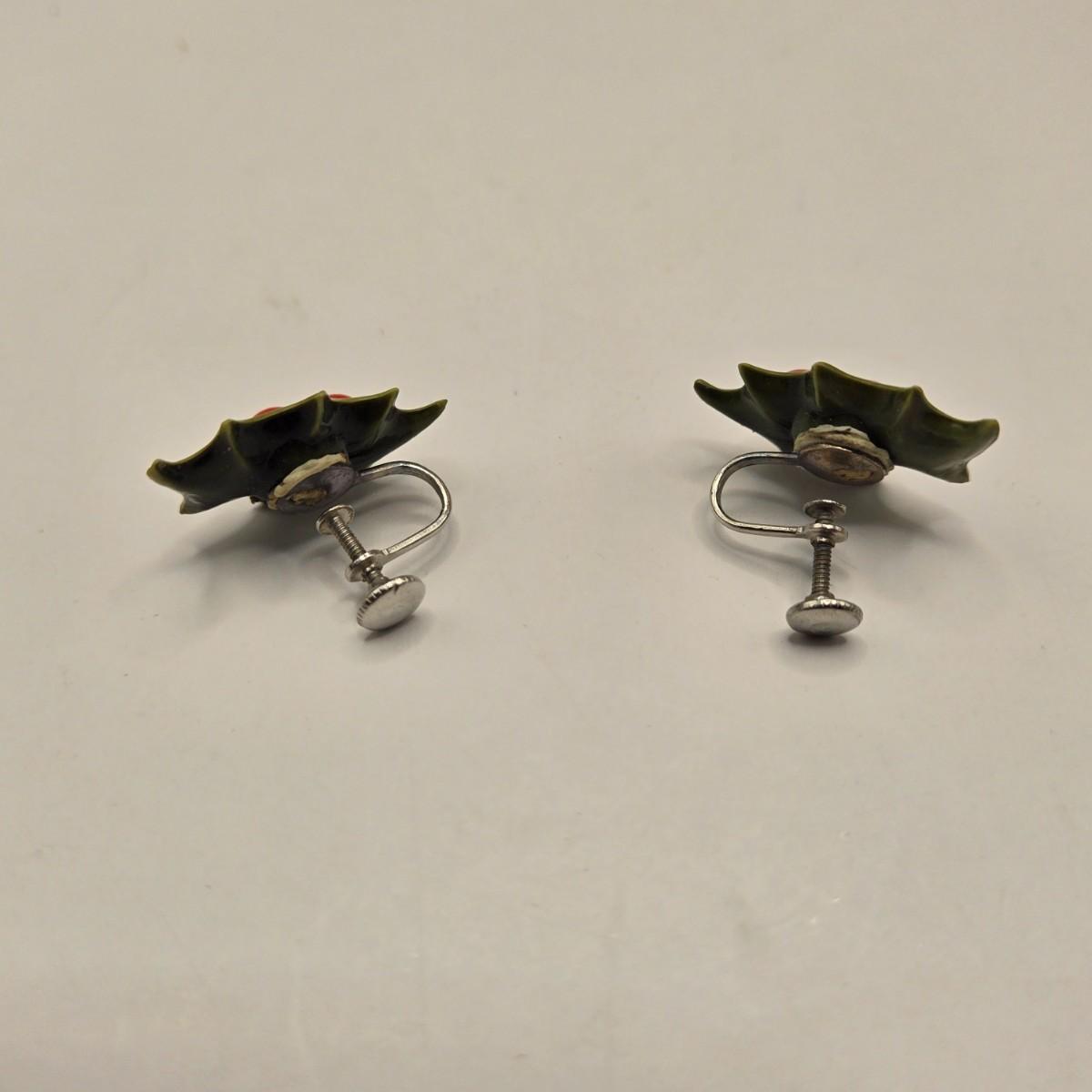 LOT 133K: Plastic Santa, Green Wooden Santa, Set of Coke-a-Cola Bears, Small Plastic Santas Playing Instruments, Clip on Holly Earrings, Santa Pin, and Small Wooden Santa