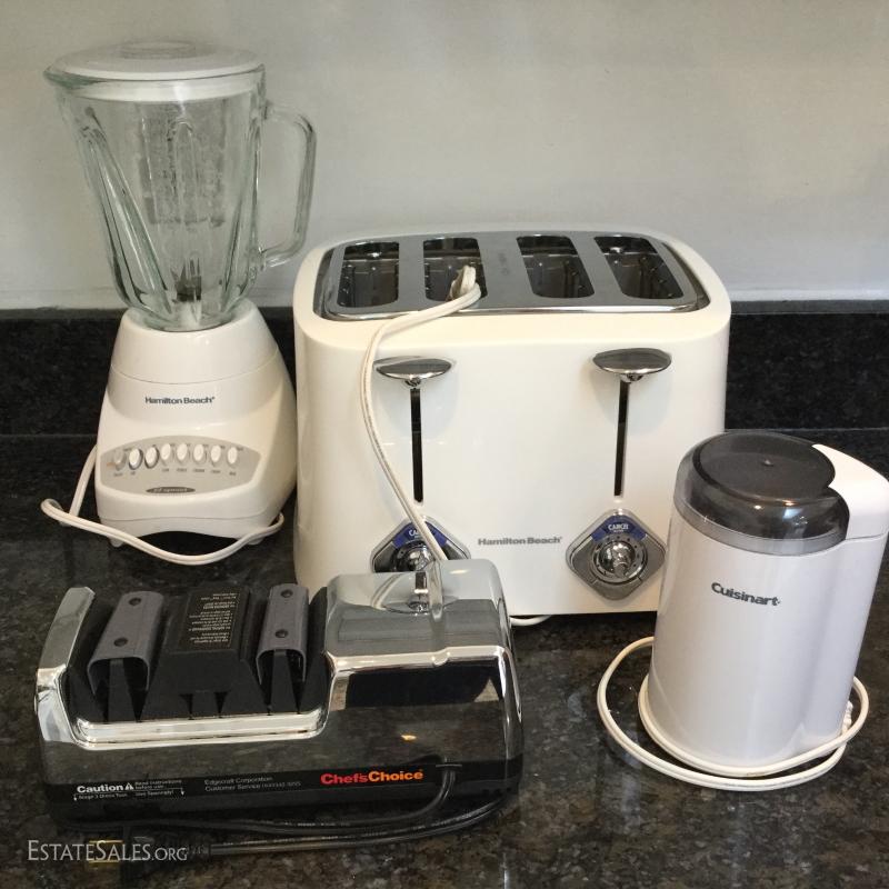 You won't find a better deal on these essential kitchen appliances. Like-new glass Hamilton Beach blender, 4-slot toaster, new-in-box Chef's Choice electric knife sharpener, and coffee grinder. See photos. Shipping available or local pick up in Flat Rock, NC.