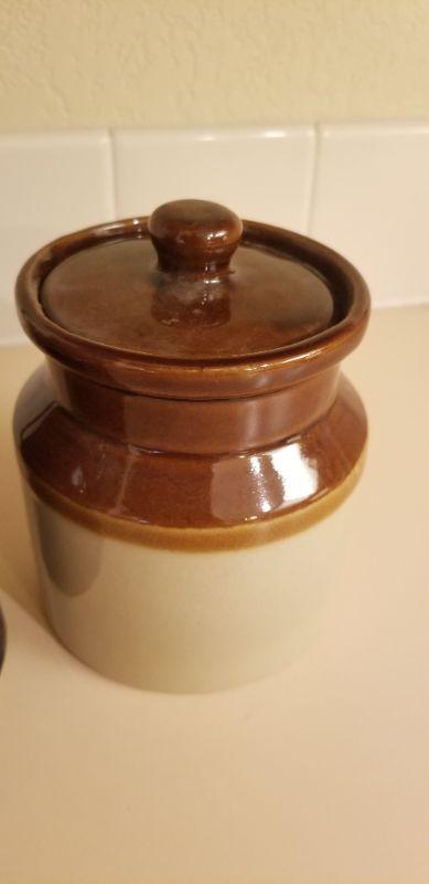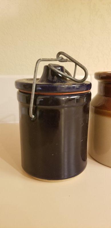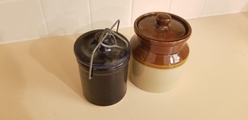 Lot #112: Pair of Vintage Crock Small Containers w/ Lid