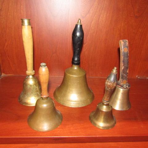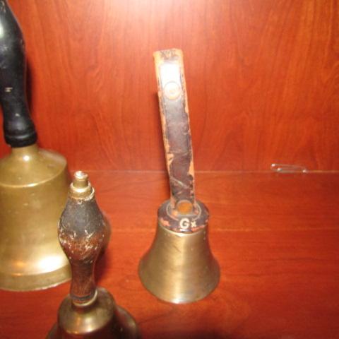 VINTAGE BRASS HANDBELLS WITH WOODEN HANDLES