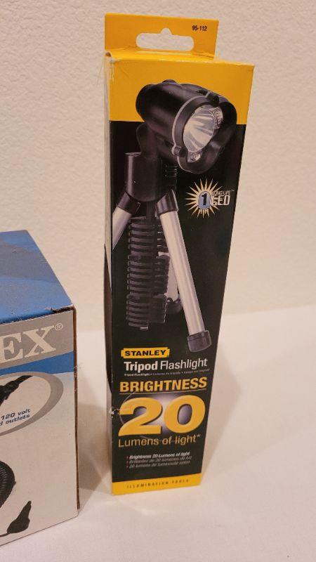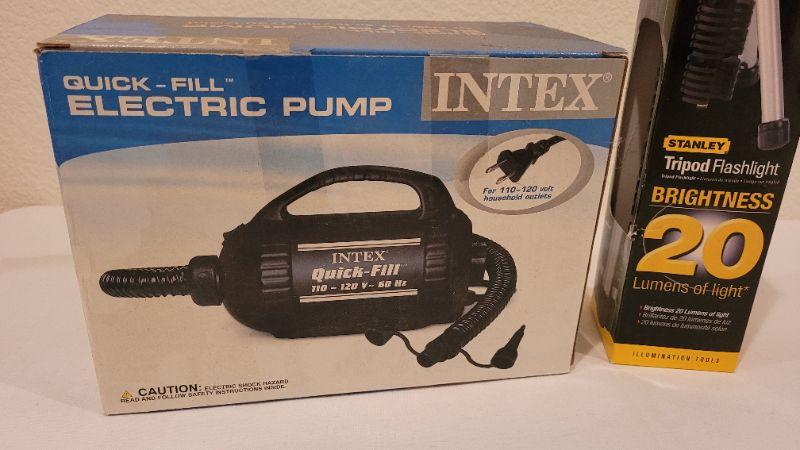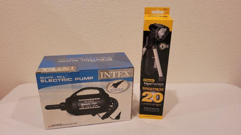 Lot 112: New Electric Pump and Like Nee STANLEY Tripod Flashlight